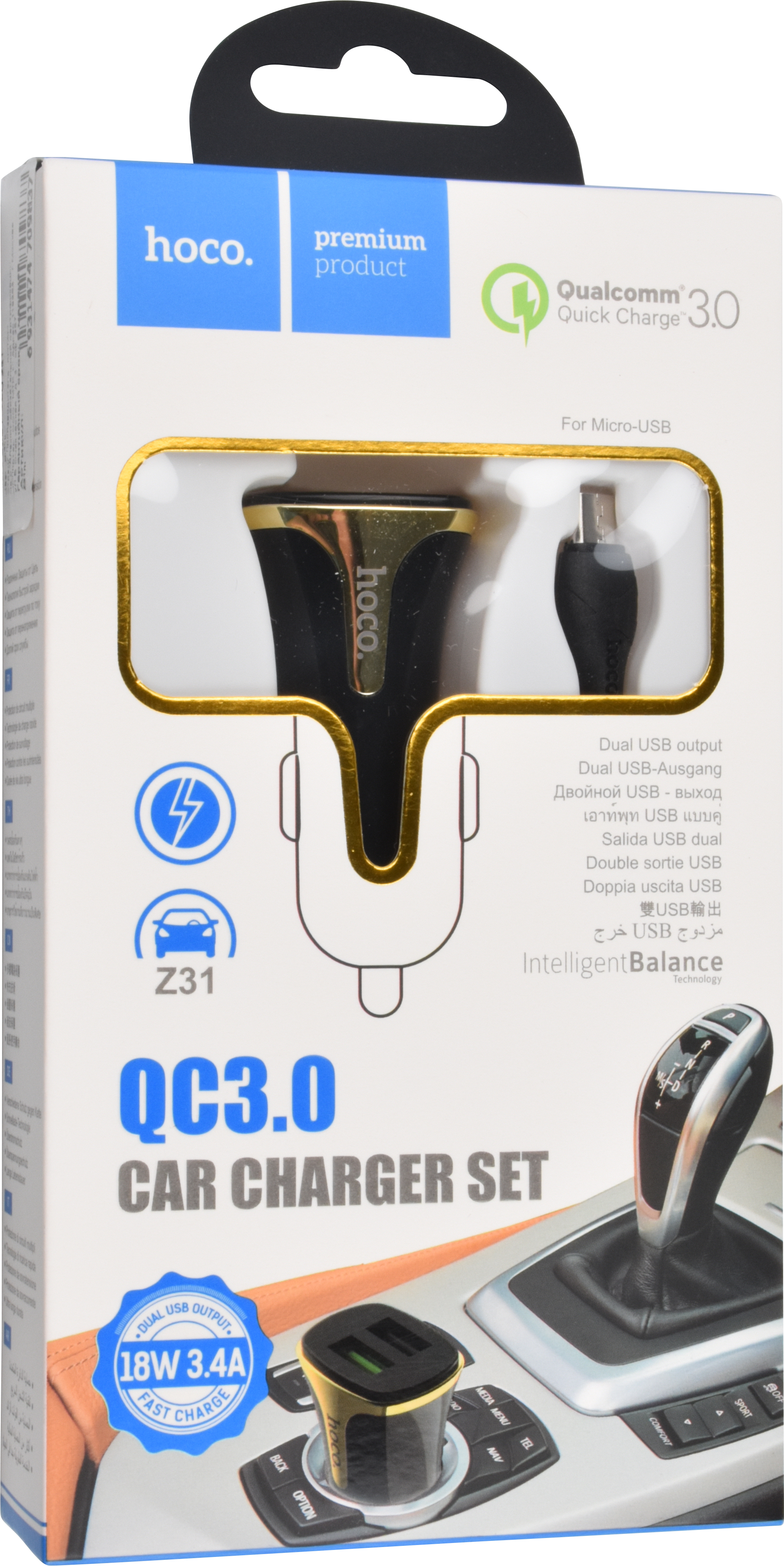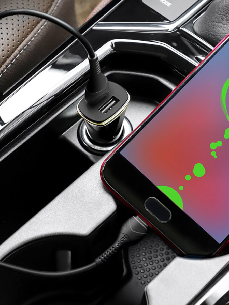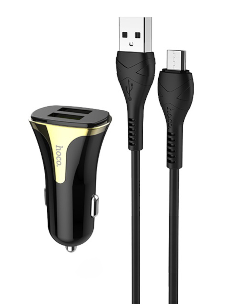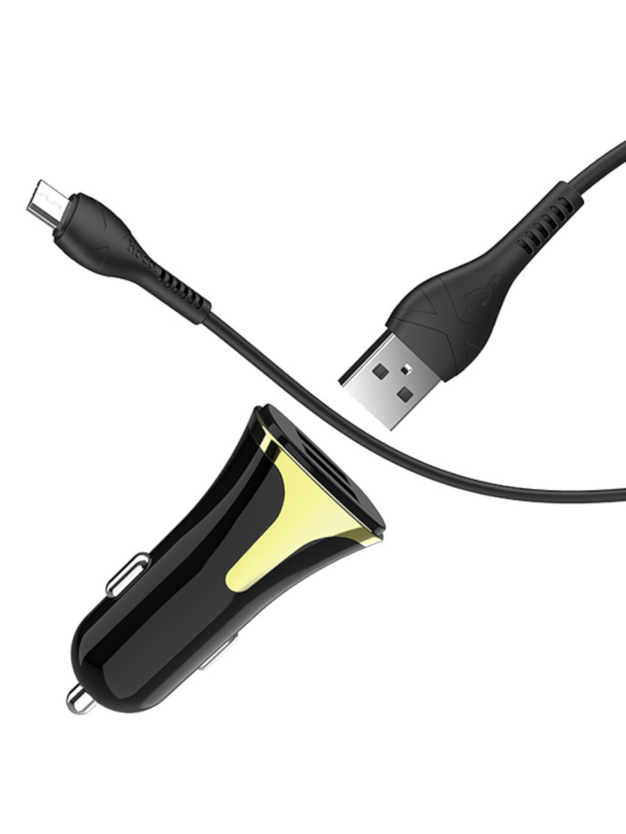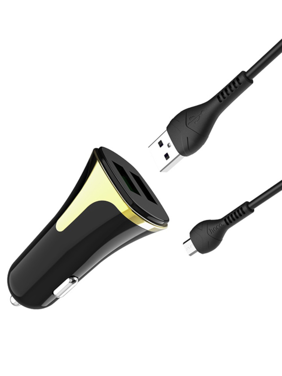 Автомобильная зарядка microUSB 2.4A 2 выхода QC3.0 Hoco Z31 черная