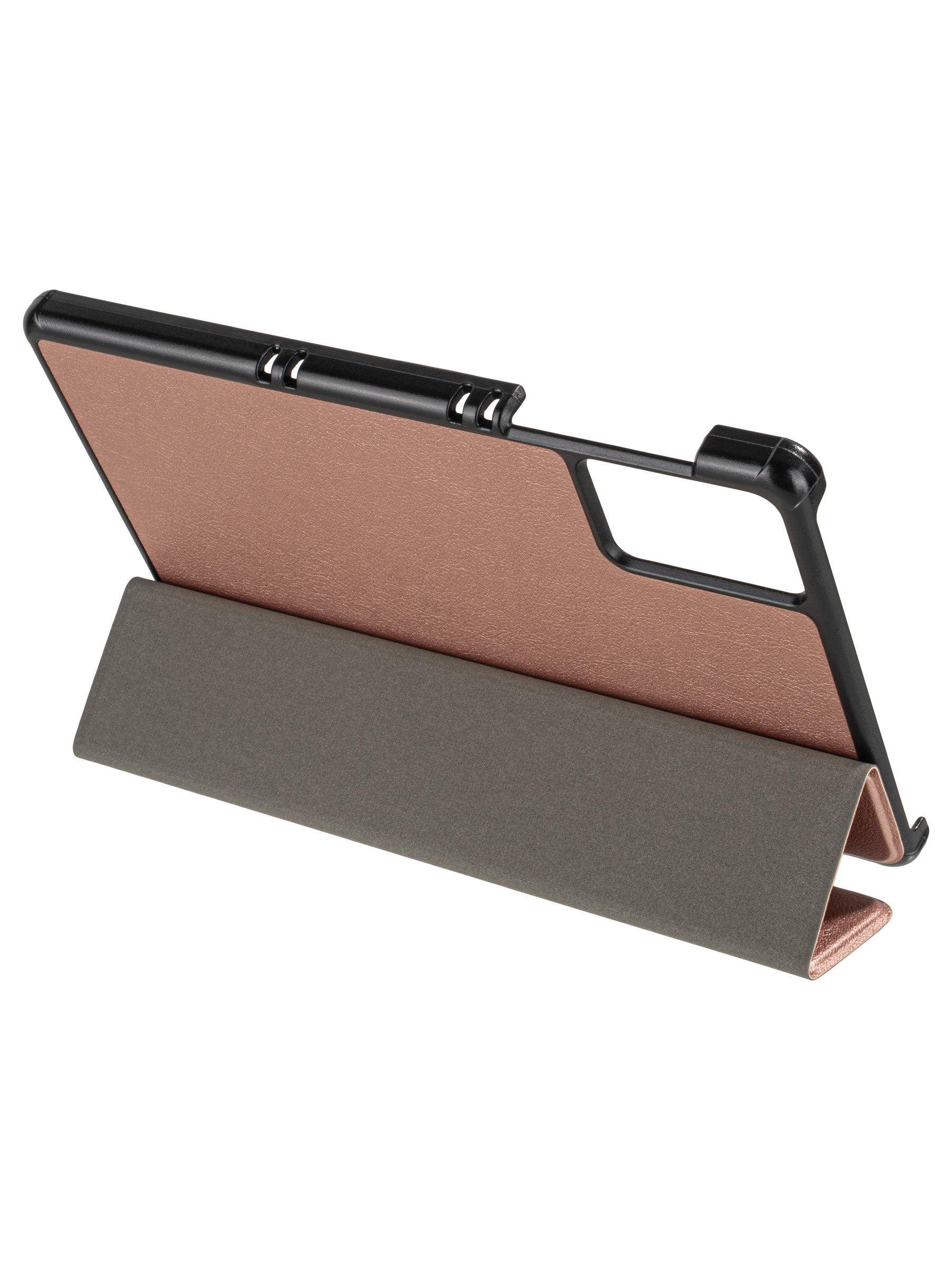 Чехол-книжка изготовлен из высококачественной экологической кожи, а основание из прочного пластика, что приводит к стильному и прочному дизайну. Крышка чехла закрывается на магнит и может использоваться как удобная подставка. При закрытии крышки планшет автоматически переводится в спящий режим, что позволяет экономить его заряд. Этот чехол принадлежит серии Folder и предназначен для защиты планшета. Благодаря своему кожаному покрытию, он выглядит стильным и представляет собой идеальный выбор для тех, кто ищет надежную защиту и функциональность. Кроме того, чехол с подставкой дополнительно обеспечивает удобство использования вашего устройства.
