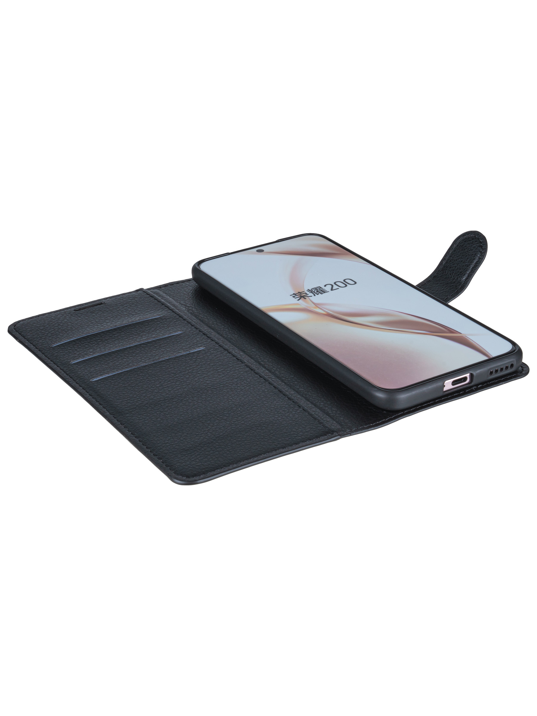 Чехол-книжка PU для Honor 200 черная с магнитом