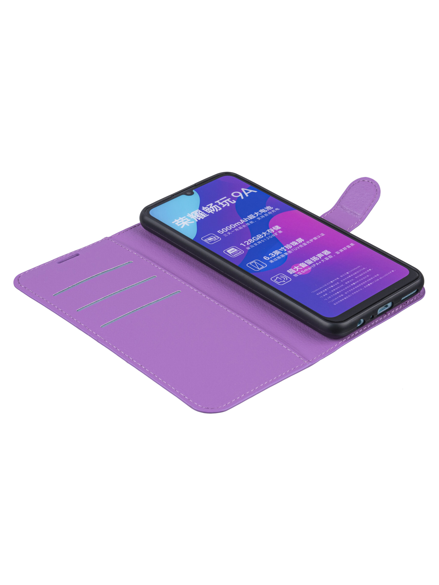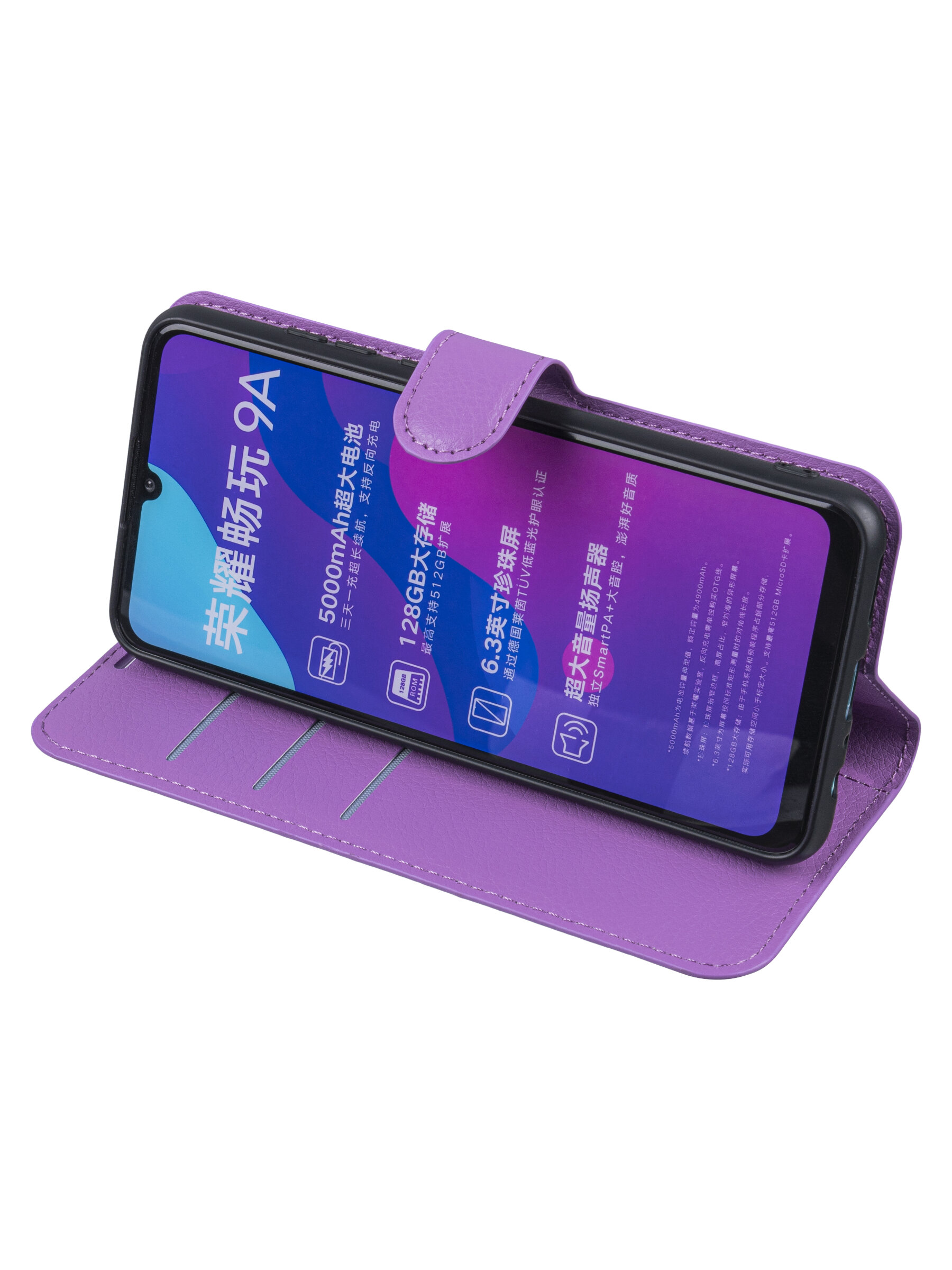 Чехол-книжка PU для Honor 9A фиолетовая с магнитом