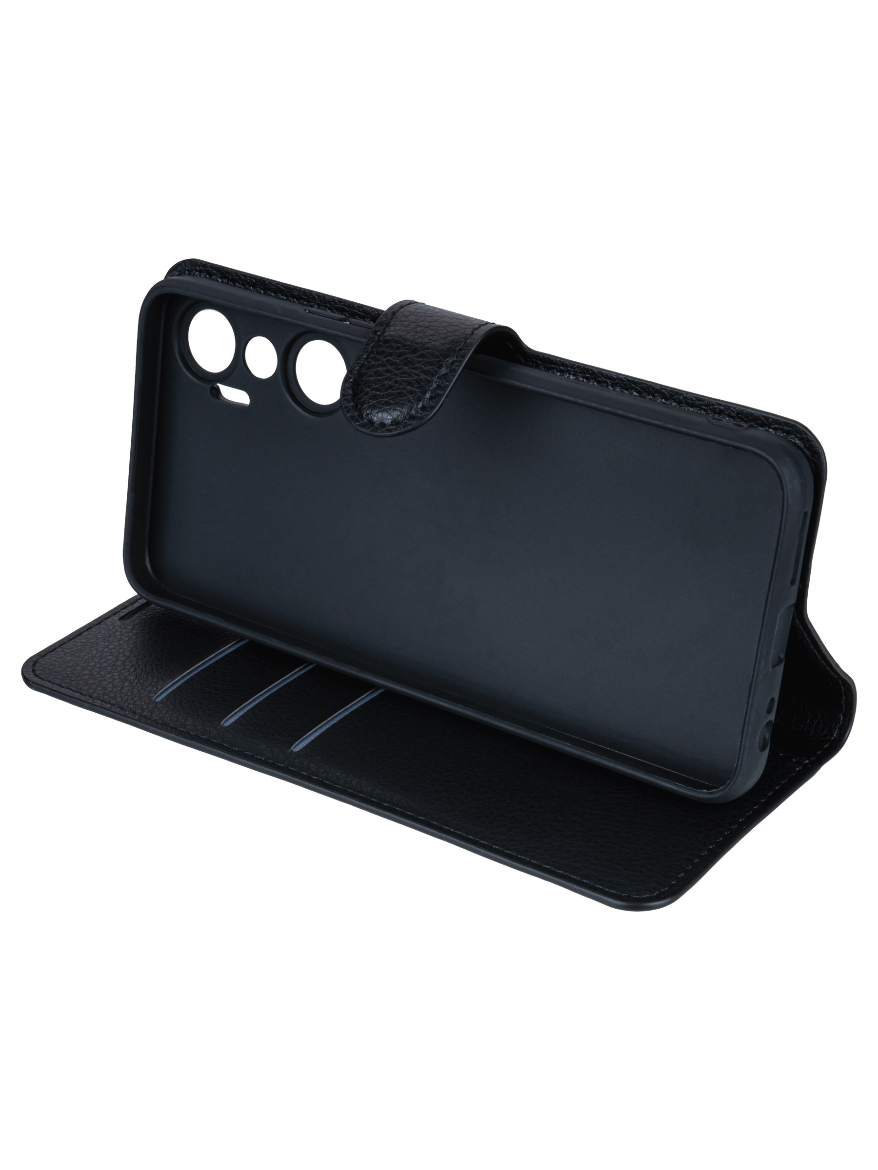 Чехол с отделом для карты из искусственной кожи. Основание чехла выполнено из силикона и полностью соответствует оригинальным вырезам и выступам вашей модели телефона, благодаря чему, он плотно сидит внутри, а доступ к разъемам и кнопкам ничем не затруднен. Чехол легко надевается и снимается. Магнитная застежка позволяет удобно и быстро закрывать и открывать крышку, сохраняя экран вашего смартфона в состоянии, которое не потребует частого очищения и обслуживания. Прорези под разговорный динамик позволяют пользователю не открывать крышку, при разговоре по телефону - это удобно и экономит время. Одним из плюсов кожаных чехлов является их прочность. Еще одним преимуществом является наличие защиты экрана, которая позволяет не беспокоиться о том, что ваше устройство может быть повреждено, когда оно находится в сумке или портфеле. Эти чехлы обычно используются в течение долгого времени без заметных признаков износа. К тому же, чехол с отделом для карты и карманом для визитных карточек - это прекрасный способ улучшить организованность вашей жизни, несмотря на всю суету и особенности современного ритма жизни. Защитный чехол полностью закрывает смартфон со всех сторон, оберегая его от падений, царапин и пыли. Кроме того, чехол книжка имеет удобную подставку, которая позволяет использовать устройство в любом удобном положении. Это особенно помогает во время чтения электронных книг или просмотра видео, когда необходимо поддерживать устройство в определенном положении, чтобы избежать усталости и дискомфорта. В зависимости от личных предпочтений, чехол-книжка представлен в различных цветовых вариациях и стилях. Вы можете выбрать лаконичный классический дизайн, а можете сделать акцент на яркость и оригинальность.