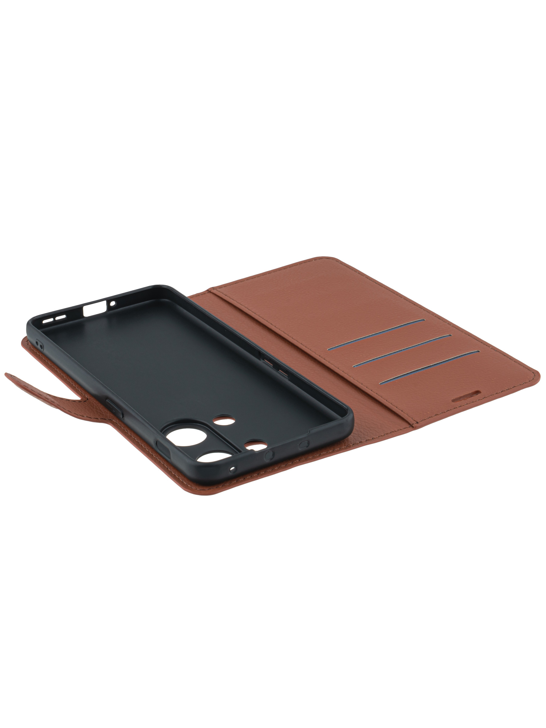 Чехол с отделом для карты из искусственной кожи. Основание чехла выполнено из силикона и полностью соответствует оригинальным вырезам и выступам вашей модели телефона, благодаря чему, он плотно сидит внутри, а доступ к разъемам и кнопкам ничем не затруднен. Чехол легко надевается и снимается. Магнитная застежка позволяет удобно и быстро закрывать и открывать крышку, сохраняя экран вашего смартфона в состоянии, которое не потребует частого очищения и обслуживания. Прорези под разговорный динамик позволяют пользователю не открывать крышку, при разговоре по телефону - это удобно и экономит время. Одним из плюсов кожаных чехлов является их прочность. Еще одним преимуществом является наличие защиты экрана, которая позволяет не беспокоиться о том, что ваше устройство может быть повреждено, когда оно находится в сумке или портфеле. Эти чехлы обычно используются в течение долгого времени без заметных признаков износа. К тому же, чехол с отделом для карты и карманом для визитных карточек - это прекрасный способ улучшить организованность вашей жизни, несмотря на всю суету и особенности современного ритма жизни. Защитный чехол полностью закрывает смартфон со всех сторон, оберегая его от падений, царапин и пыли. Кроме того, чехол книжка имеет удобную подставку, которая позволяет использовать устройство в любом удобном положении. Это особенно помогает во время чтения электронных книг или просмотра видео, когда необходимо поддерживать устройство в определенном положении, чтобы избежать усталости и дискомфорта. В зависимости от личных предпочтений, чехол-книжка представлен в различных цветовых вариациях и стилях. Вы можете выбрать лаконичный классический дизайн, а можете сделать акцент на яркость и оригинальность.