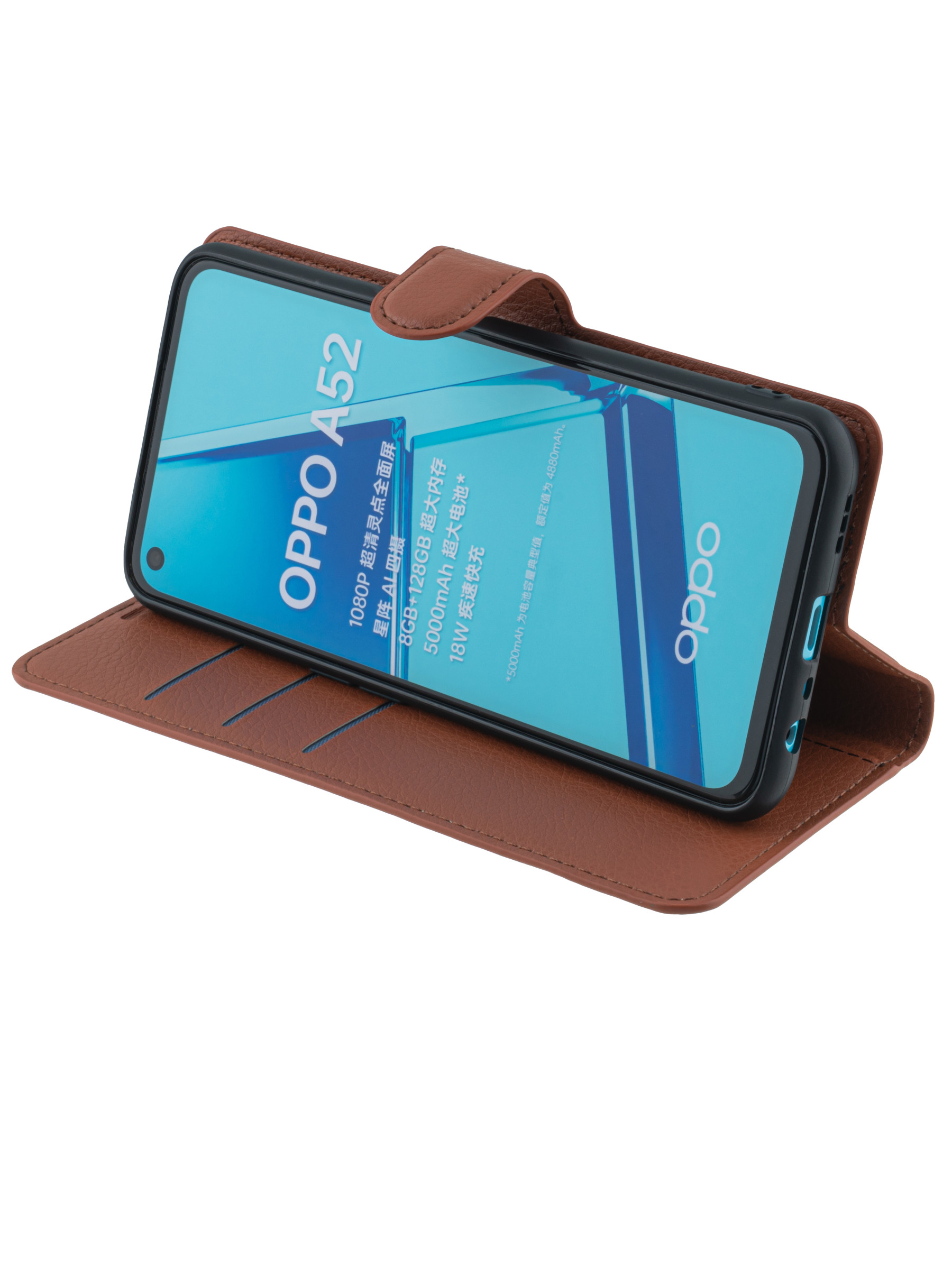 Чехол-книжка PU для Oppo A52 / A72 коричневая с магнитом
