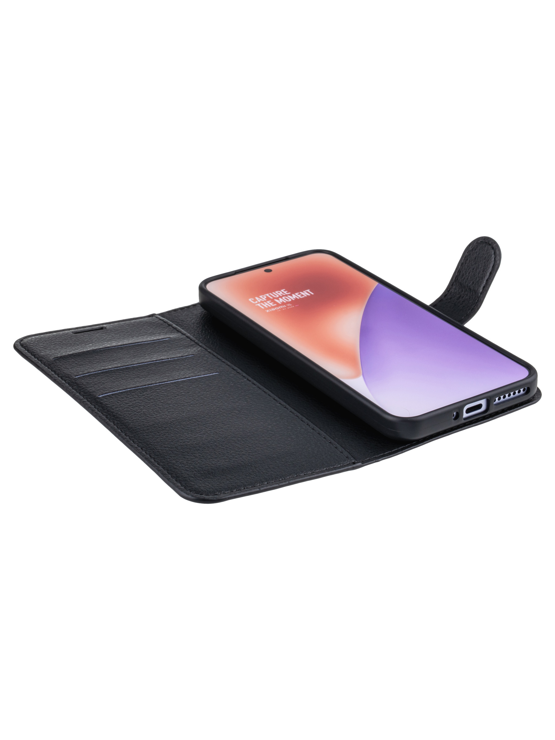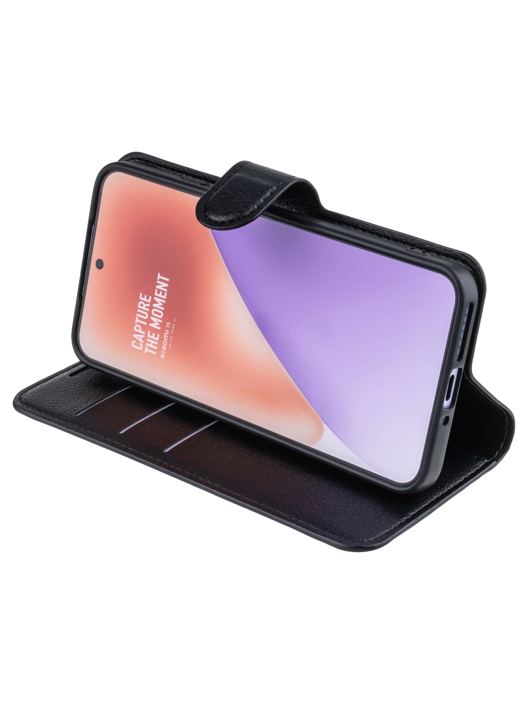 Чехол-книжка PU для Xiaomi 15 черная с магнитом