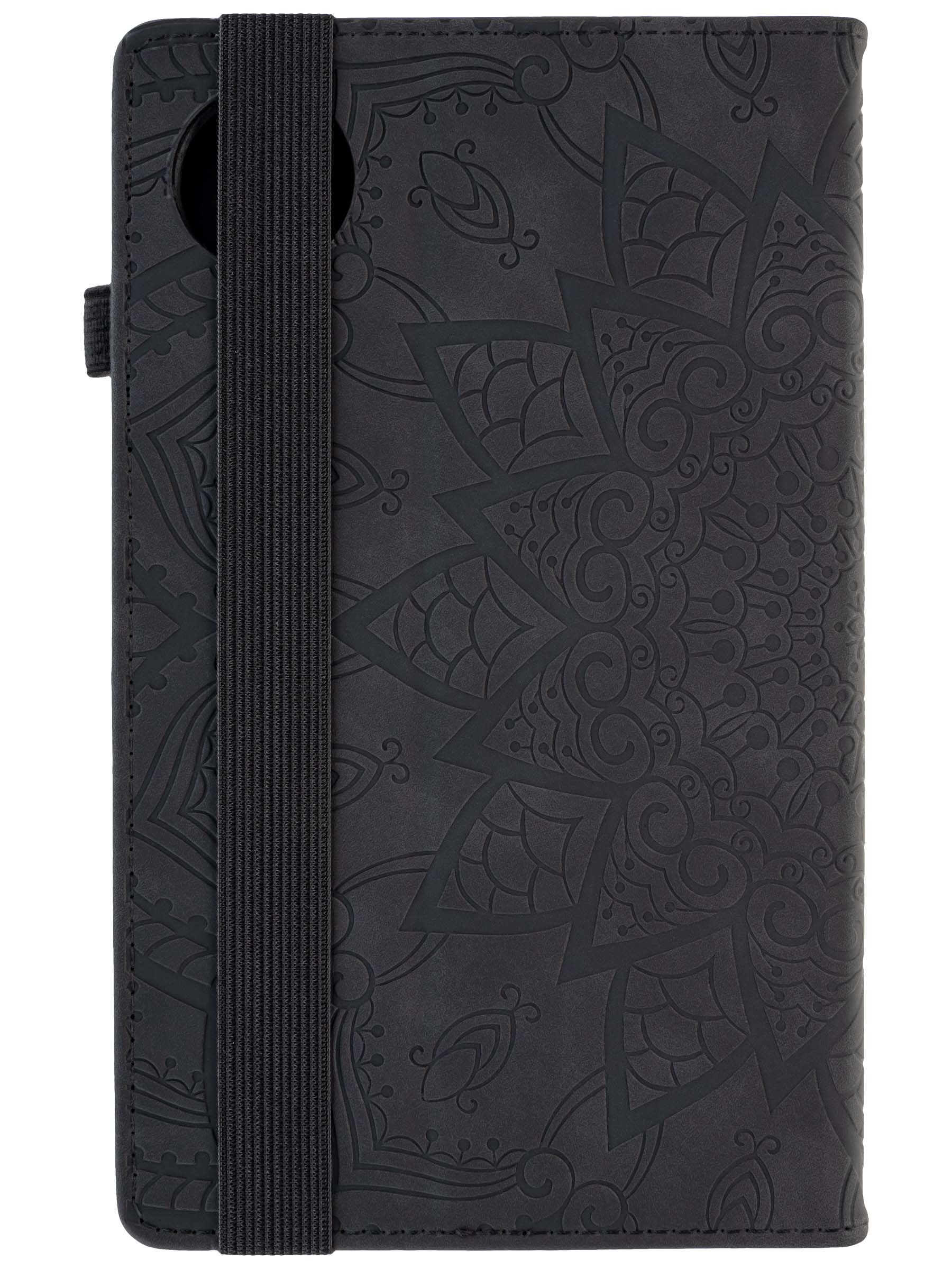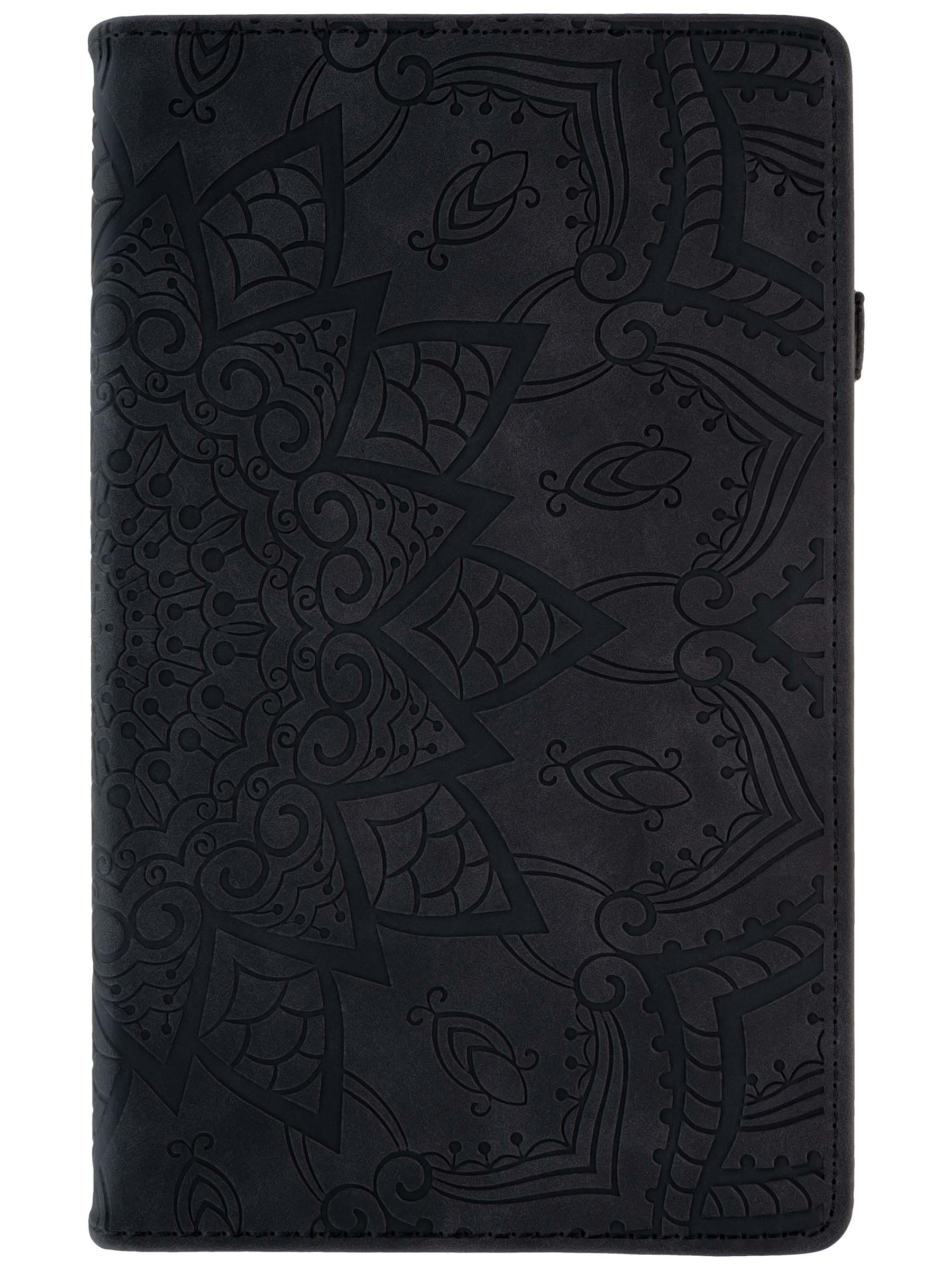 Кожаный чехол-книжка из искусственной кожи представляет собой надежную и стильную защиту для вашего планшета. Основание чехла выполнено из прочного силикона, а передняя крышка закрывается и открывается с помощью резинки. Кроме того, этот чехол-книжка трансформируется в удобную подставку для вашего устройства, а отделение для карт и визиток помогает держать всё в одном месте и сохранить порядок. Чехол также оснащен держателем для стилуса, который позволяет удобно и быстро доставать его, когда он вам необходим. Дизайн чехла дополнен интересным принтом, который делает его еще более привлекательным. Кроме того, этот чехол обеспечивает полную защиту экрана вашего устройства, что позволяет избежать повреждений и царапин. Если вы ищете красивый и функциональный чехол для своего планшета, то этот чехол с отделом для карты - идеальный выбор для вас.