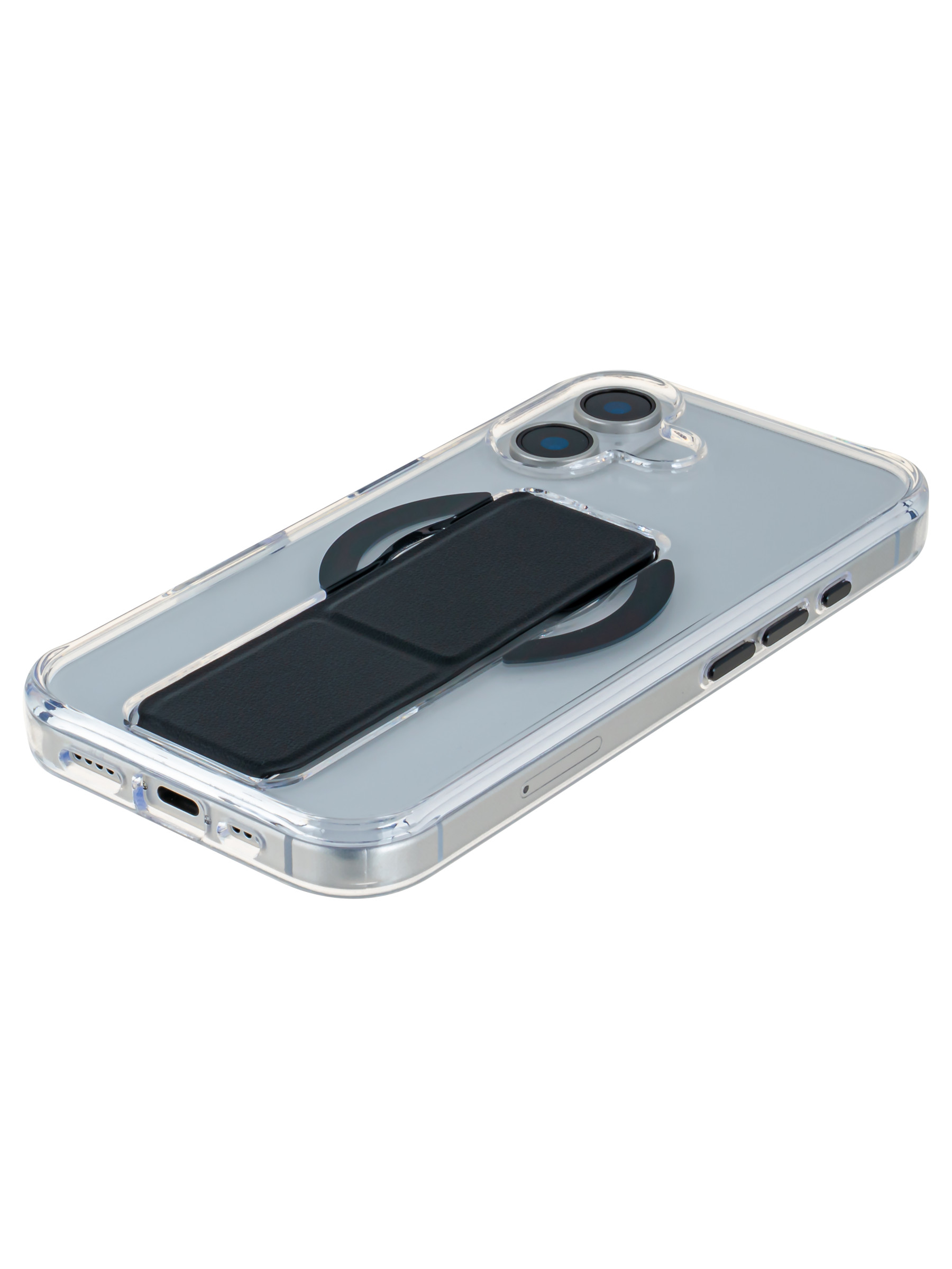 Пластиковый чехол Charge&Stand для iPhone 16 черный с подставкой для Magsafe