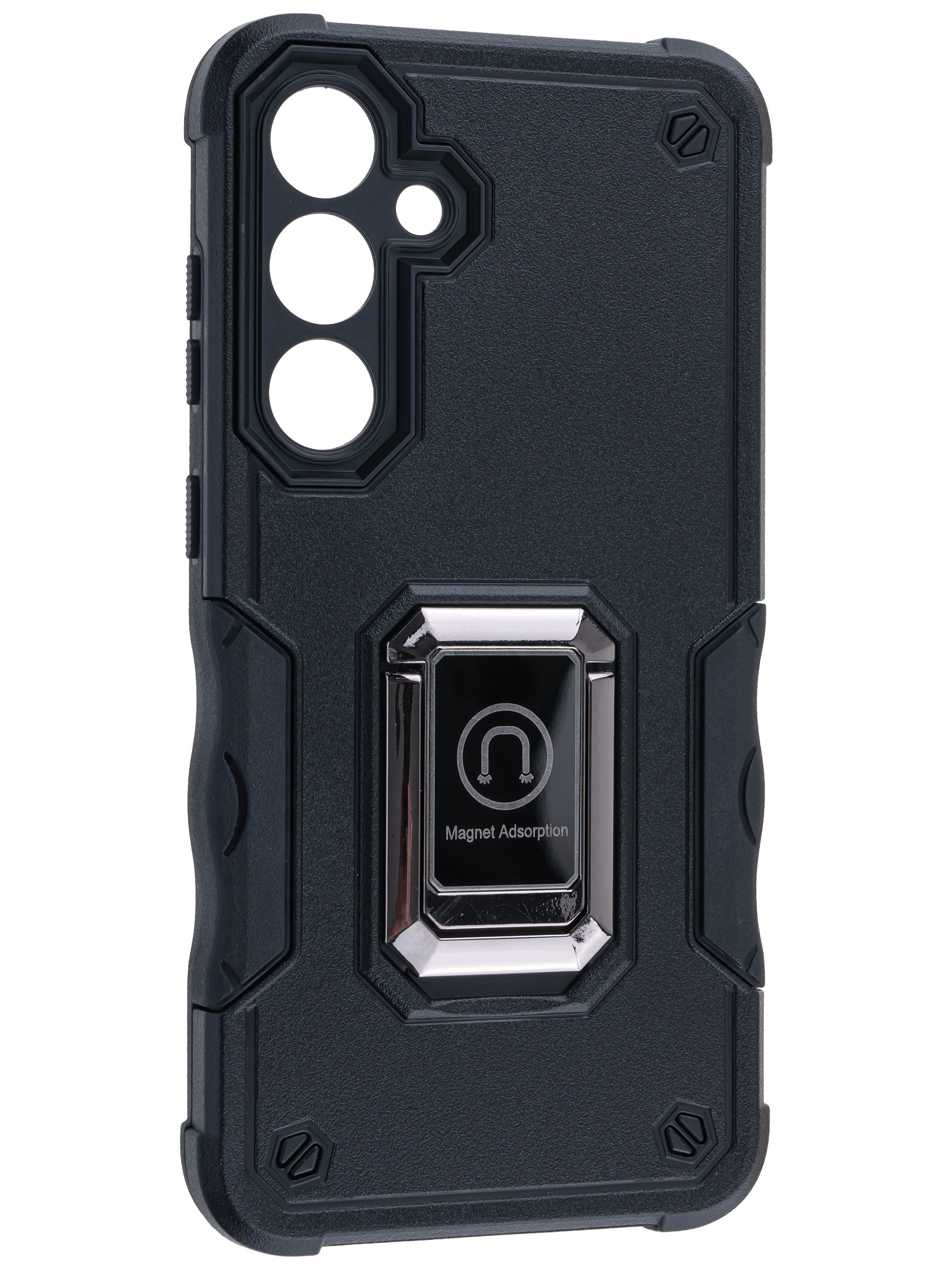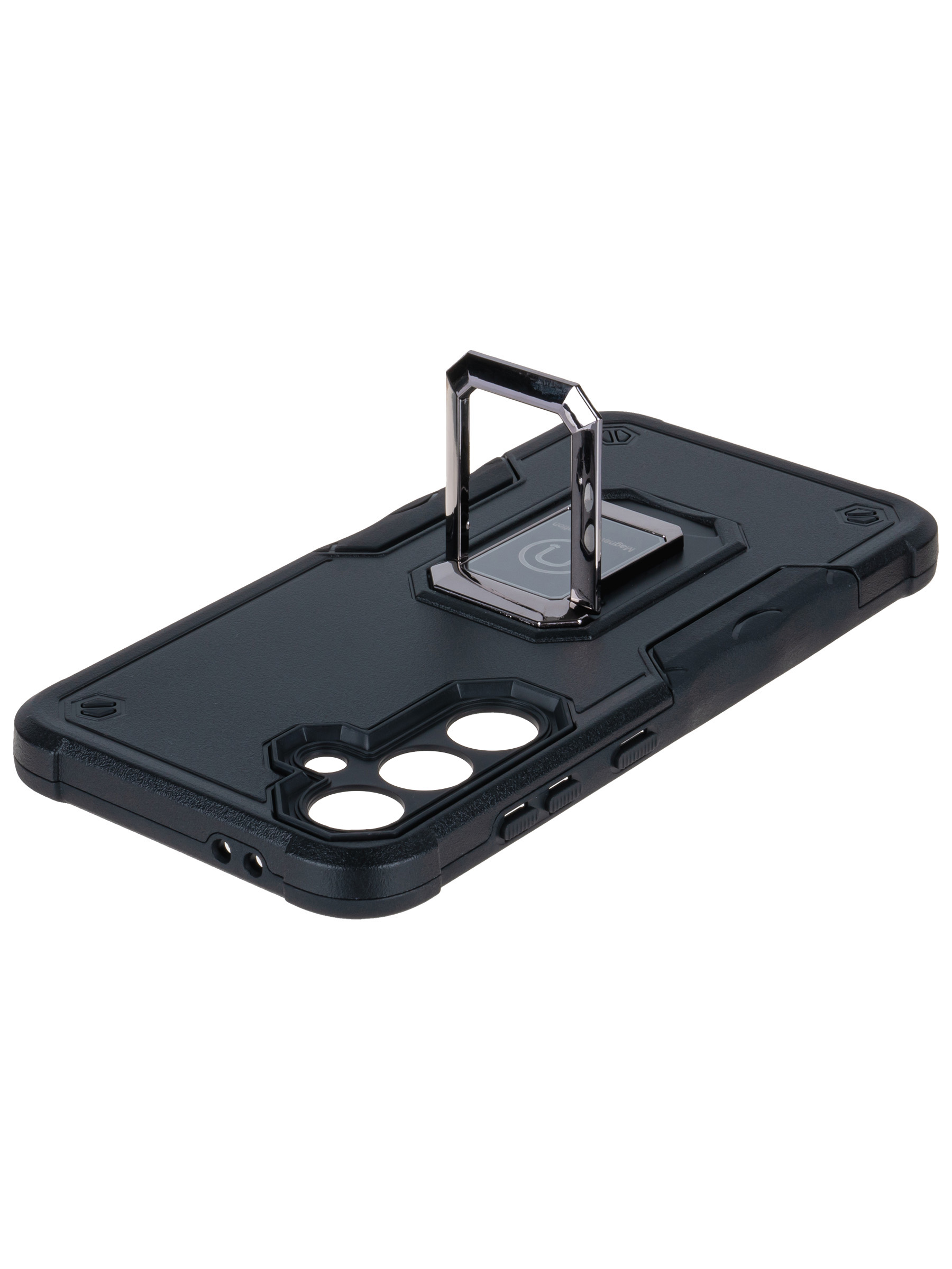 Пластиковый чехол Full protection для Samsung Galaxy S24 FE черный с подставкой и магнитным держателем