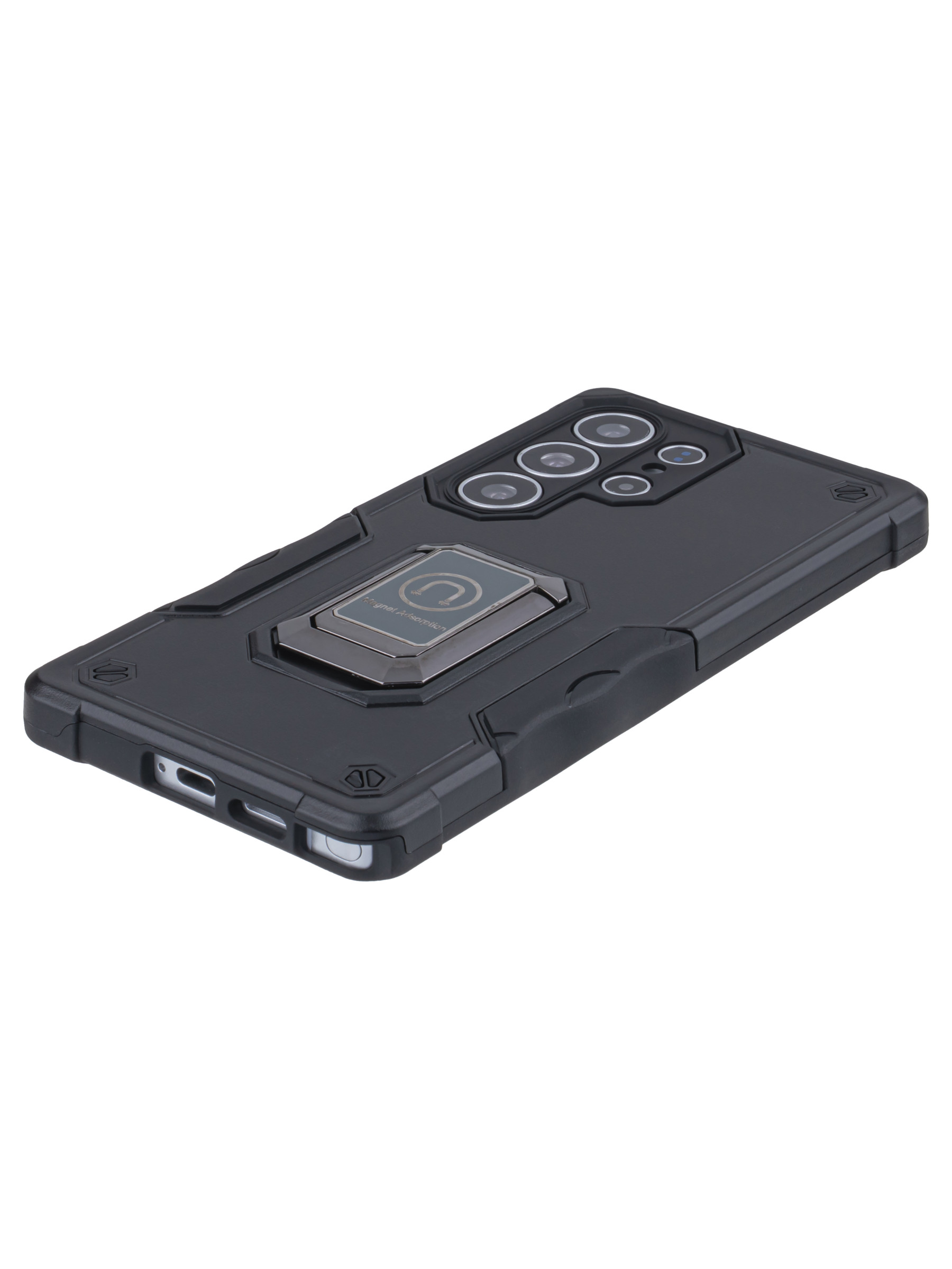 Пластиковый чехол Full protection для Samsung Galaxy S25 Ultra черный с подставкой и магнитным держателем