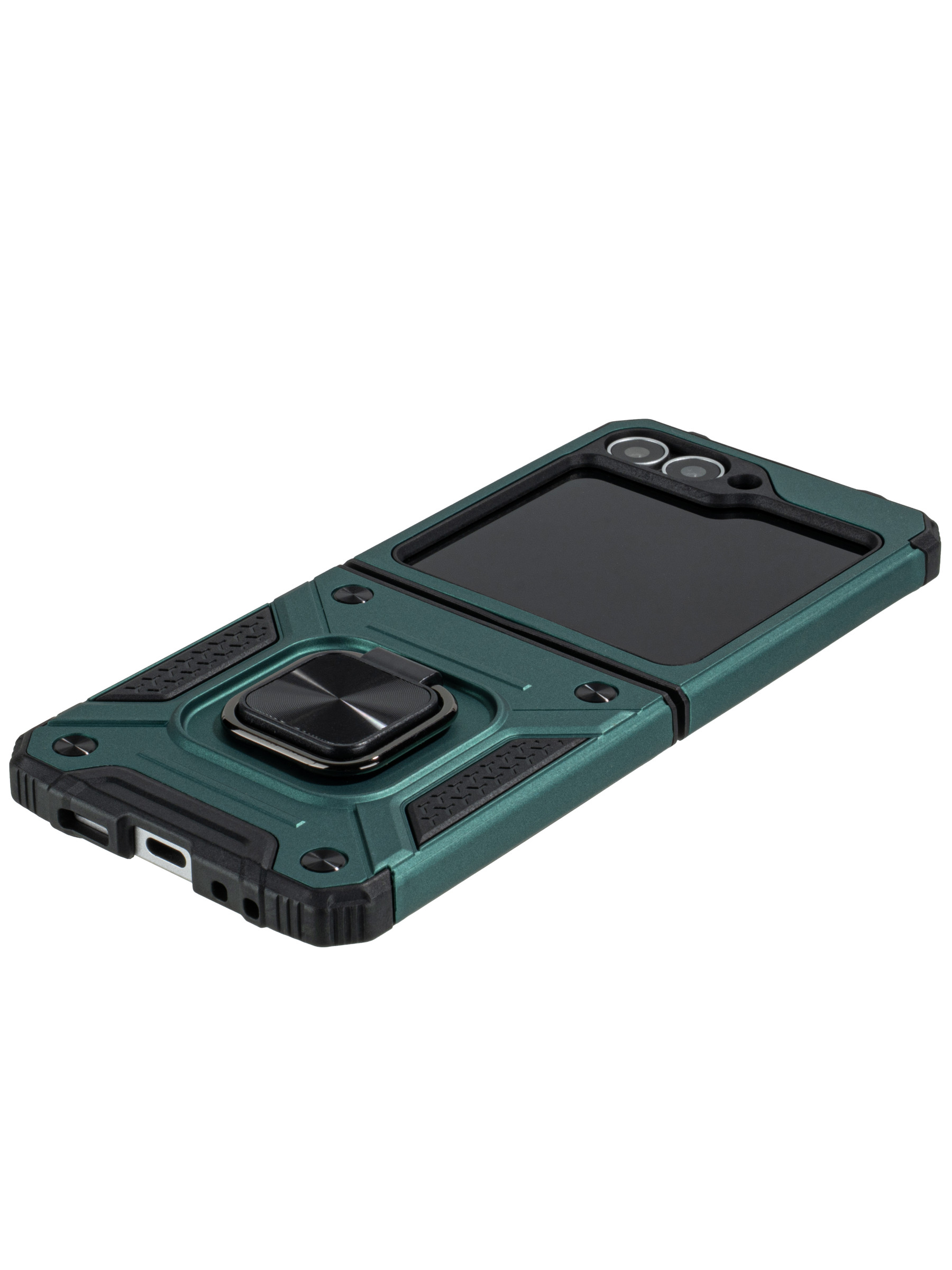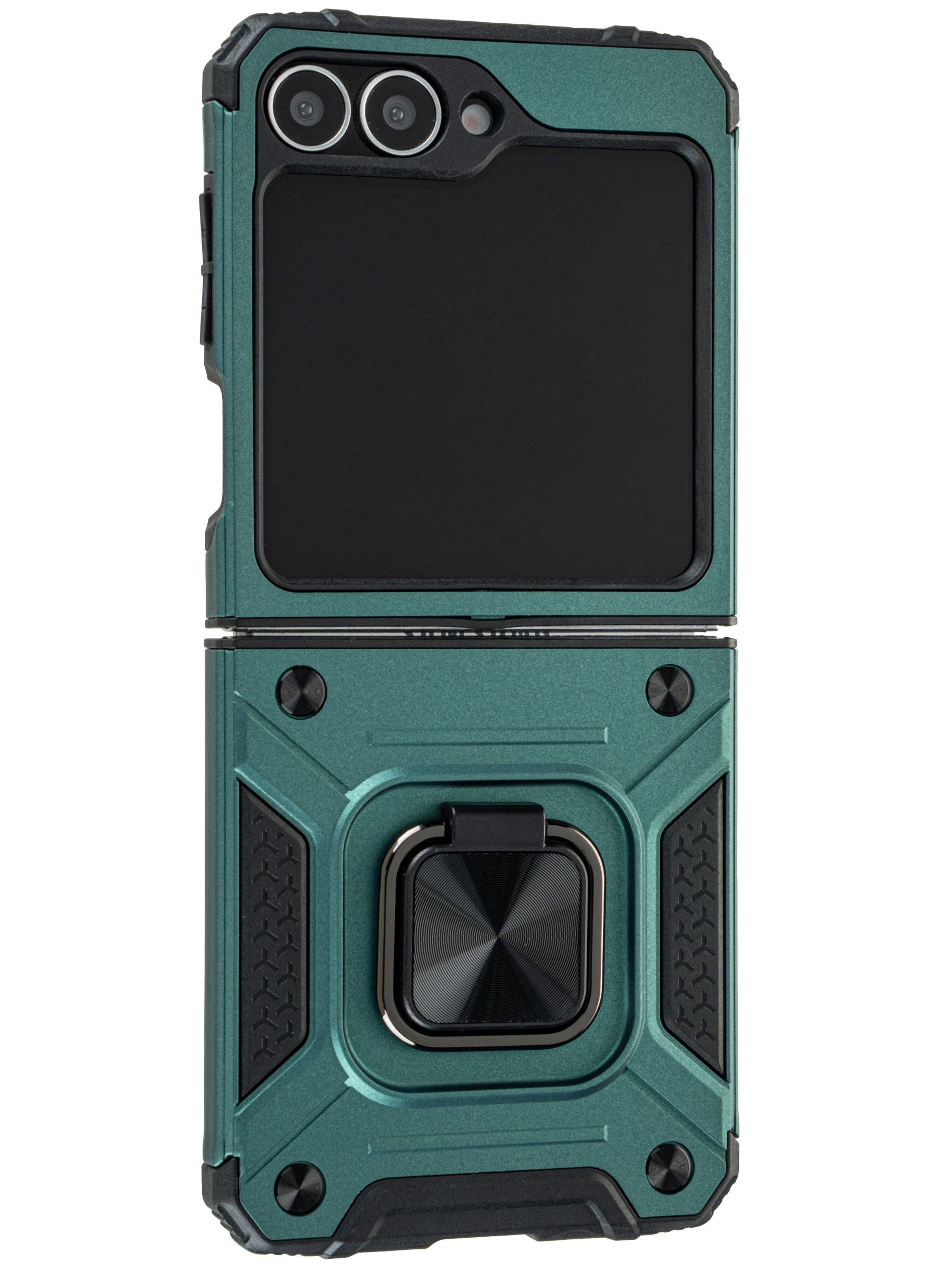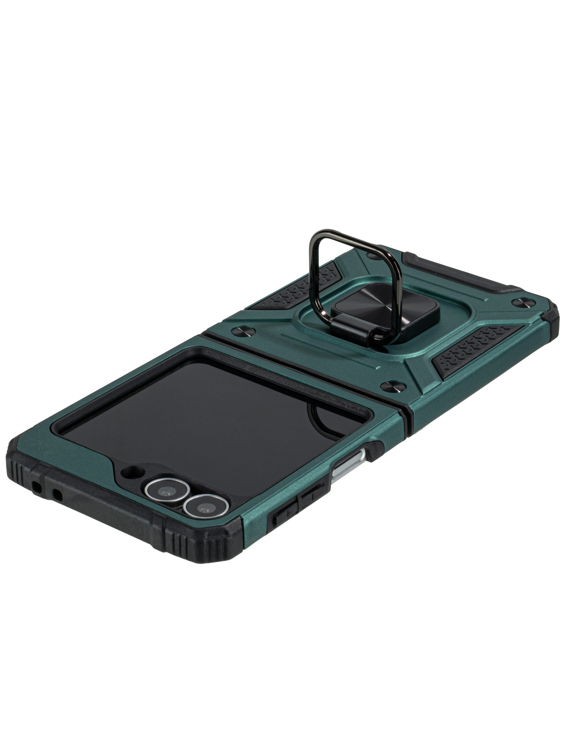 Пластиковый чехол Kickstand для Samsung Galaxy Z Flip 6 / Z Flip 7 FE изумрудный с кольцом