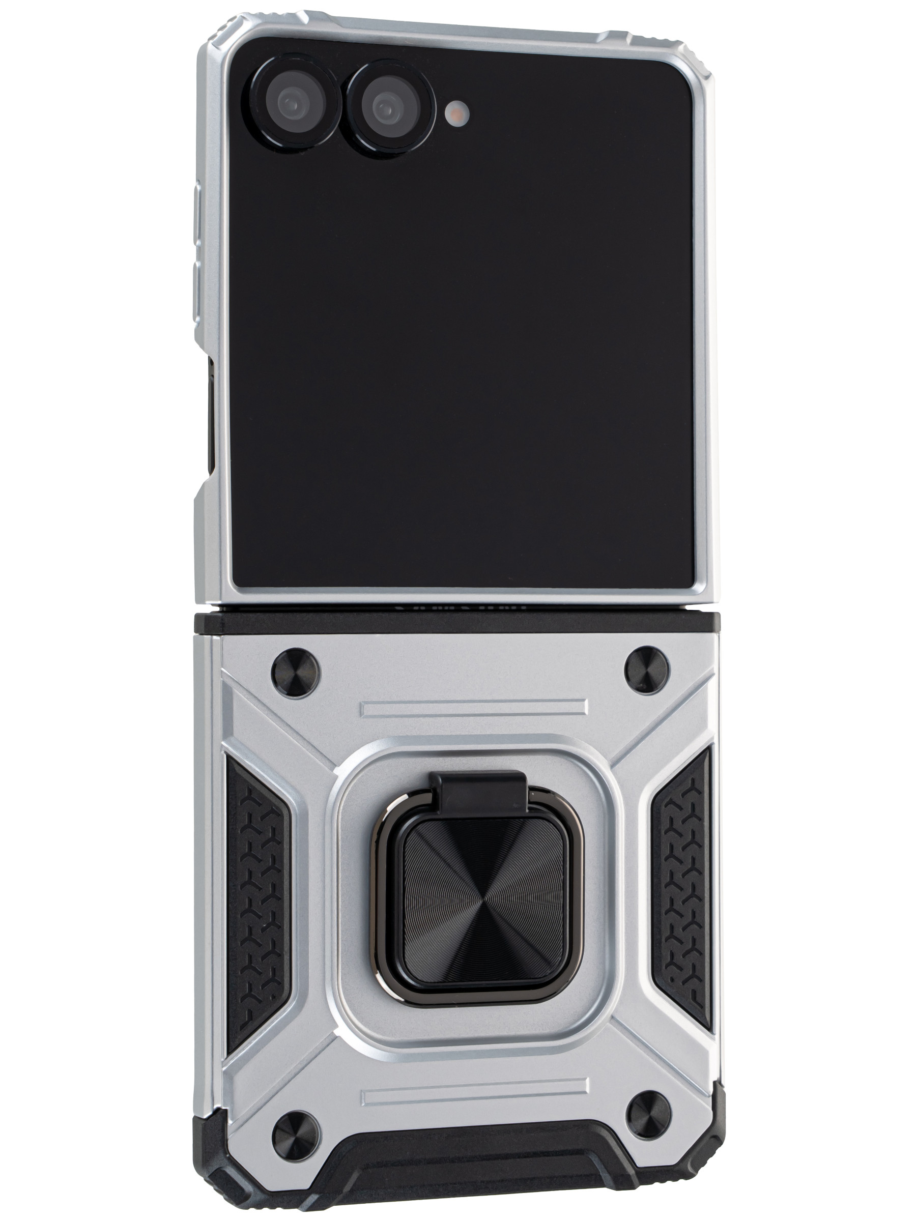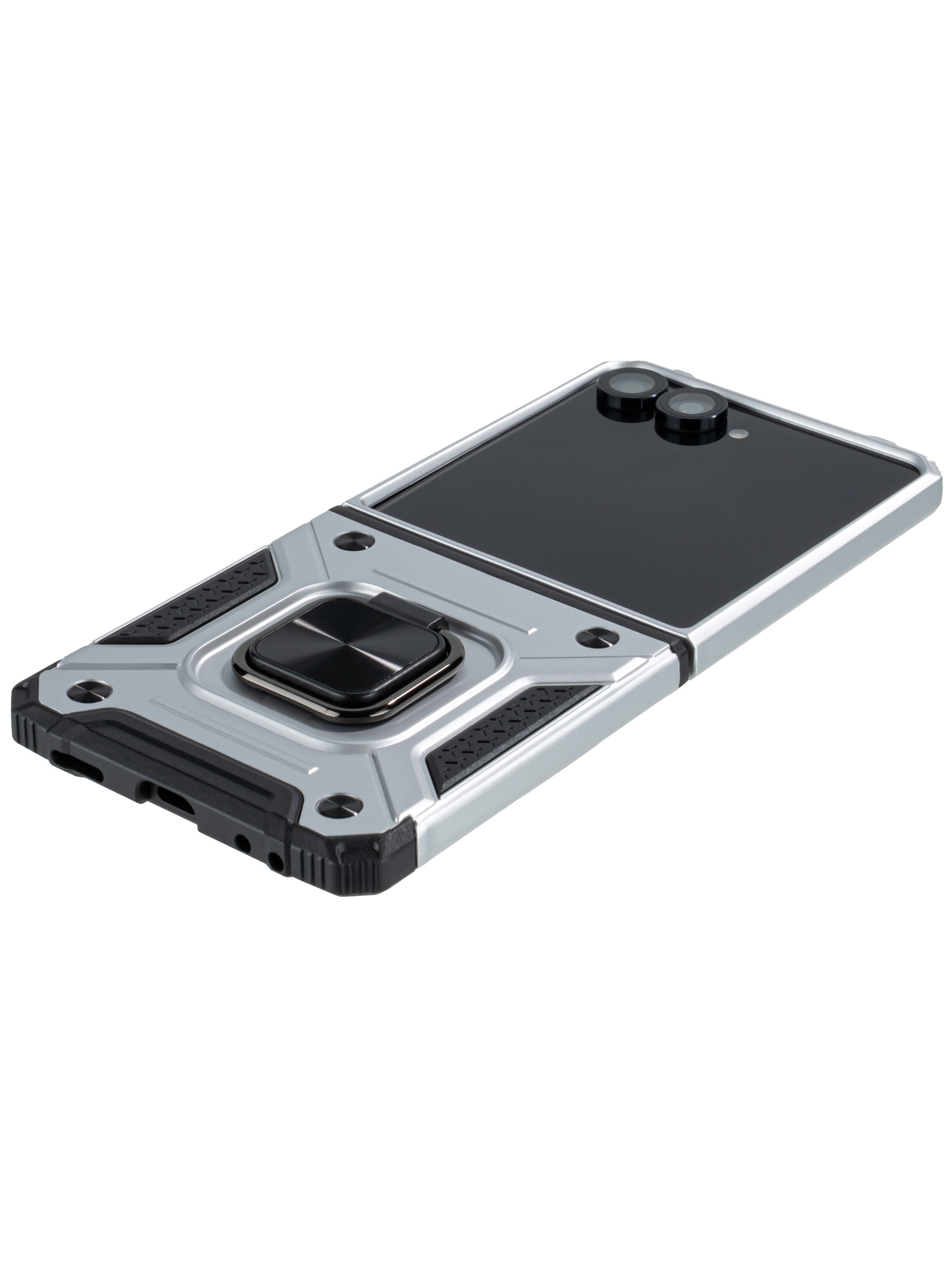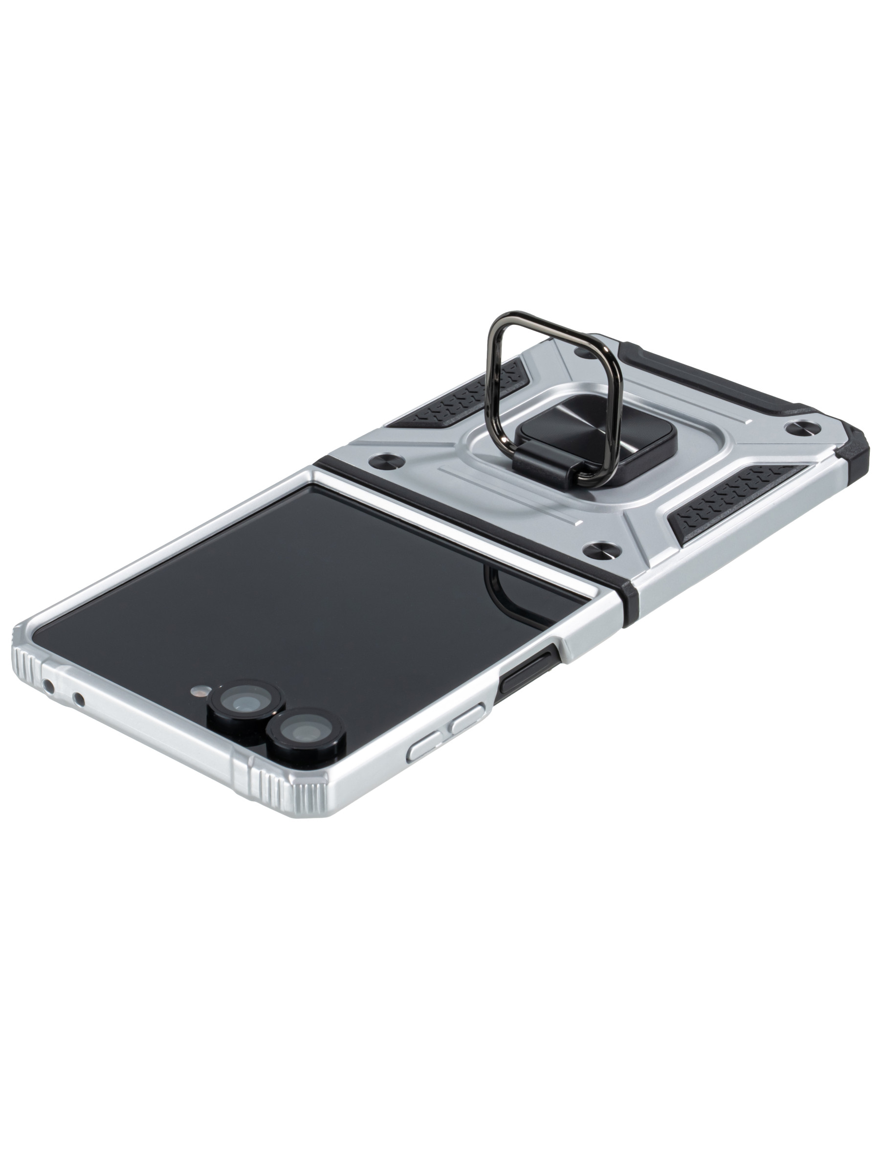 Пластиковый чехол Kickstand для Samsung Galaxy Z Flip 7 серебристый с кольцом