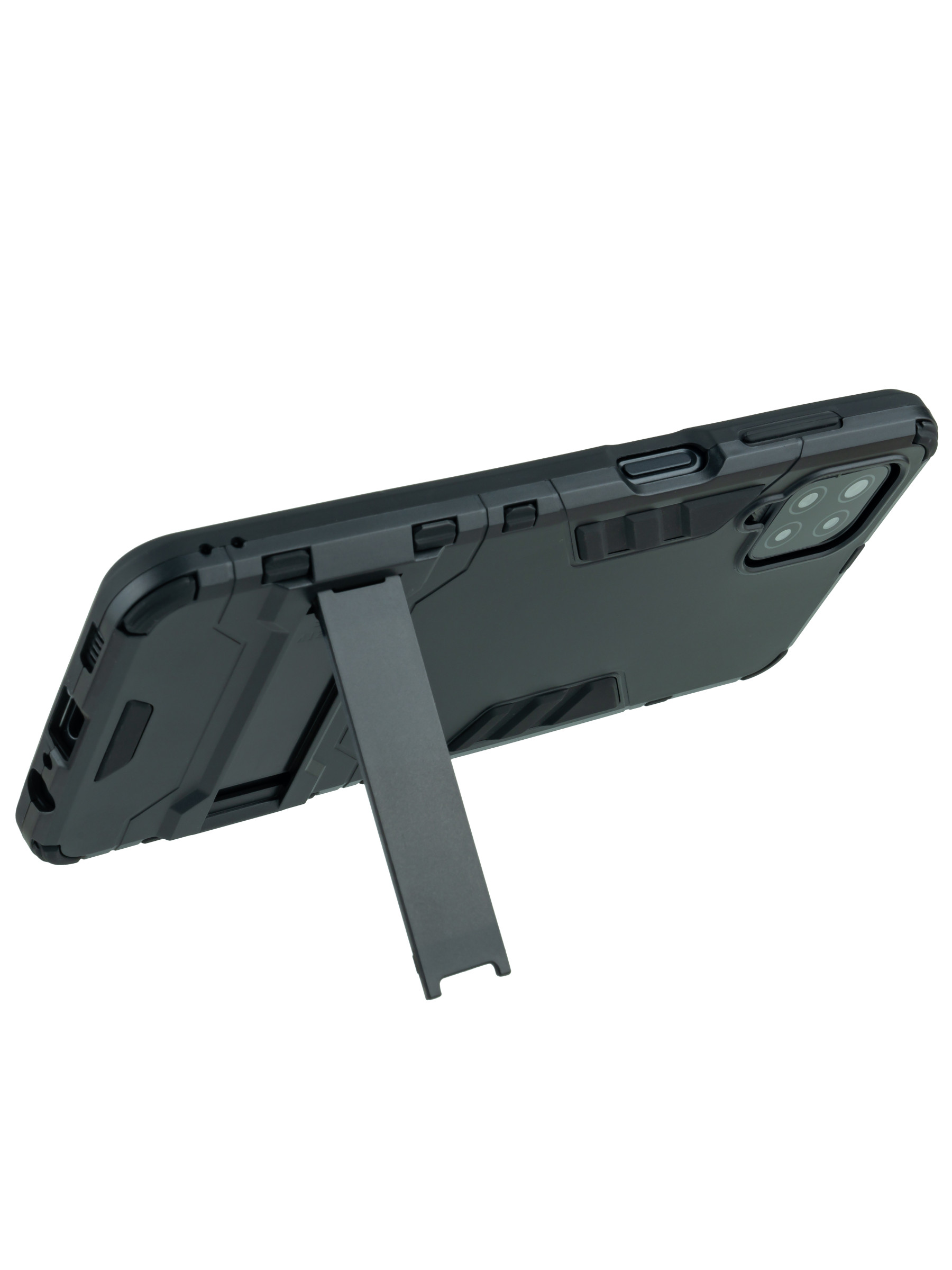 Ударопрочный чехол, выполнен из пластика, отлично защищает смартфон при падении и удобно трансформируется в подставку для комфортного просмотра видео или делать снимки без помощи рук в горизонтальном положении. Этот противоударный чехол - идеальный способ сохранить ваш телефон в целости и сохранности. Благодаря твердой внешней оболочке и мягкой внутренней подкладке этот бронированный чехол поглотит удар при любом падении. Защитный чехол с бортиками защитит экран от царапин, а идеально подогнанные вырезы обеспечат полный доступ ко всем функциям телефона. Противоскользящее покрытие предотвращает выпадение из рук телефона. Данный пластиковый чехол накладу можно назвать бронечехлом или противоударным. Матовый броне чехол идет с закрытым низом и с защитой камеры, а также с держателем 1. Защищает телефон от падений и ударов. 2. Выдерживает удары и толчки. 3. Приподнятый ободок защищает экран от царапин и трещин. 4. Прочная, но легкая конструкция. 5. Обеспечивает надежный захват для удобства использования. 6. Удобная подставка для просмотра без рук.