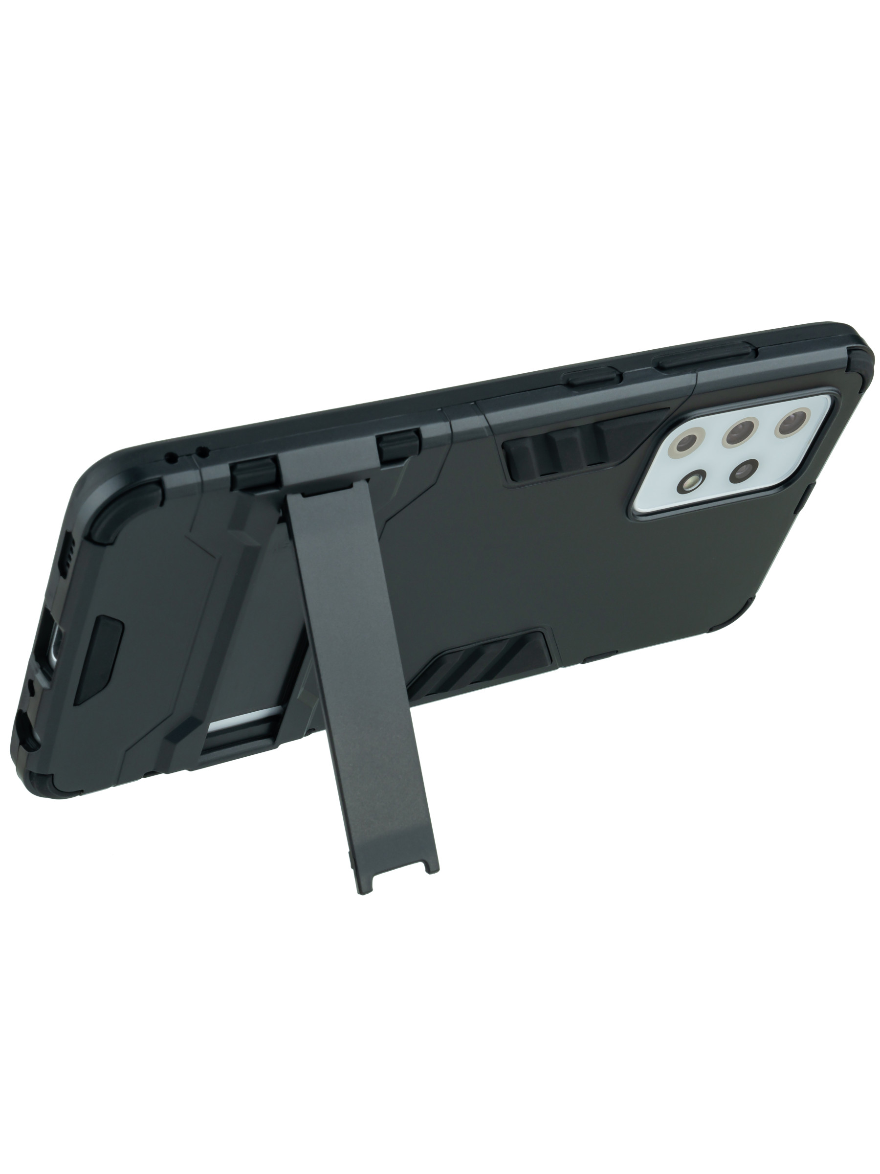 Ударопрочный чехол, выполнен из пластика, отлично защищает смартфон при падении и удобно трансформируется в подставку для комфортного просмотра видео или делать снимки без помощи рук в горизонтальном положении. Этот противоударный чехол - идеальный способ сохранить ваш телефон в целости и сохранности. Благодаря твердой внешней оболочке и мягкой внутренней подкладке этот бронированный чехол поглотит удар при любом падении. Защитный чехол с бортиками защитит экран от царапин, а идеально подогнанные вырезы обеспечат полный доступ ко всем функциям телефона. Противоскользящее покрытие предотвращает выпадение из рук телефона. Данный пластиковый чехол накладу можно назвать бронечехлом или противоударным. Матовый броне чехол идет с закрытым низом и с защитой камеры, а также с держателем 1. Защищает телефон от падений и ударов. 2. Выдерживает удары и толчки. 3. Приподнятый ободок защищает экран от царапин и трещин. 4. Прочная, но легкая конструкция. 5. Обеспечивает надежный захват для удобства использования. 6. Удобная подставка для просмотра без рук.