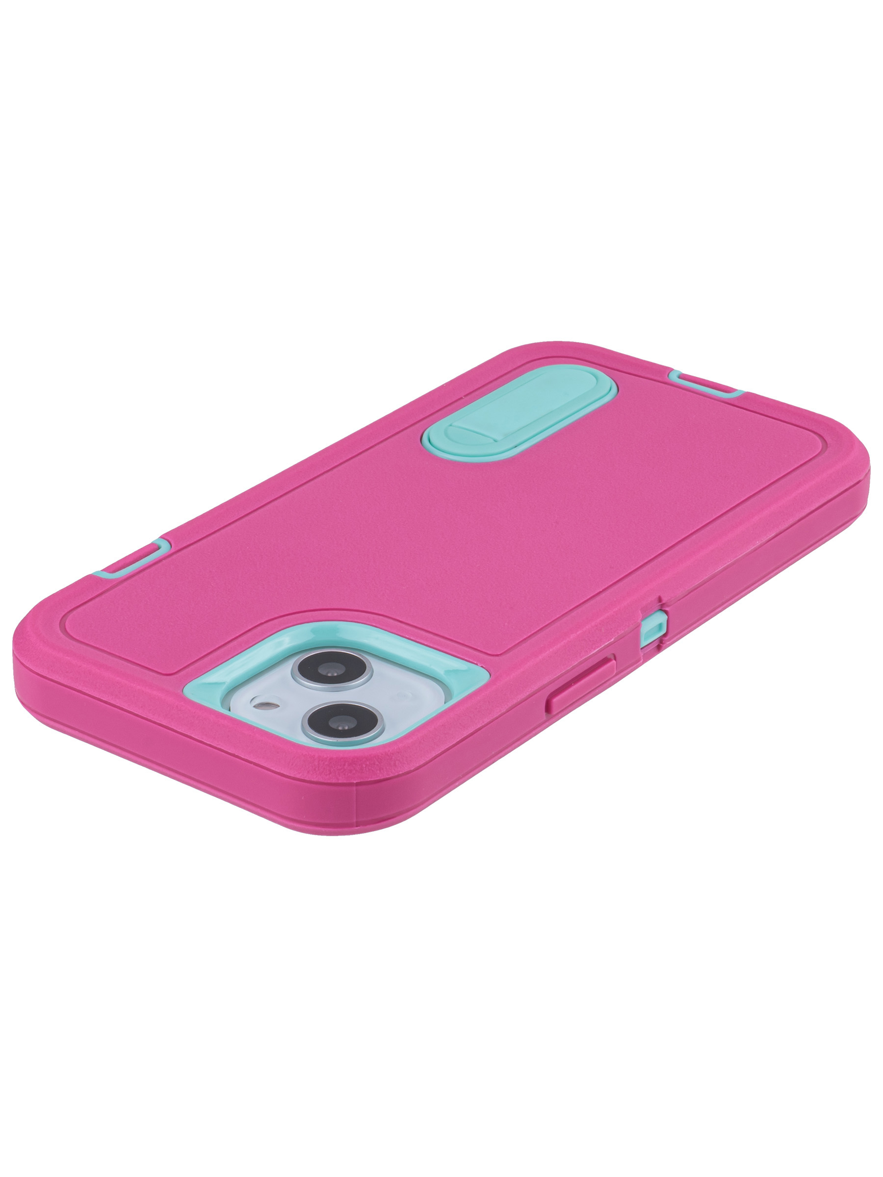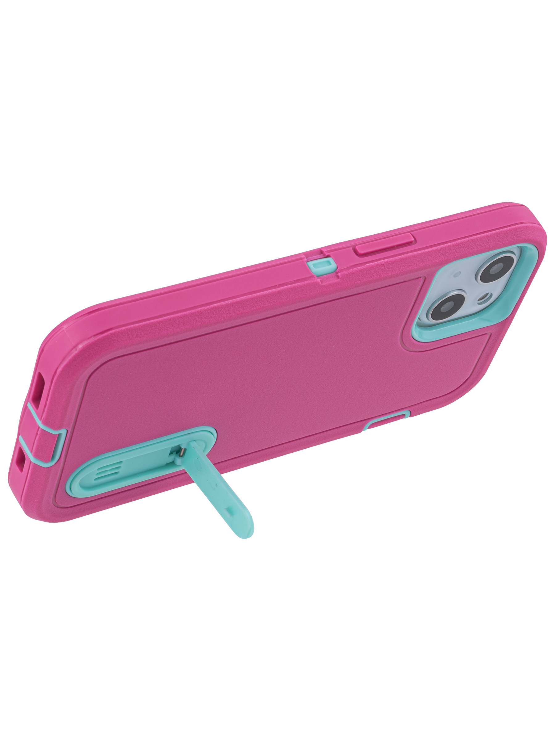 Пластиковый чехол Triple Defense для iPhone 13 с подставкой розово-голубой