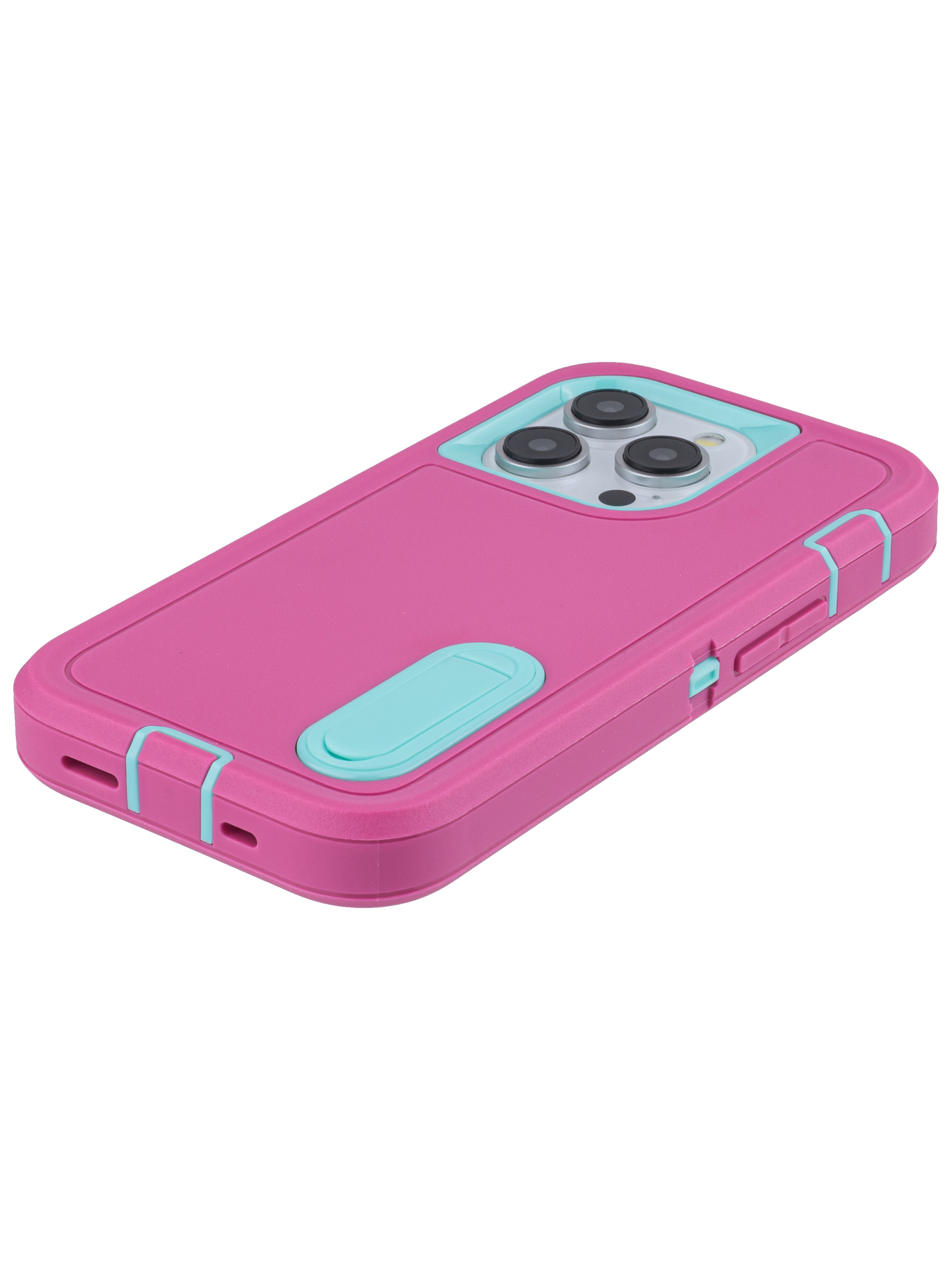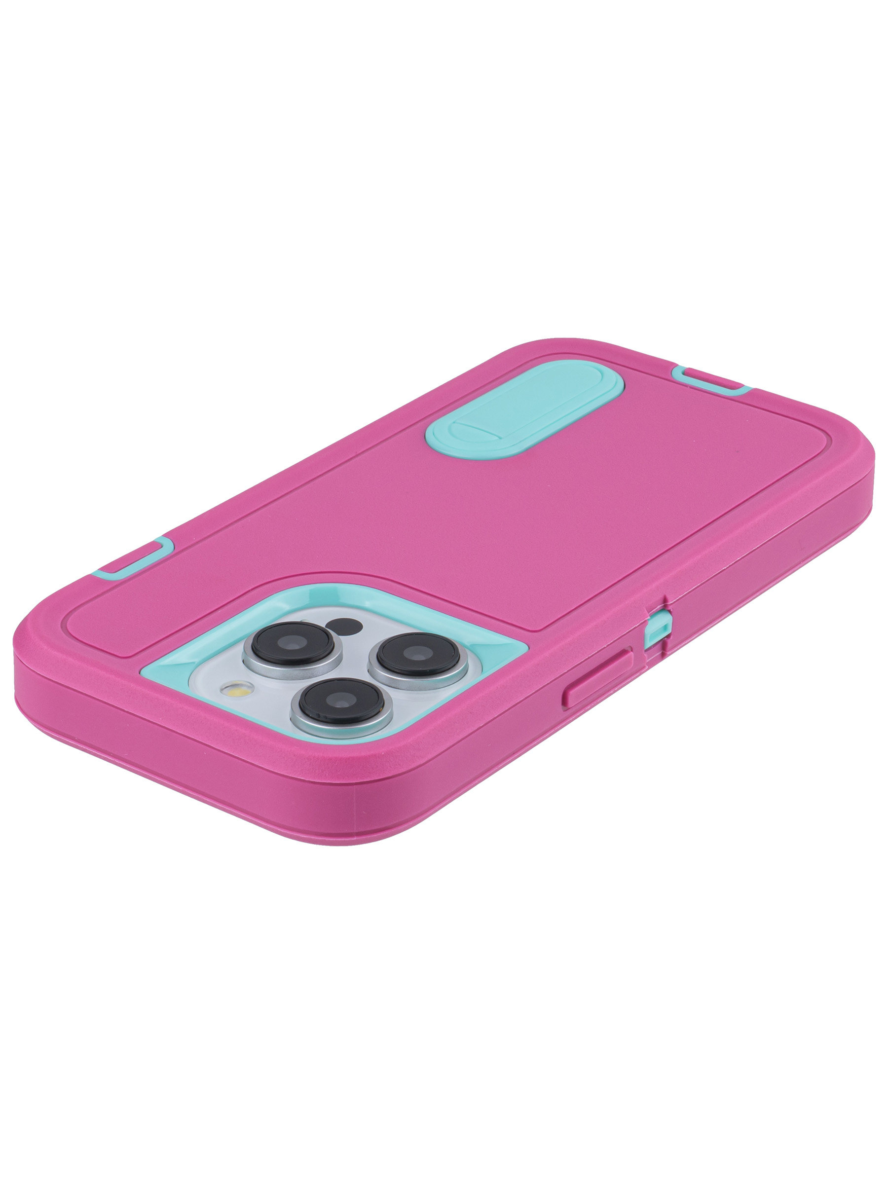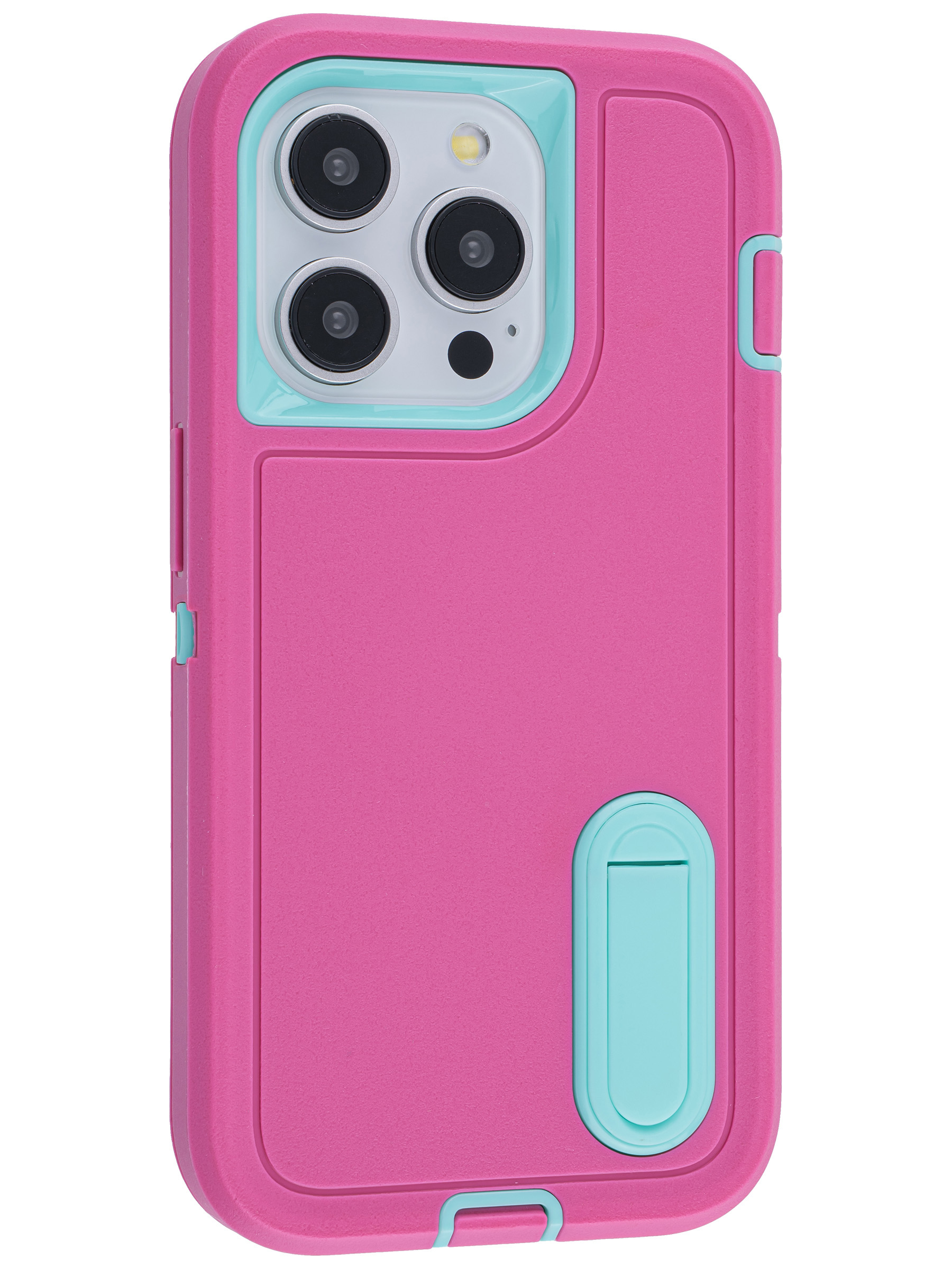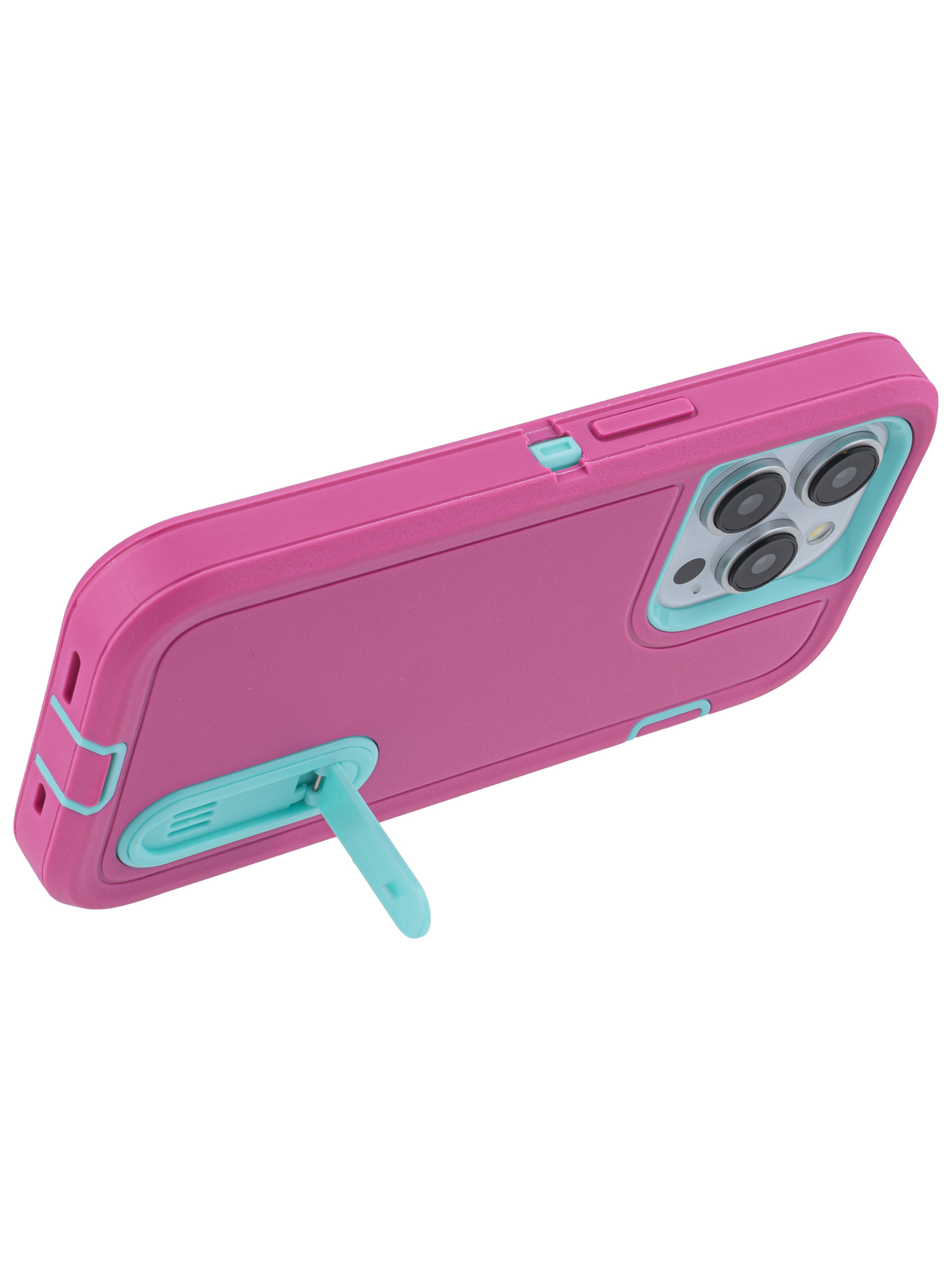 Пластиковый чехол Triple Defense для iPhone 15 Pro с подставкой розово-голубой
