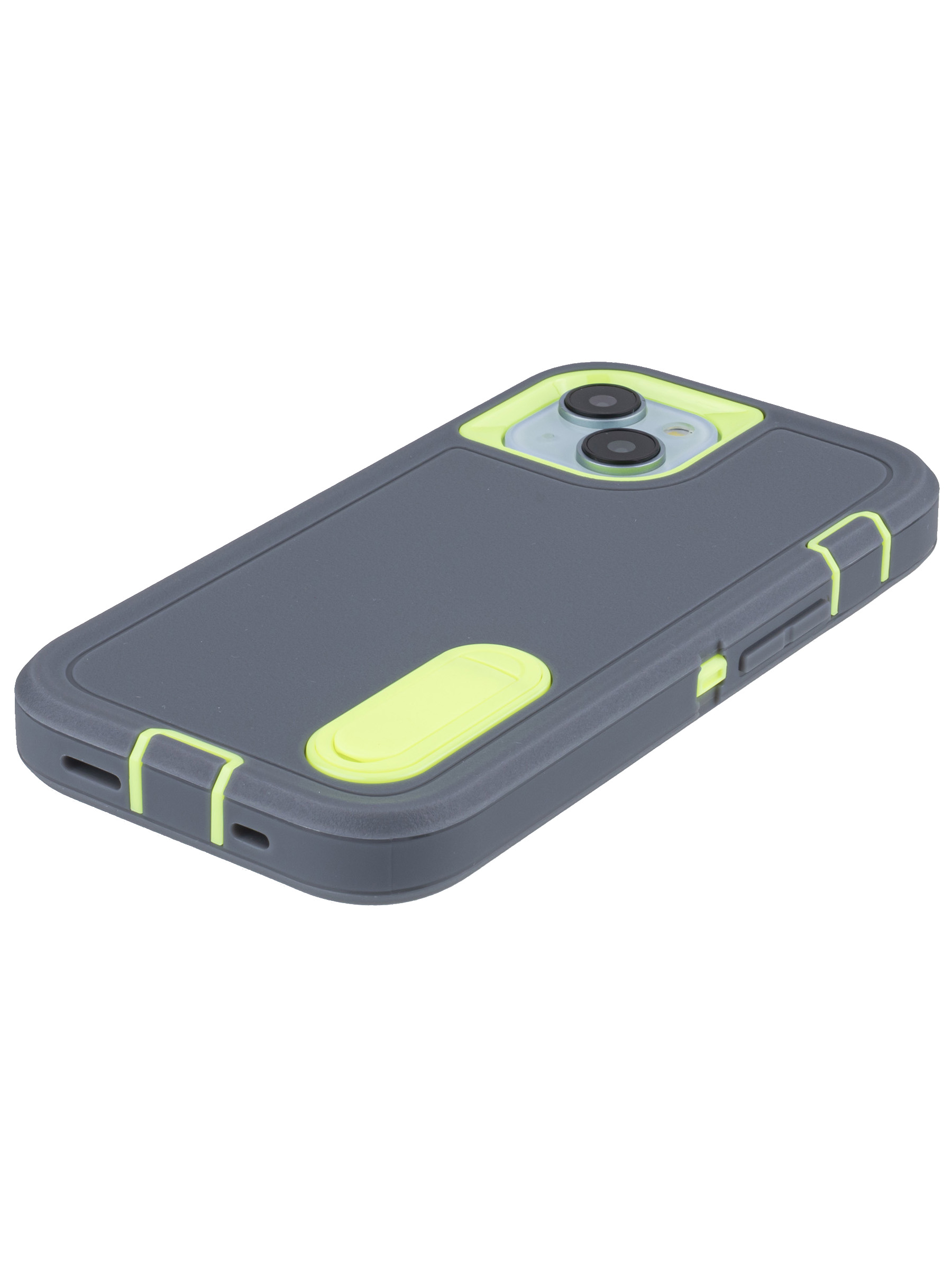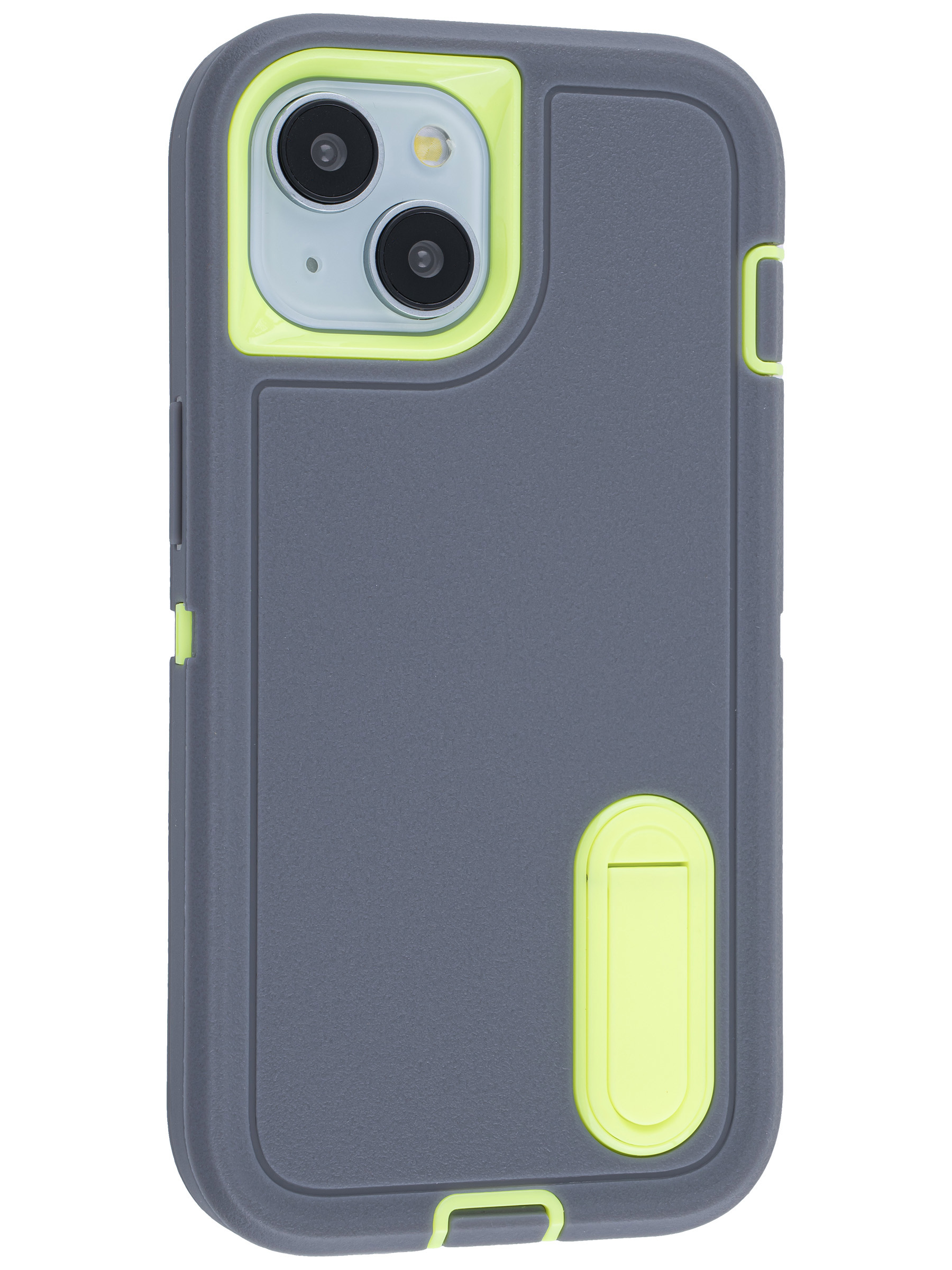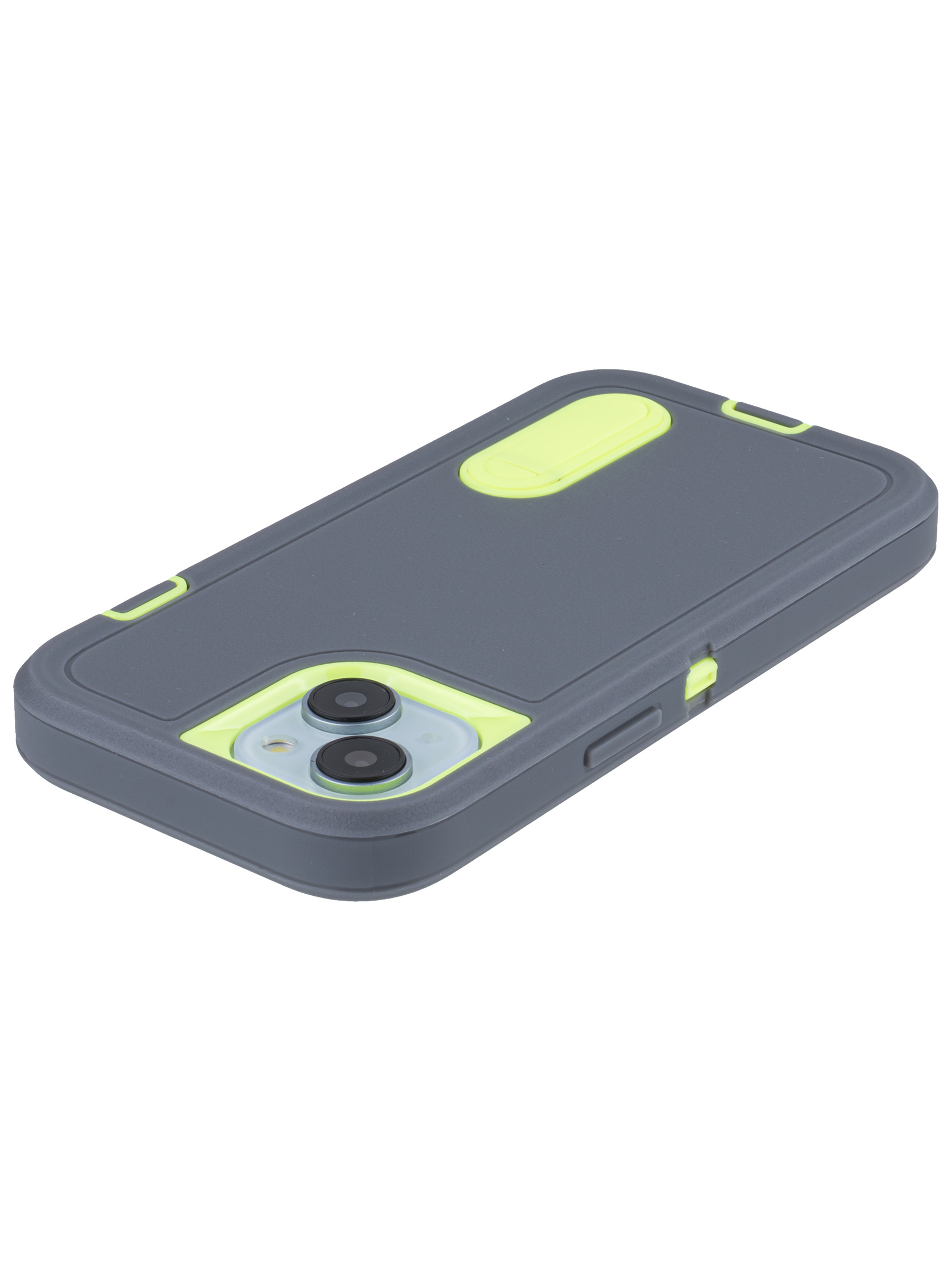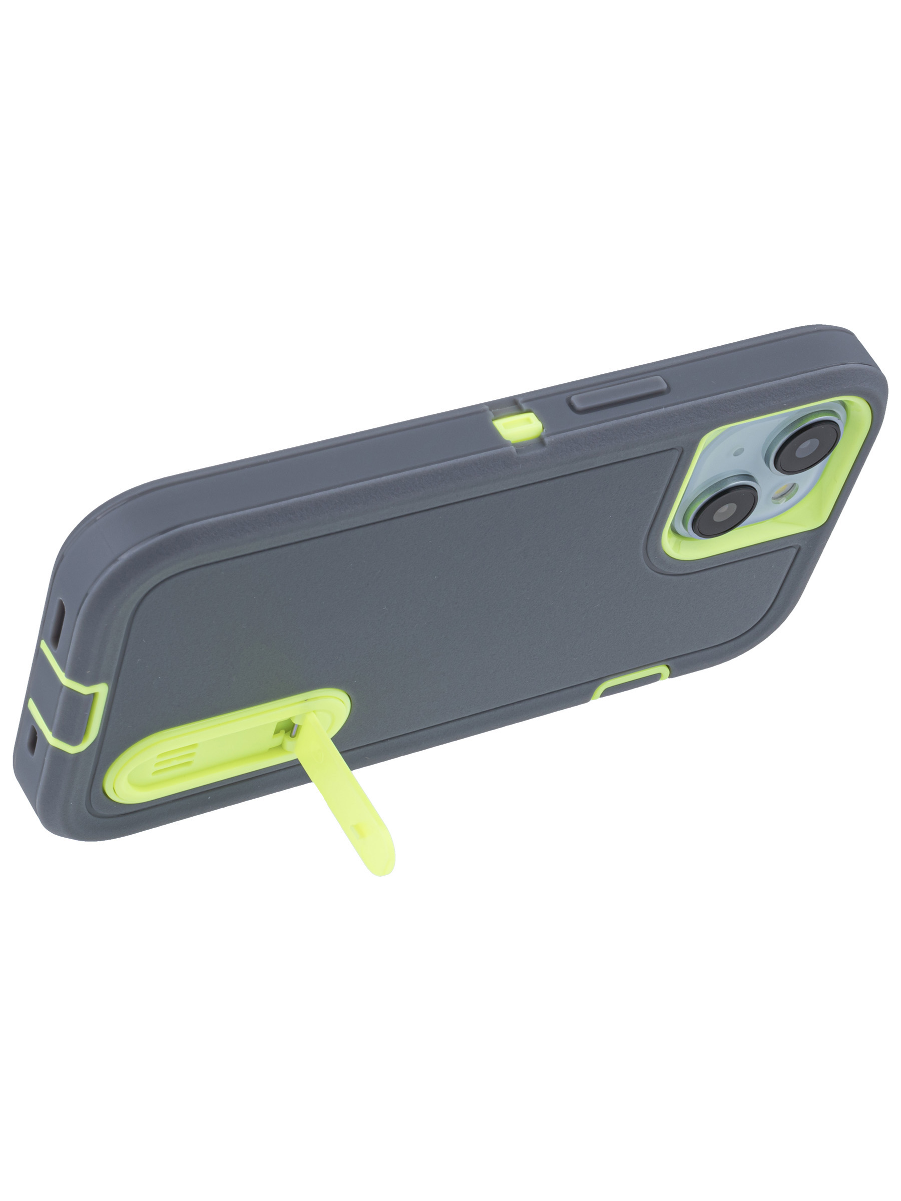 Пластиковый чехол Triple Defense для iPhone 15 с подставкой серо-зеленый