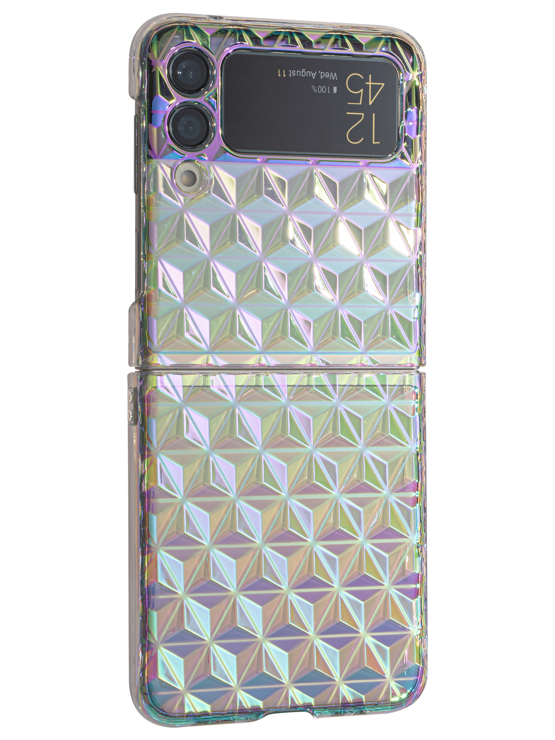 Плотный пластиковый чехол с голографическим дизайном. Все вырезы идеально подогнаны.