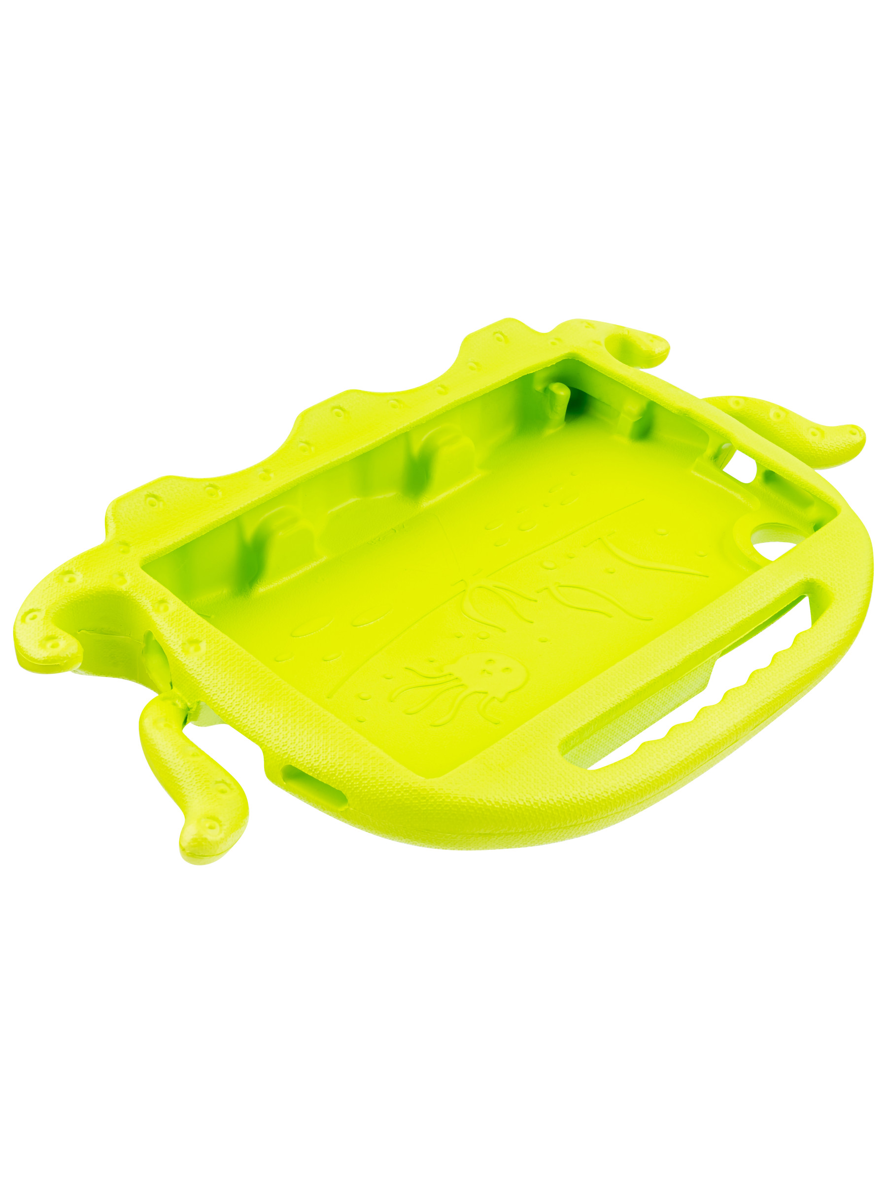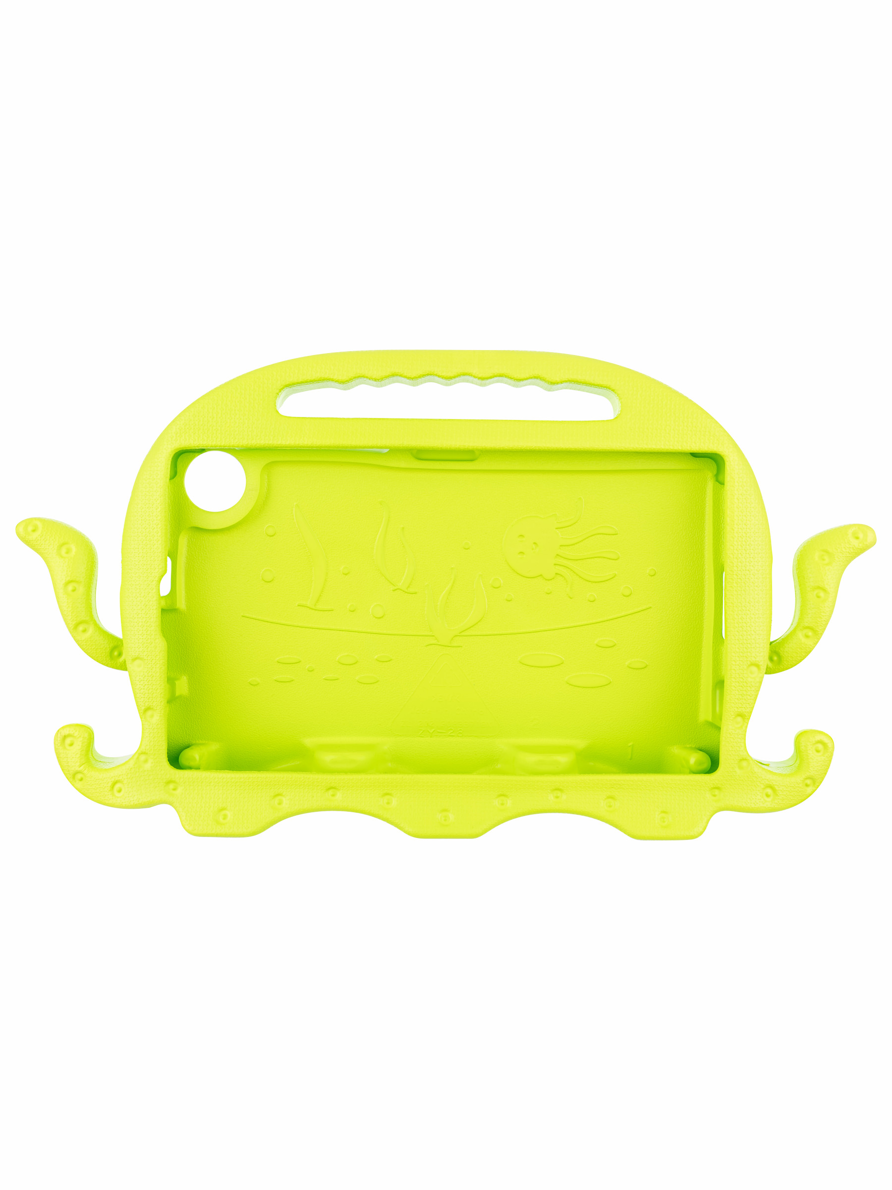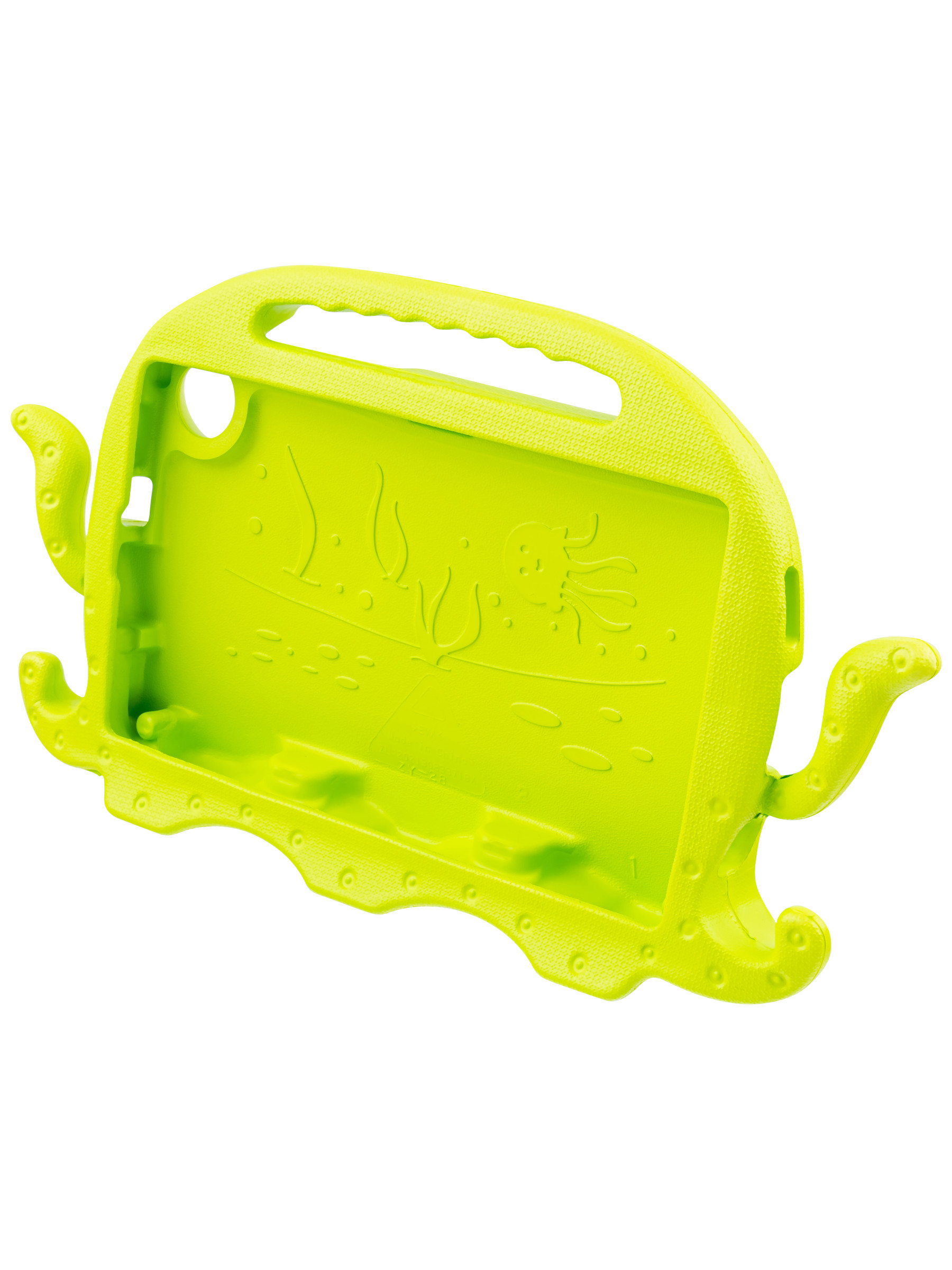 Противоударный детский чехол для планшета. Изготовлен из высококачественного силикона увеличенной толщины. Чехол легко трансформируется в подставку с помощью выдвижных ножек, для просмотра видео и рисования. Надежно фиксирует устройство, исключая возможность случайного выскальзывания. Так же у чехла есть удобная ручка сверху, благодаря которой Ваш ребенок будет крепко держать планшет в руках.