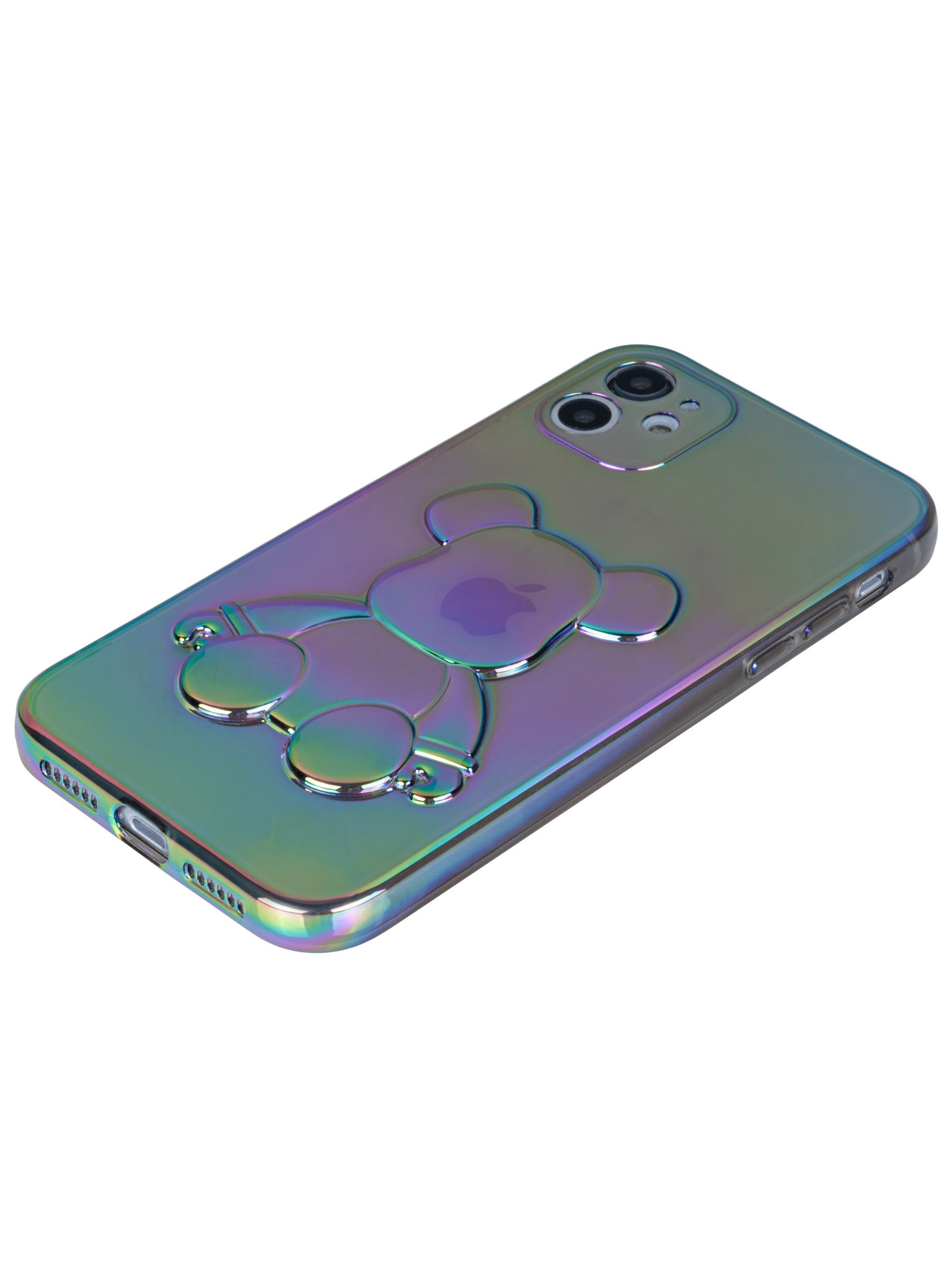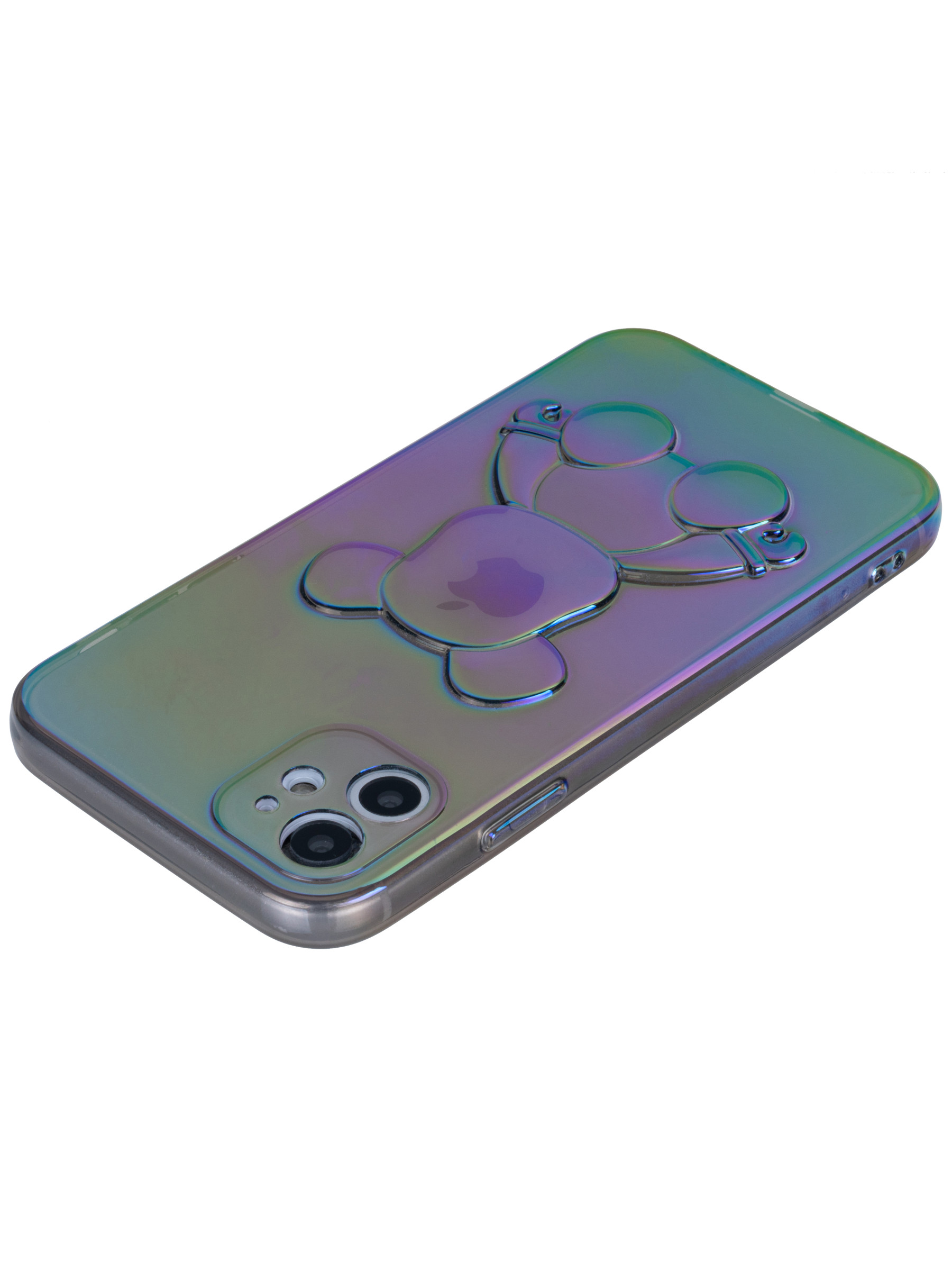Силиконовый чехол 3D Bear для iPhone 11 серый перламутр