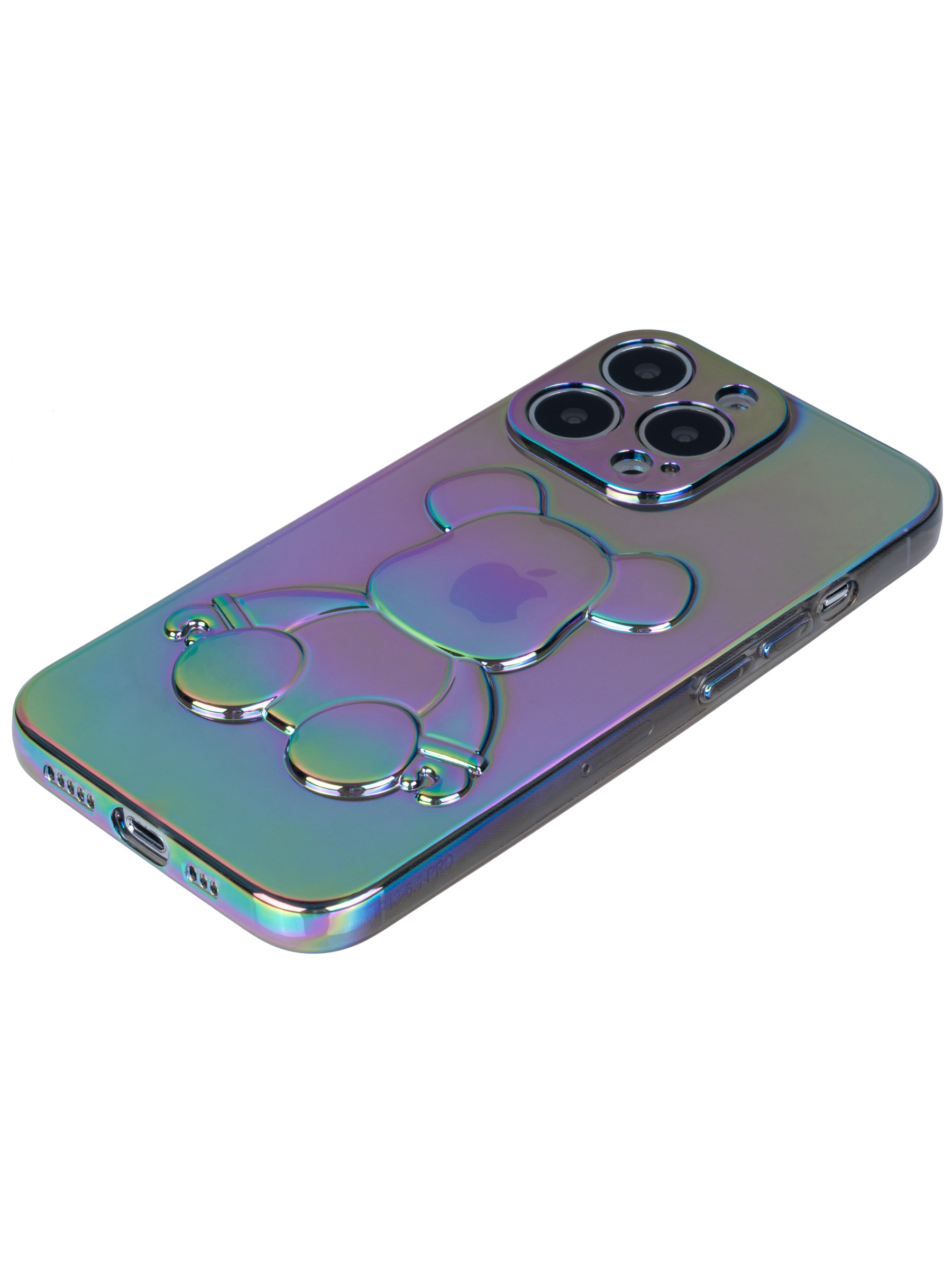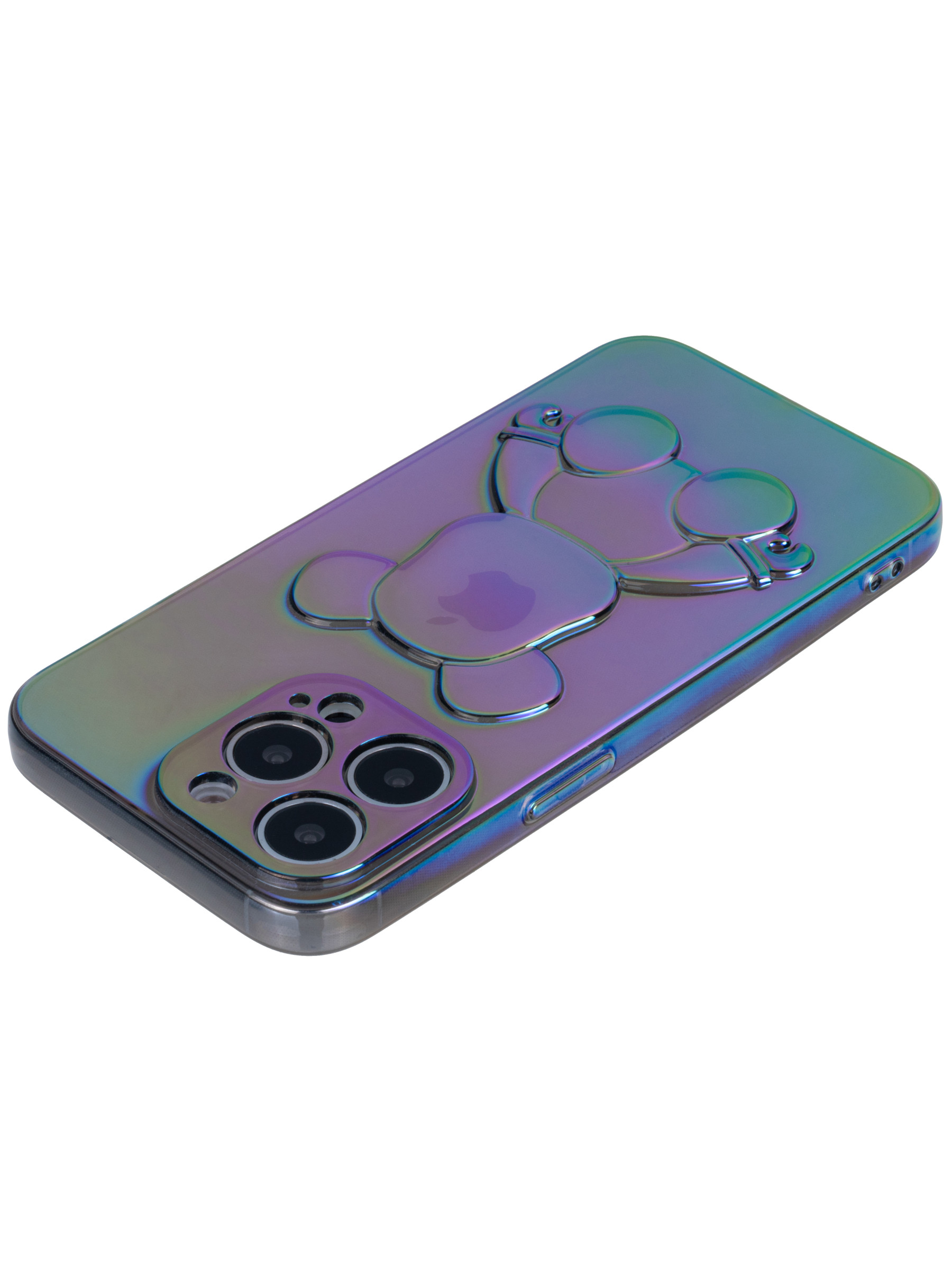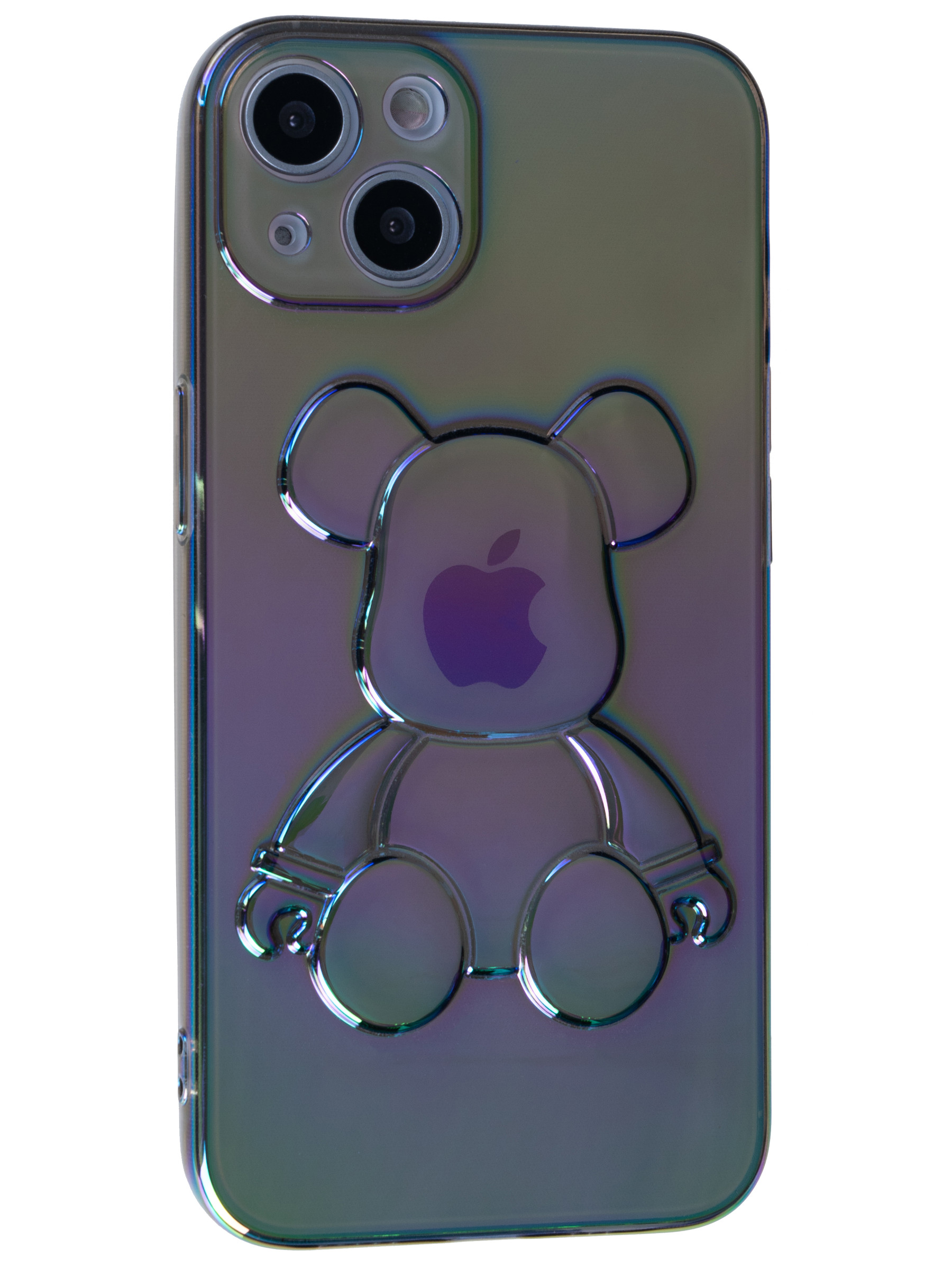 Силиконовый чехол 3D Bear для iPhone 13 серый перламутр