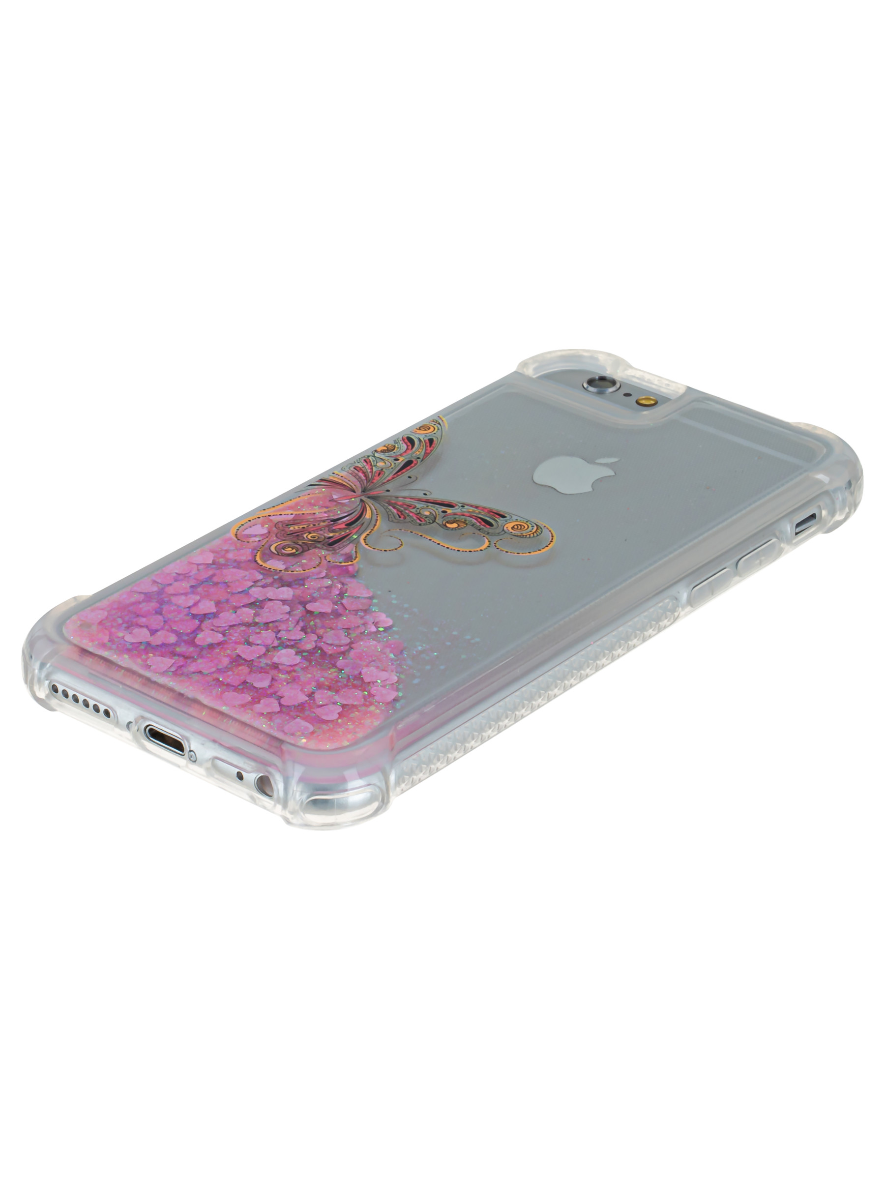 Силиконовый чехол Brilliant sand для iPhone 6, 6S Золотая бабочка розовые сердца