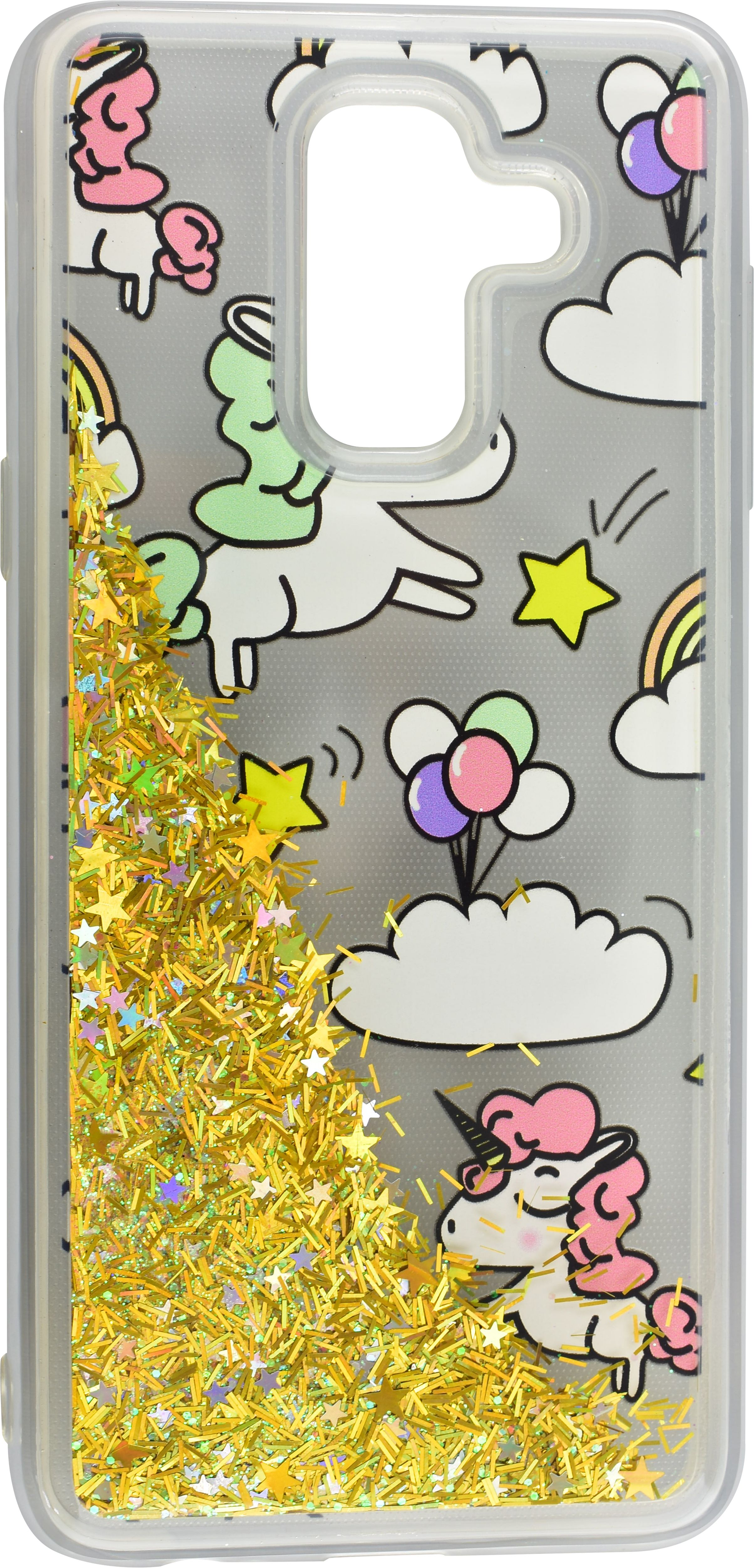 Силиконовый чехол Brilliant sand для Samsung Galaxy J8 2018 J810G Единорожки золотистый песок