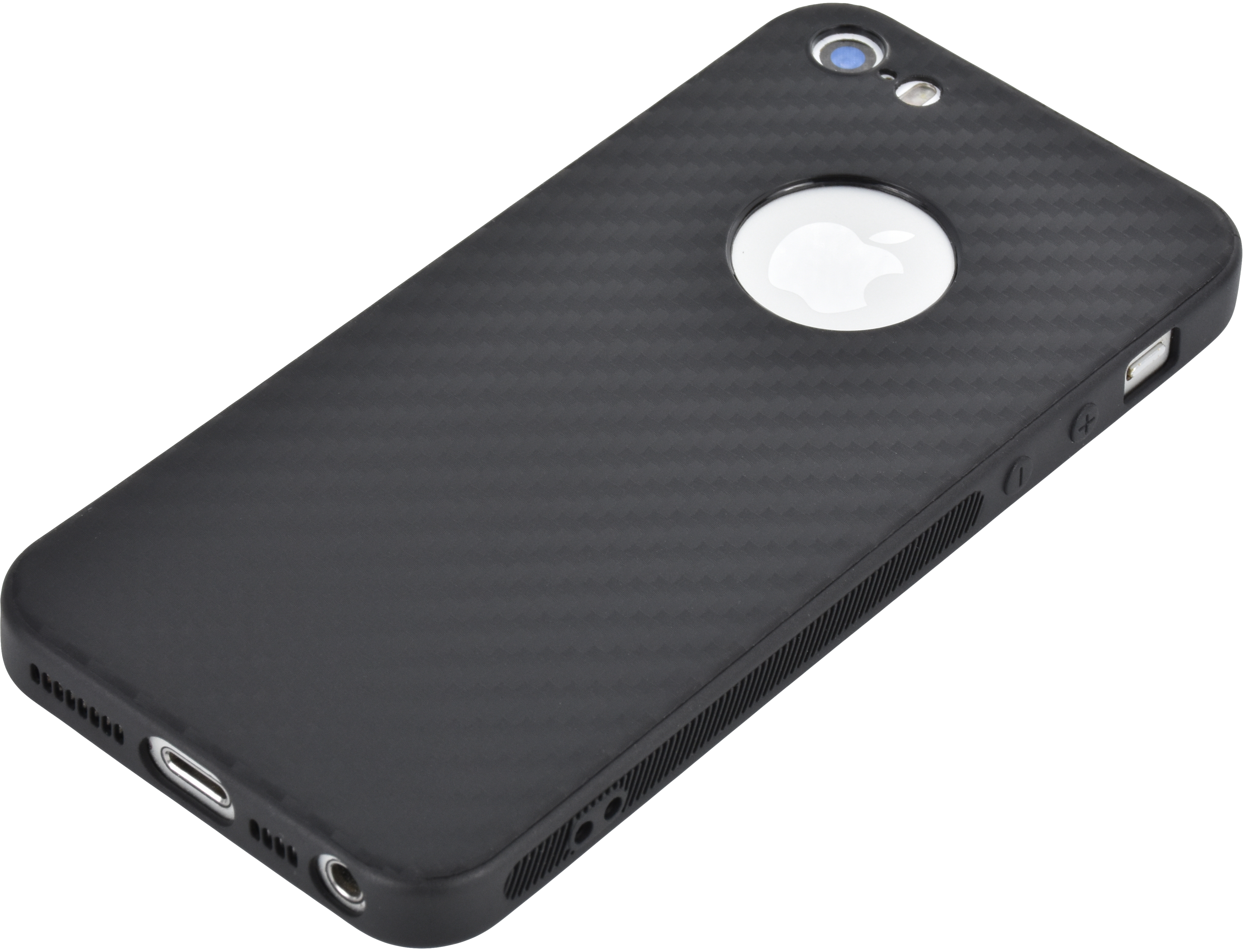 Силиконовый чехол Carboniferous для iPhone 5, 5S, SE 2016 черный с логотипом