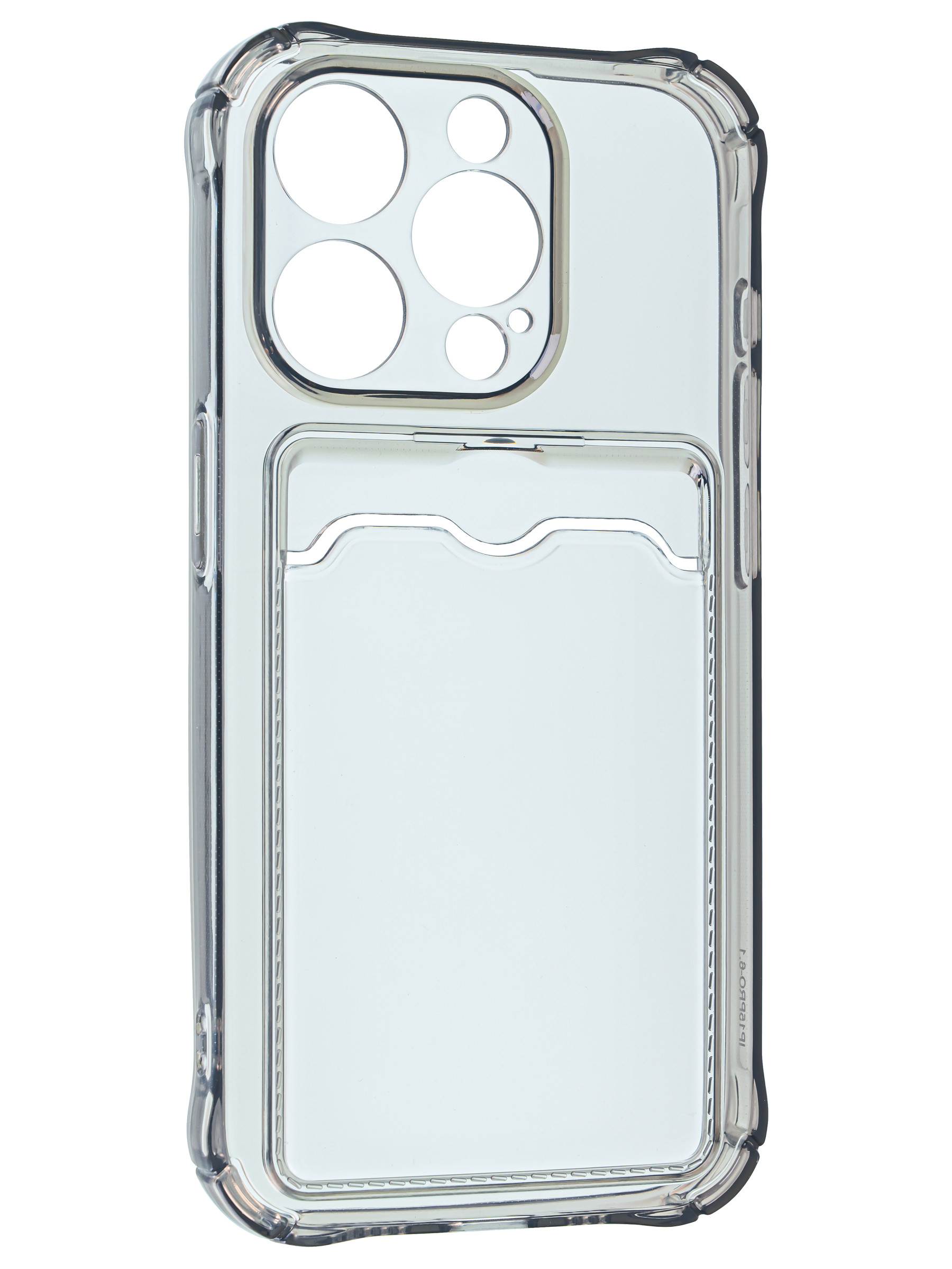 Противоударный силиконовый чехол с кармашком. Рассчитан исключительно для хранения карт и визиток. Не предусмотрен для бесконтактной оплаты. Все вырезы идеально подогнаны.