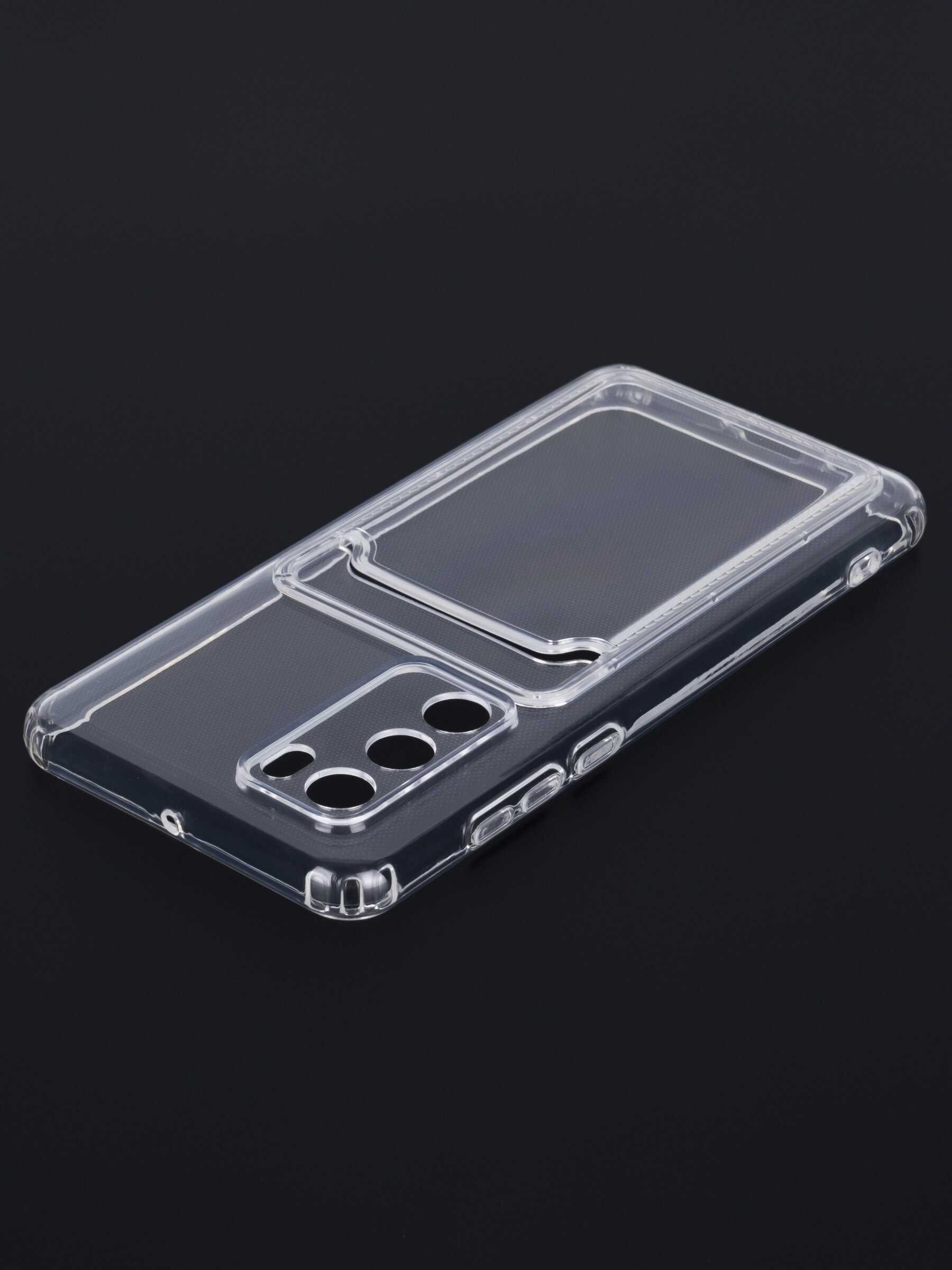 Противоударный силиконовый чехол с кармашком. Рассчитан исключительно для хранения карт и визиток. Не предусмотрен для бесконтактной оплаты. Все вырезы идеально подогнаны.