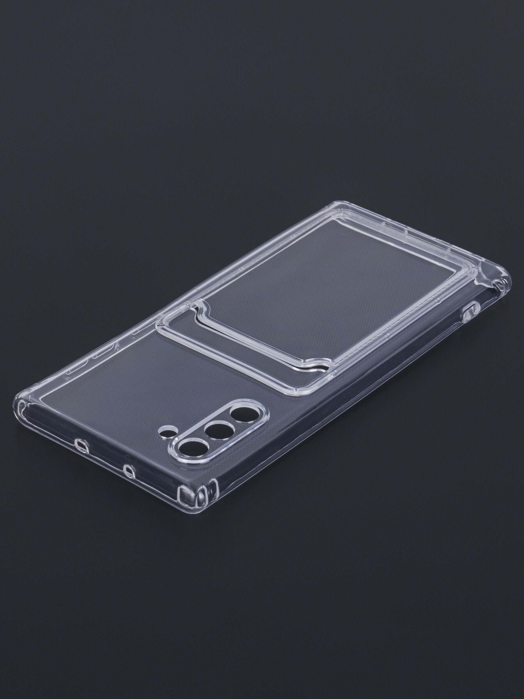 Силиконовый чехол Card holder для Samsung Galaxy Note 10 прозрачный (с вырезом для карт)