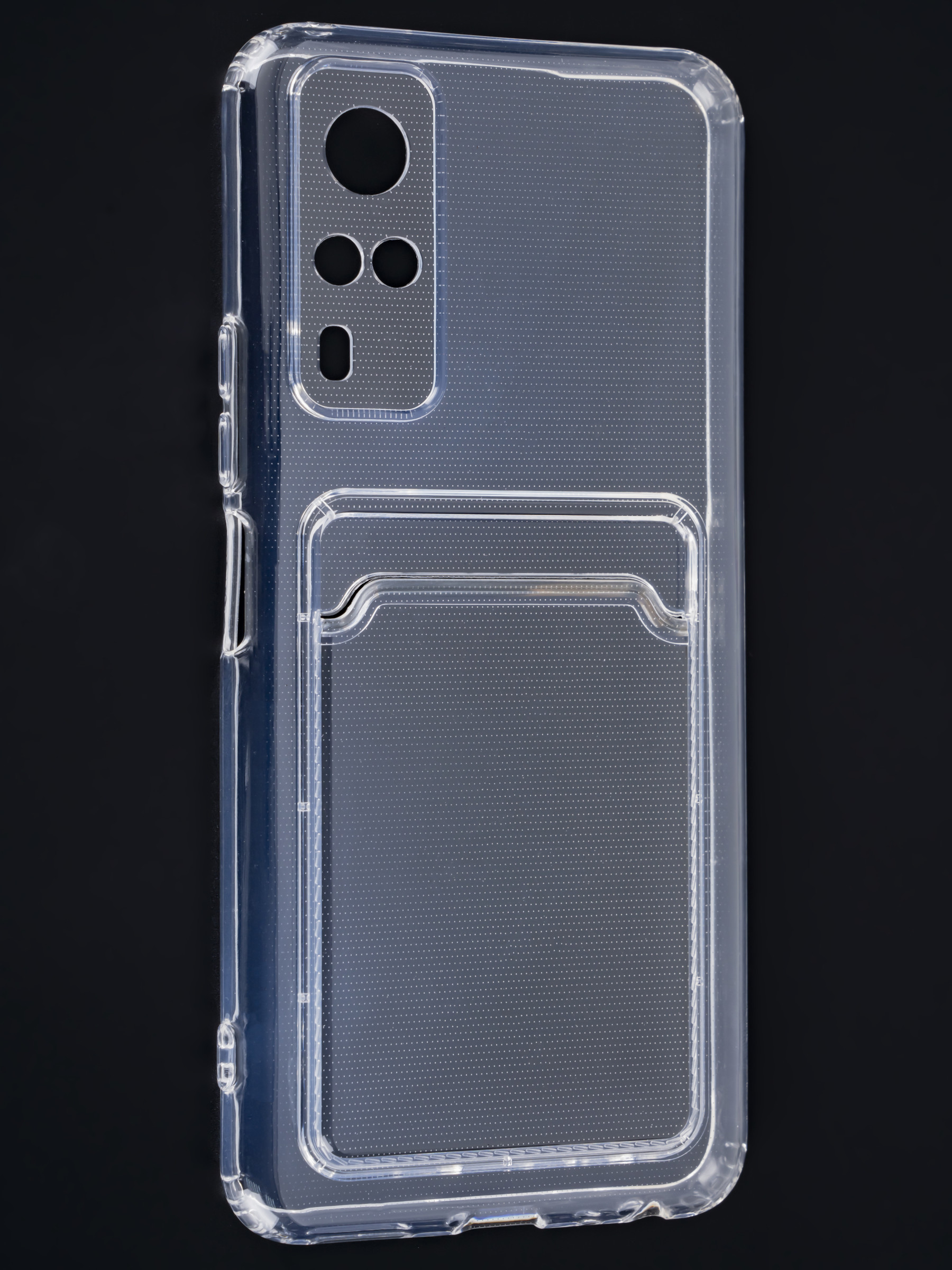 Противоударный силиконовый чехол с кармашком. Рассчитан исключительно для хранения карт и визиток. Не предусмотрен для бесконтактной оплаты. Все вырезы идеально подогнаны.