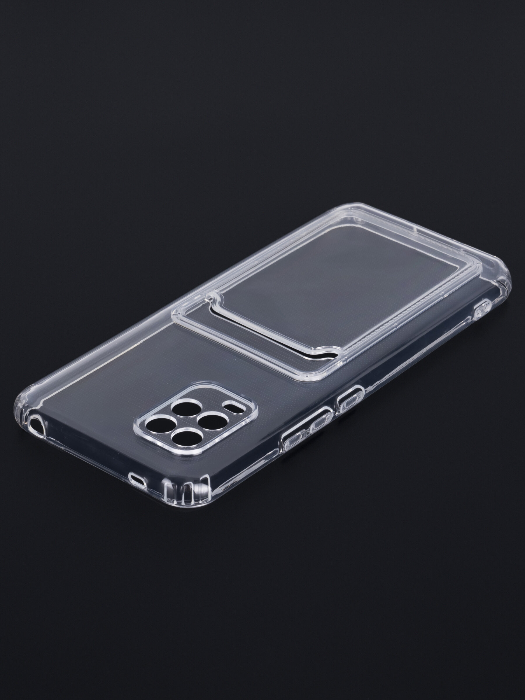Противоударный силиконовый чехол с кармашком. Рассчитан исключительно для хранения карт и визиток. Не предусмотрен для бесконтактной оплаты. Все вырезы идеально подогнаны.