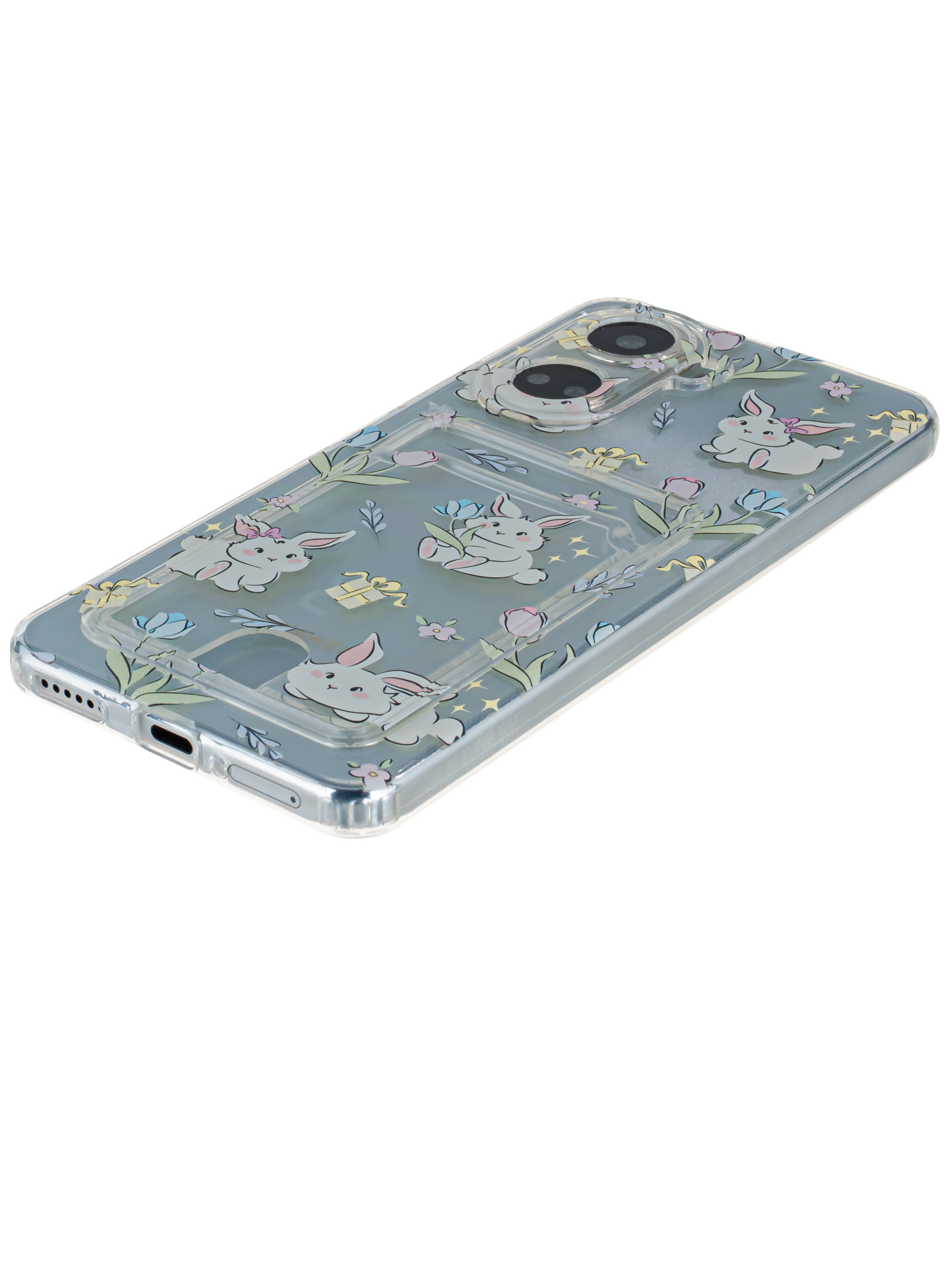 Силиконовый чехол Cardhold для Huawei Nova 10 SE зайчата (с вырезом для карт)