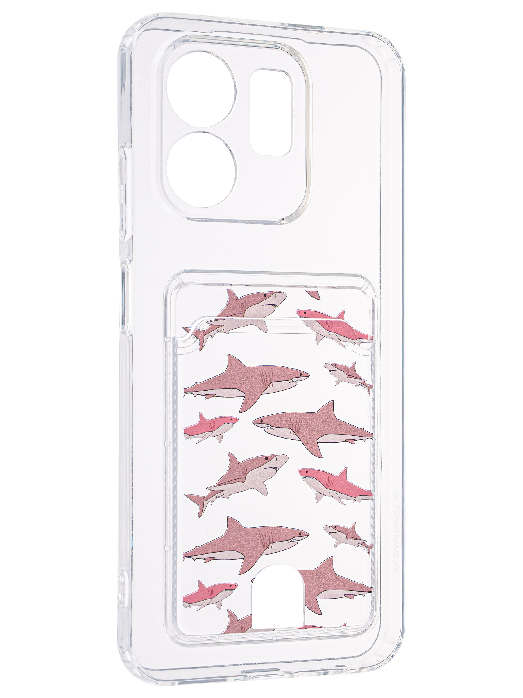 Силиконовый чехол Cardhold для Infinix Smart 9 / Smart 9 HD pink sharks (с вырезом для карт)