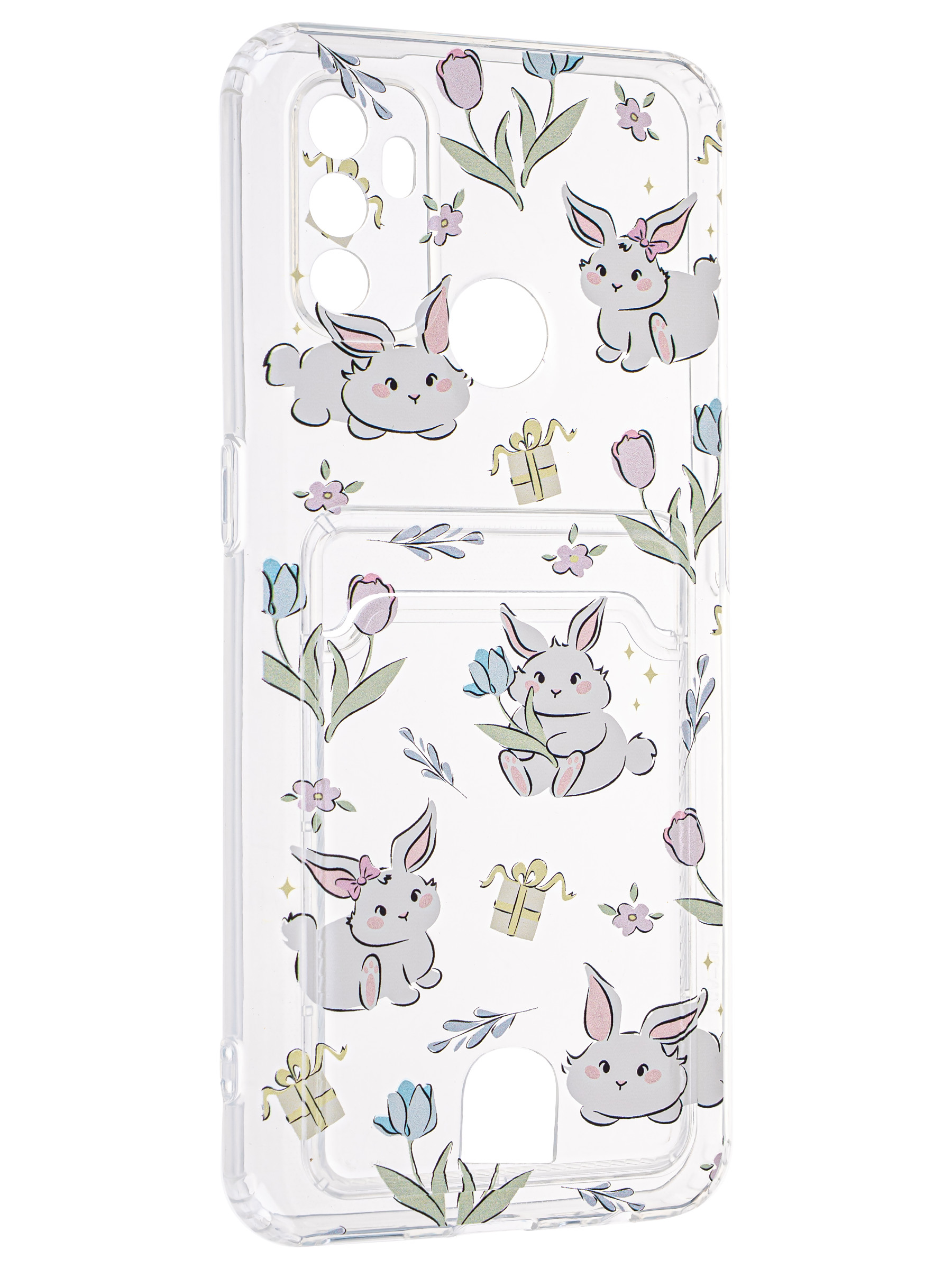 Силиконовый чехол Cardhold для Oppo A53 зайчата (с вырезом для карт)