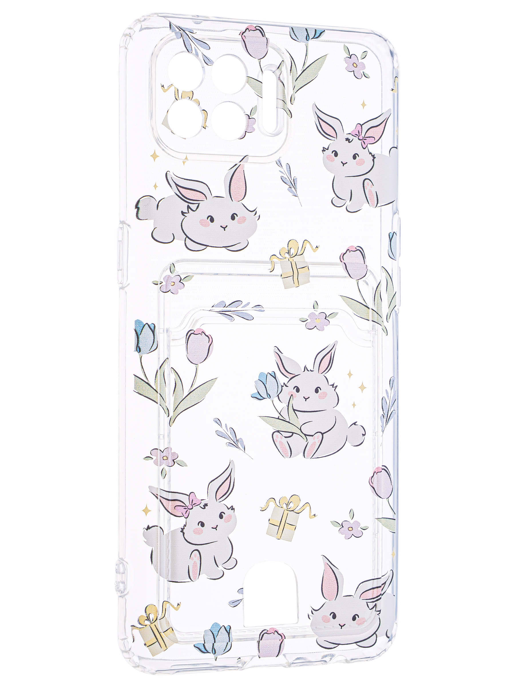 Силиконовый чехол Cardhold для Oppo Reno 4 Lite зайчата (с вырезом для карт)