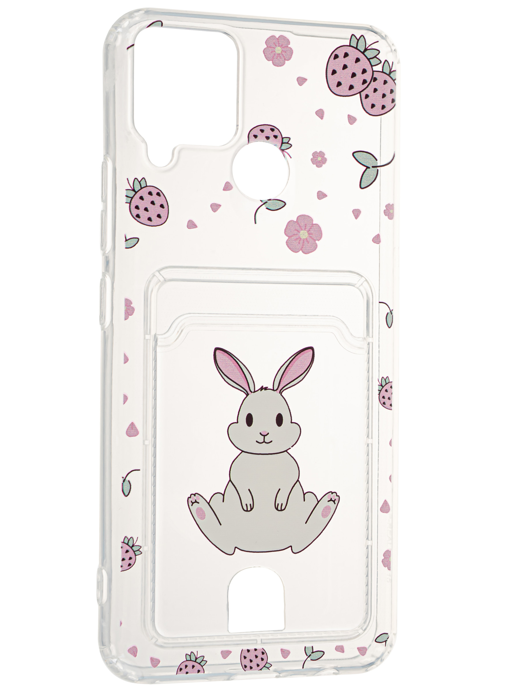 Силиконовый чехол Cardhold для Realme C15 клубничкин (с вырезом для карт)