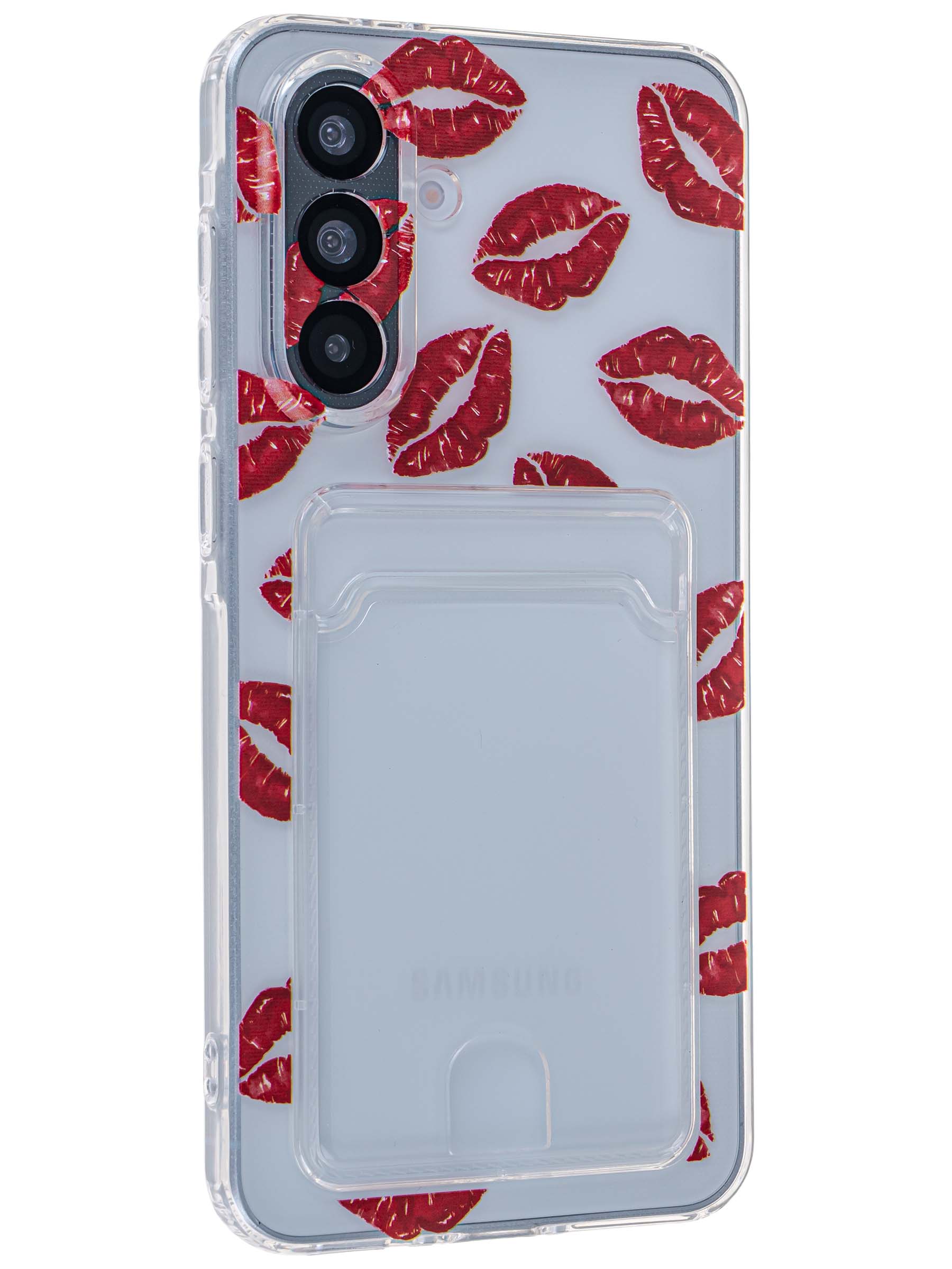 Силиконовый чехол Cardhold для Samsung Galaxy A56 kiss me (с вырезом для карт)
