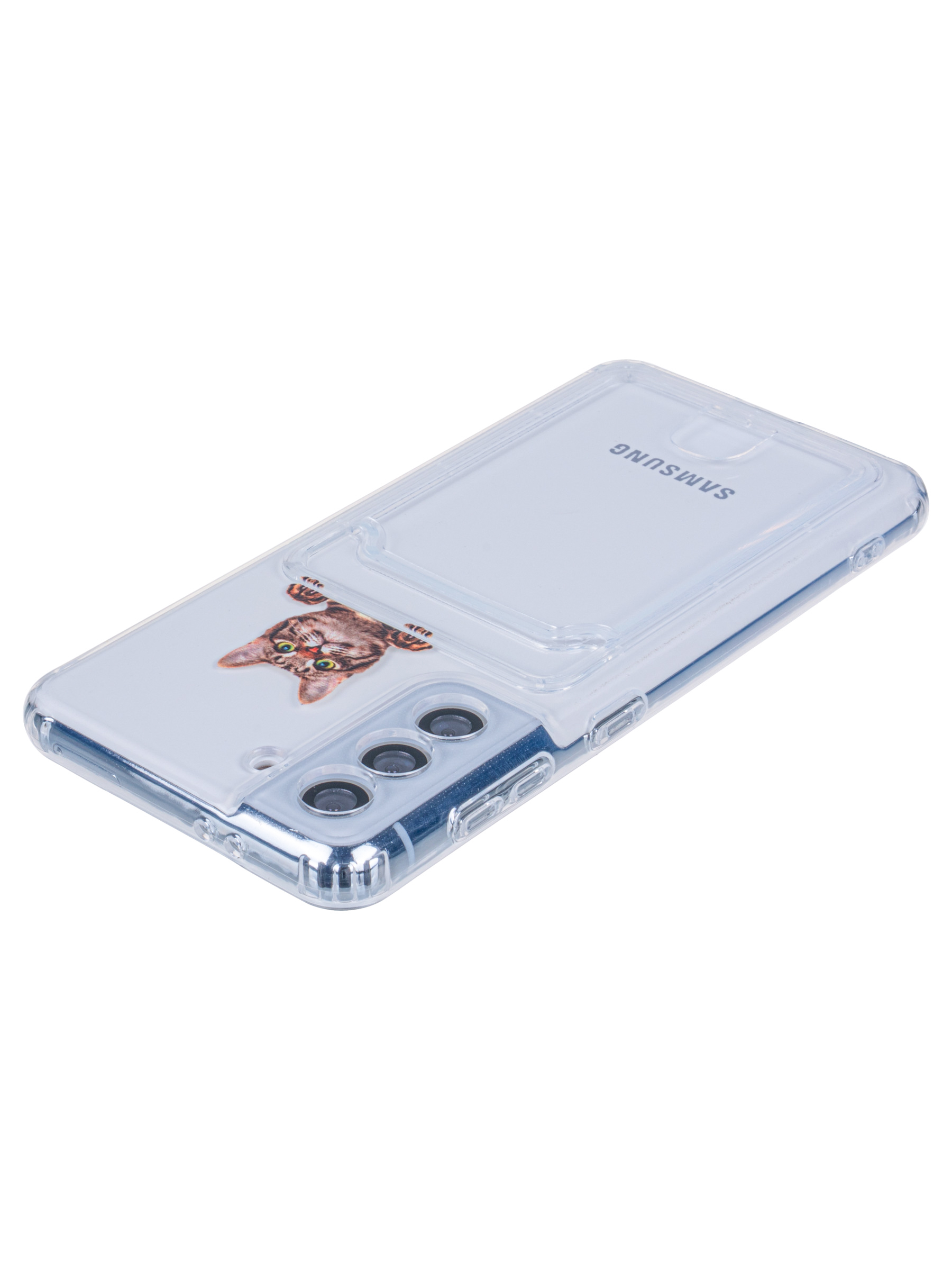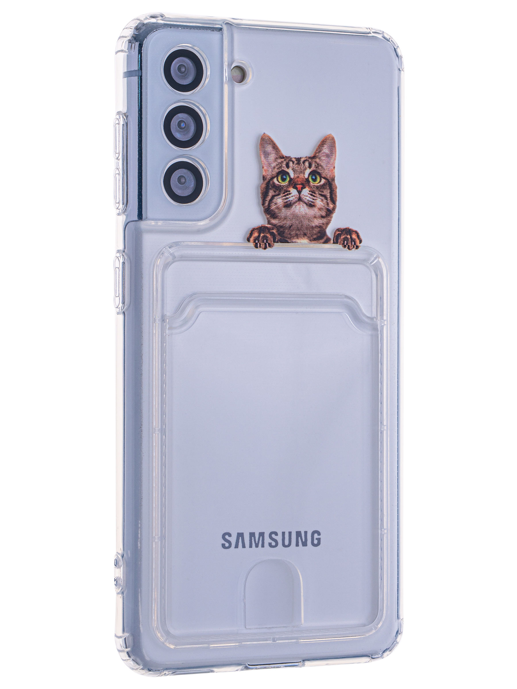 Силиконовый чехол Cardhold для Samsung Galaxy S21 5G cat (с вырезом для карт)