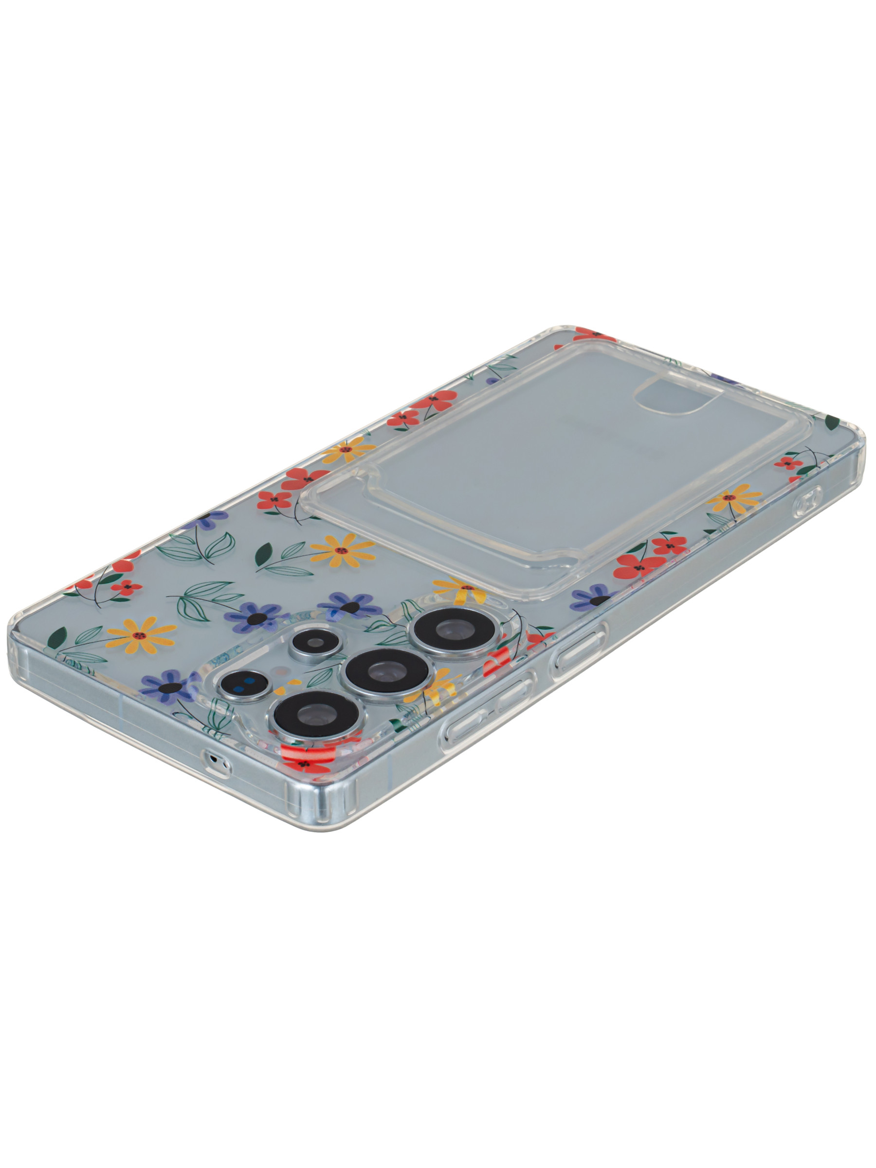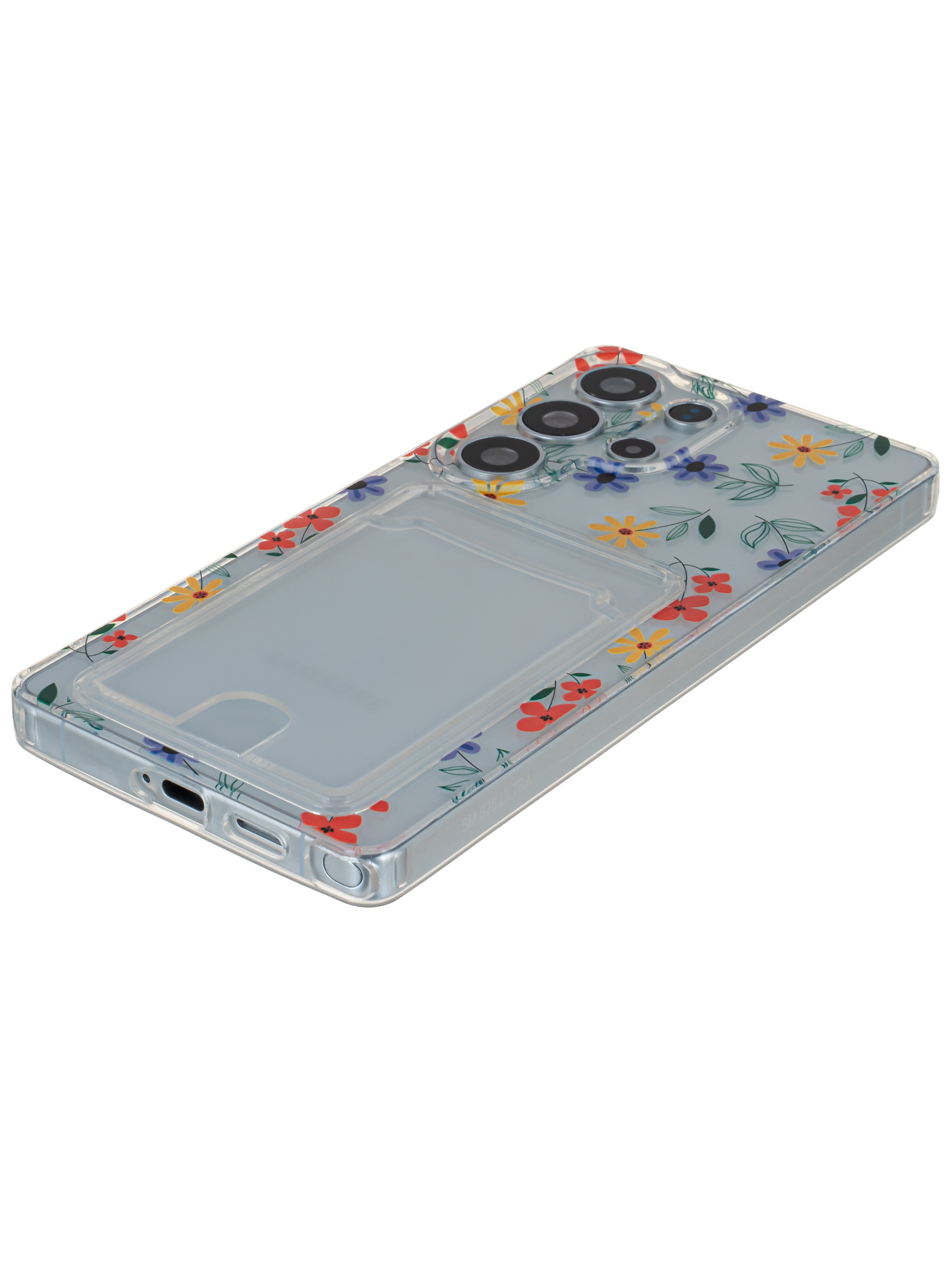 Силиконовый чехол Cardhold для Samsung Galaxy S25 Ultra цветочки (с вырезом для карт)