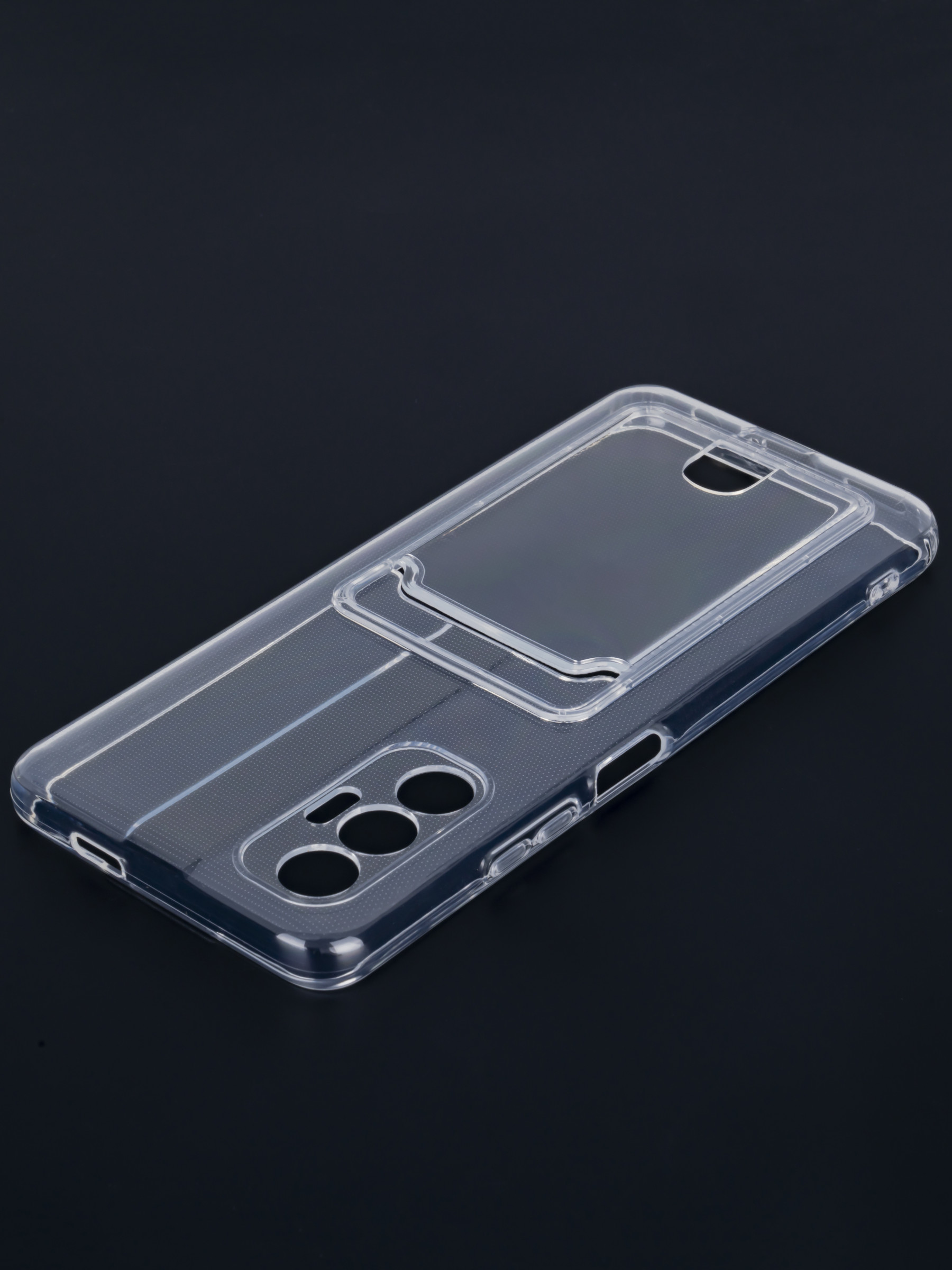Силиконовый чехол Cardhold для Tecno Pova 3 прозрачный (с вырезом для карт)