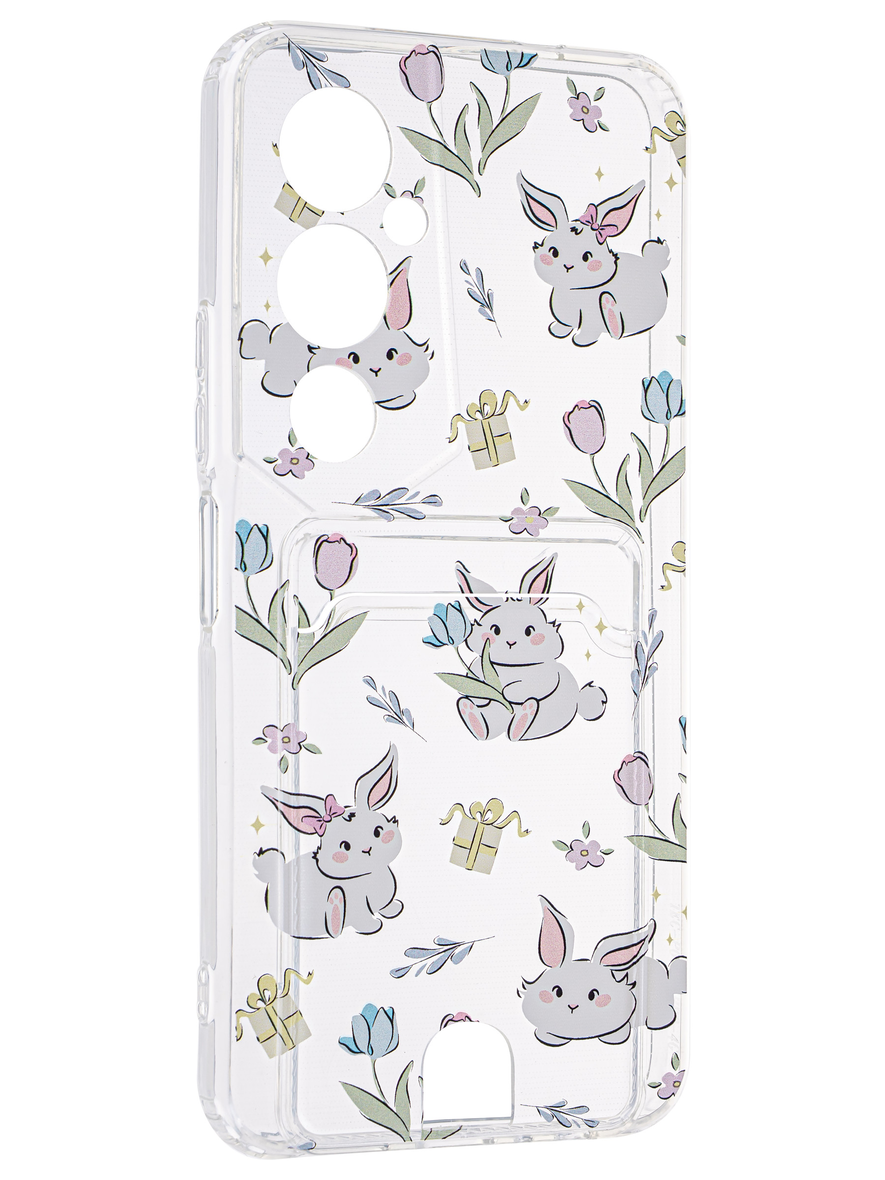 Силиконовый чехол Cardhold для Tecno Pova 4 Pro зайчата (с вырезом для карт)