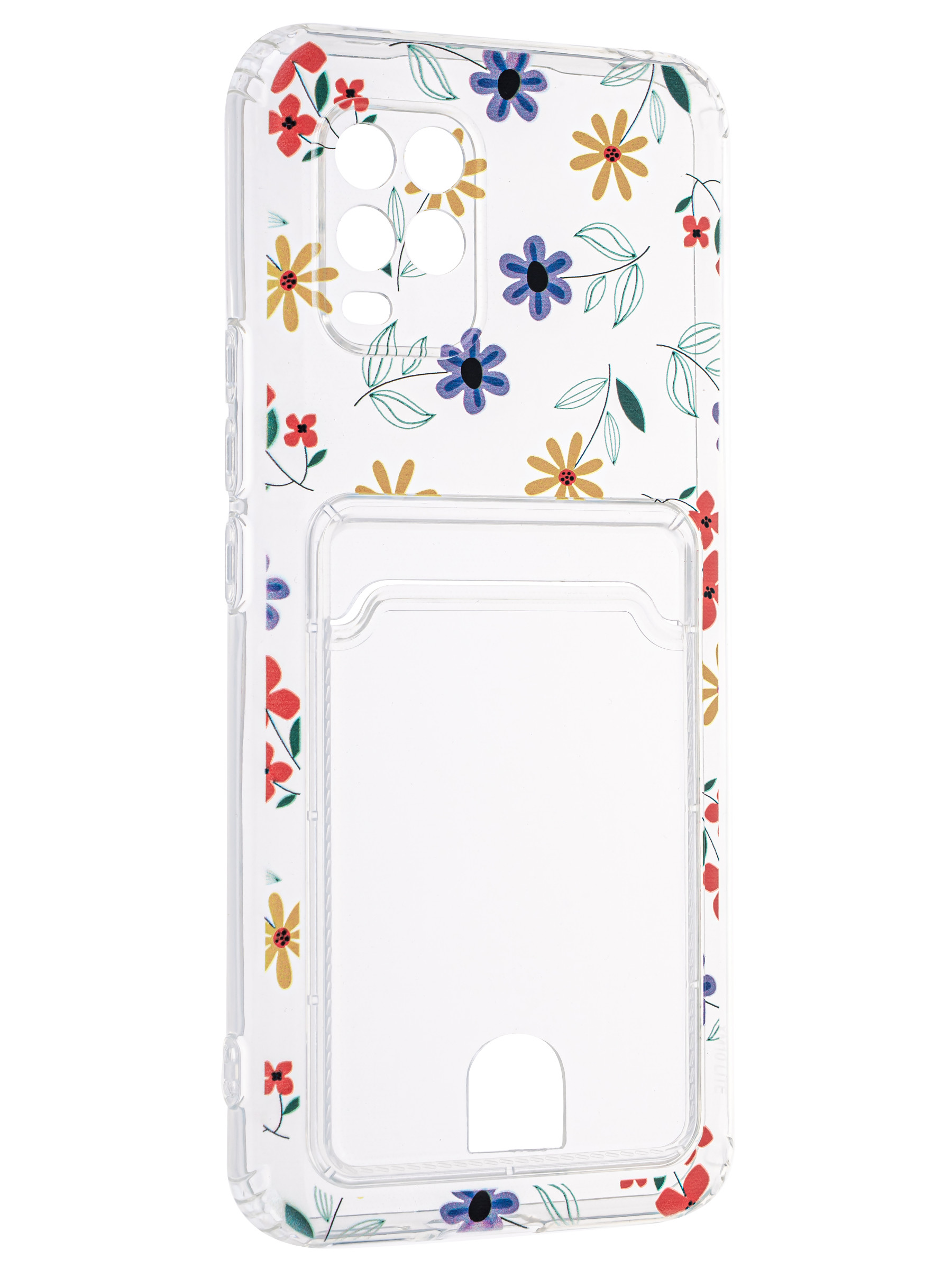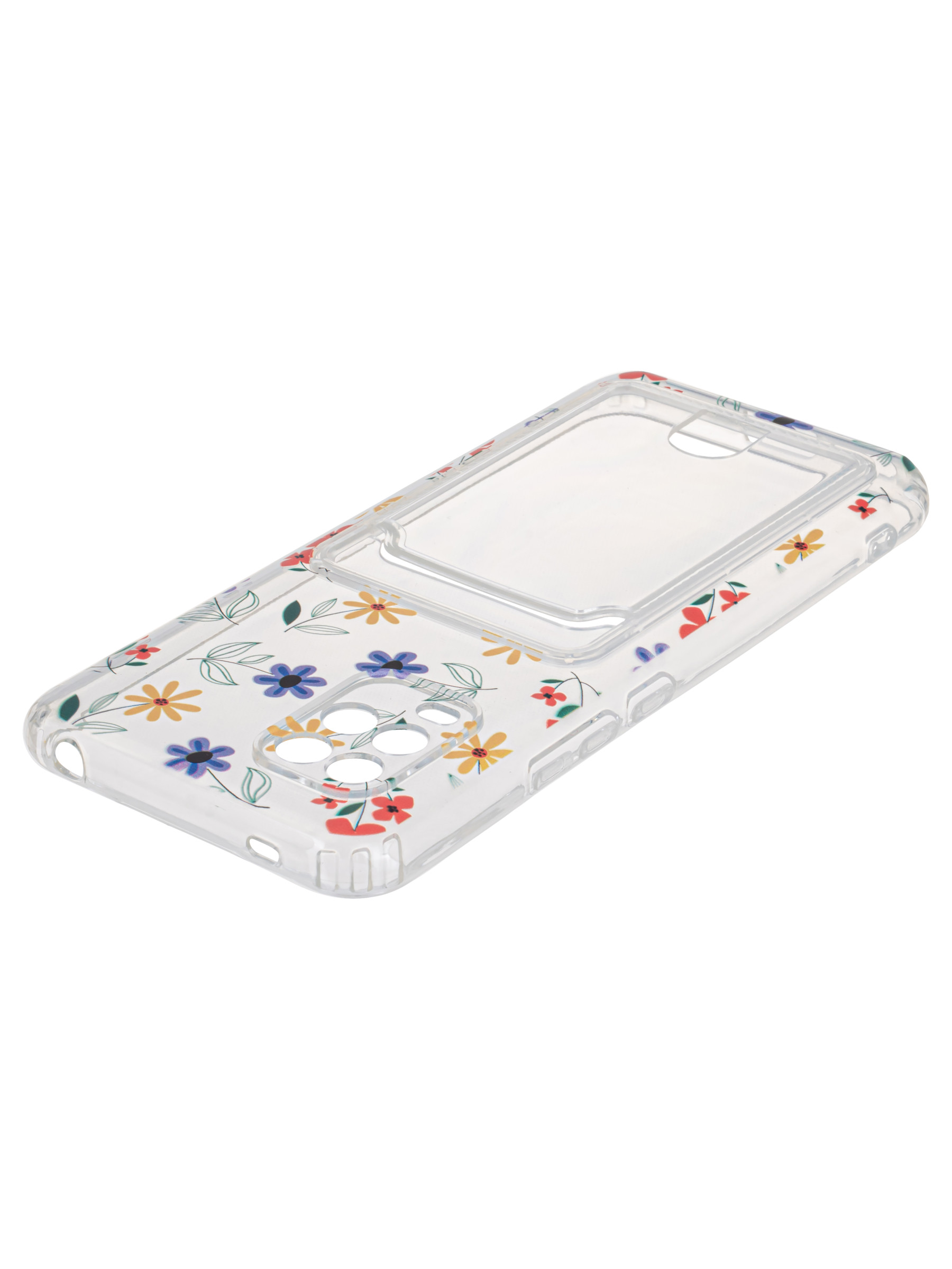 Силиконовый чехол Cardhold для Xiaomi Mi 10 Lite цветочки (с вырезом для карт)