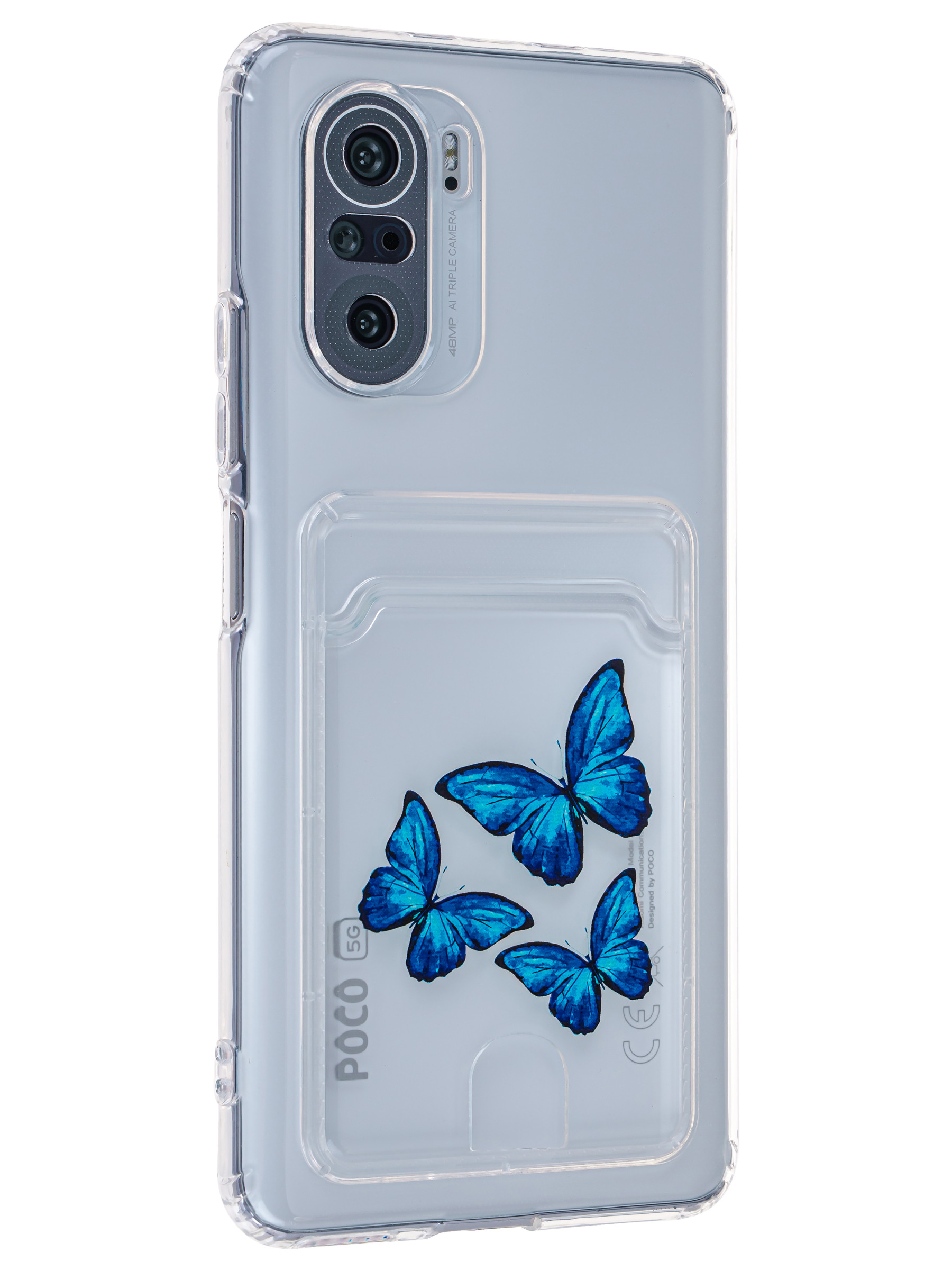 Силиконовый чехол Cardhold для Xiaomi Poco F3 / Mi 11i индиго (с вырезом для карт)