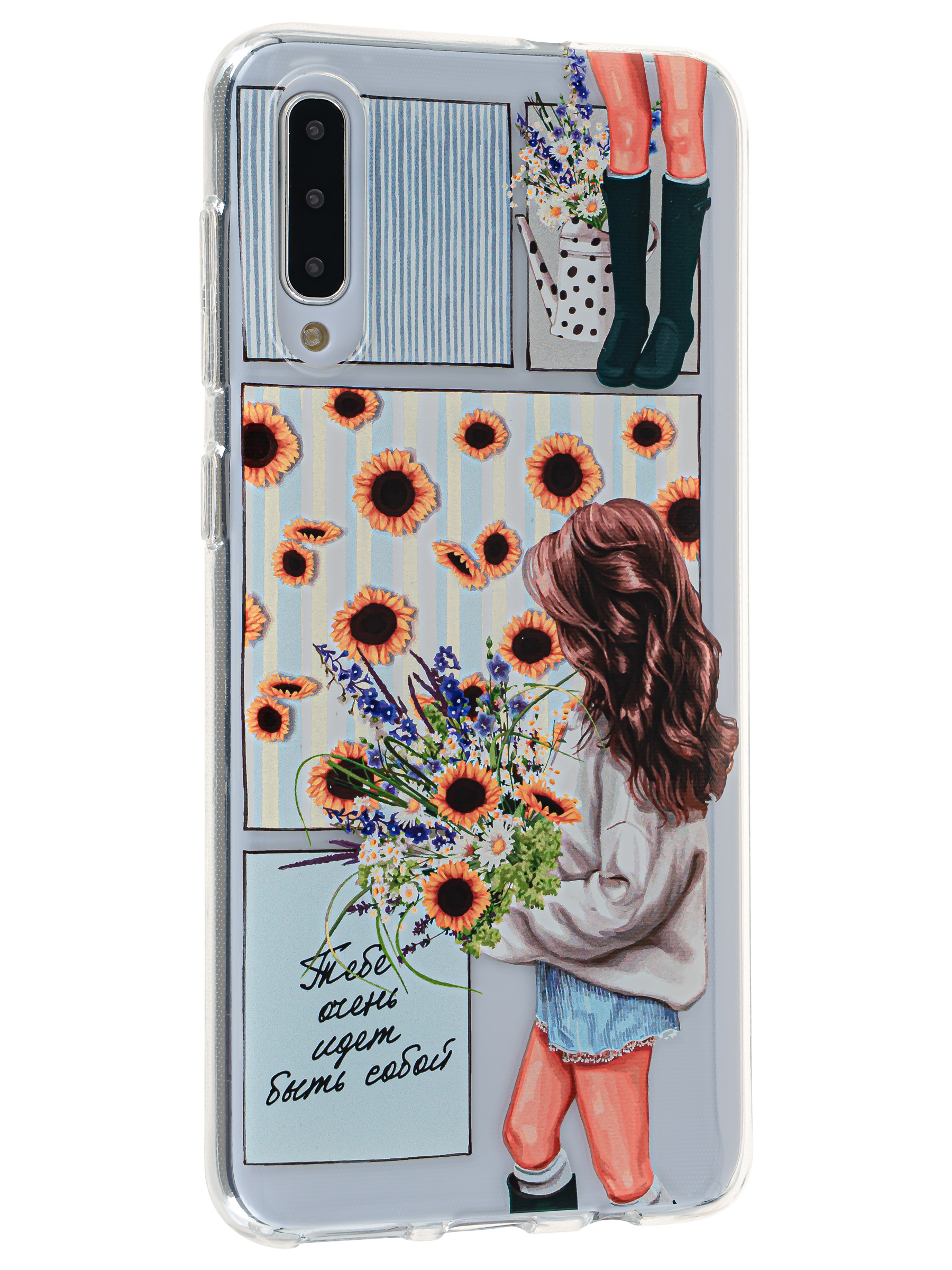 Силиконовый чехол Clear для Samsung Galaxy A50 / A30s с цветами