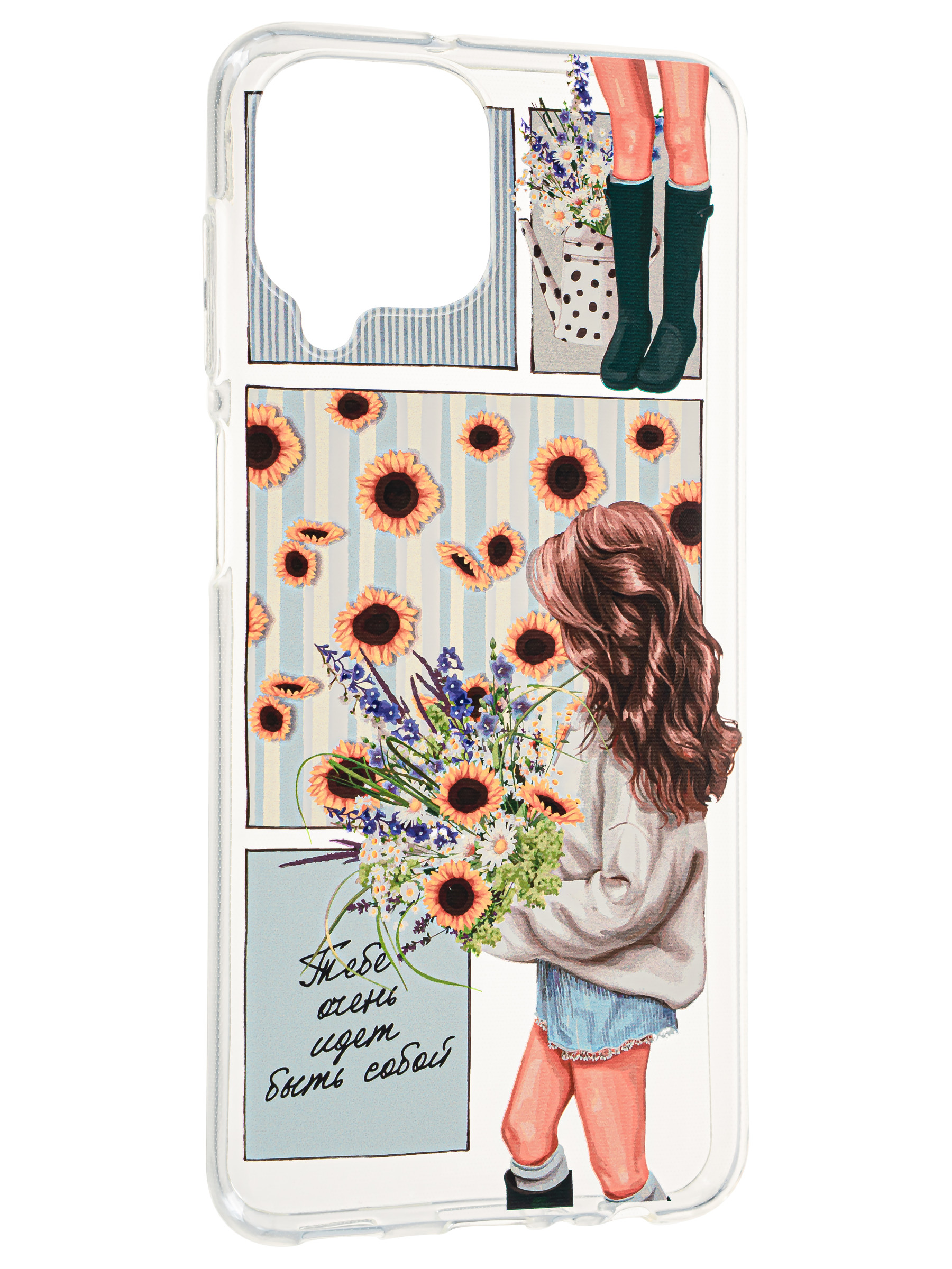 Силиконовый чехол Clear для Samsung Galaxy M33 с цветами