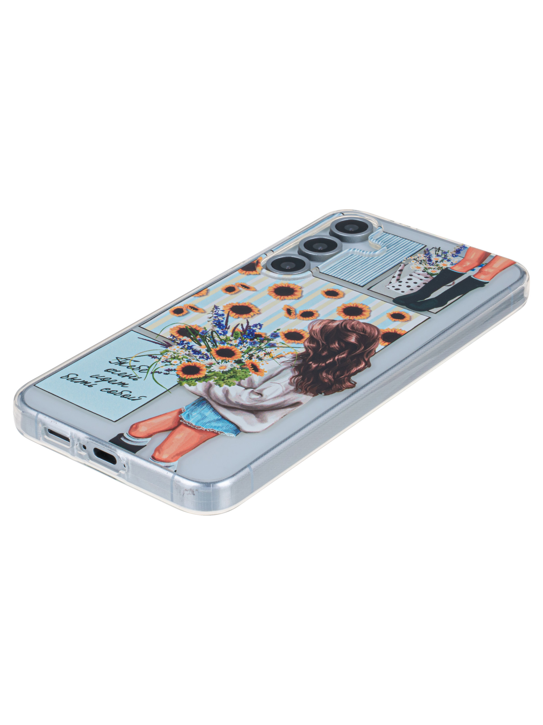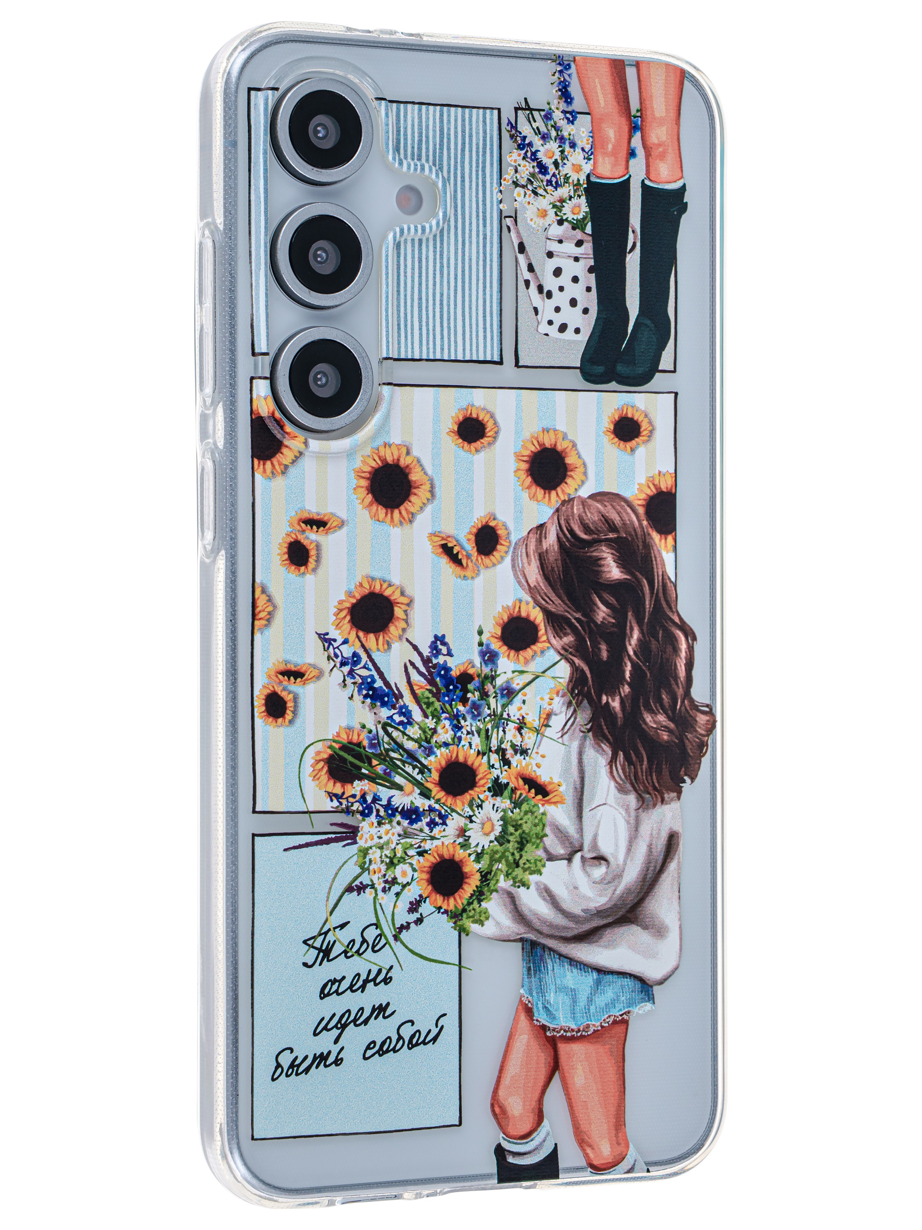 Силиконовый чехол Clear для Samsung Galaxy S24 FE с цветами