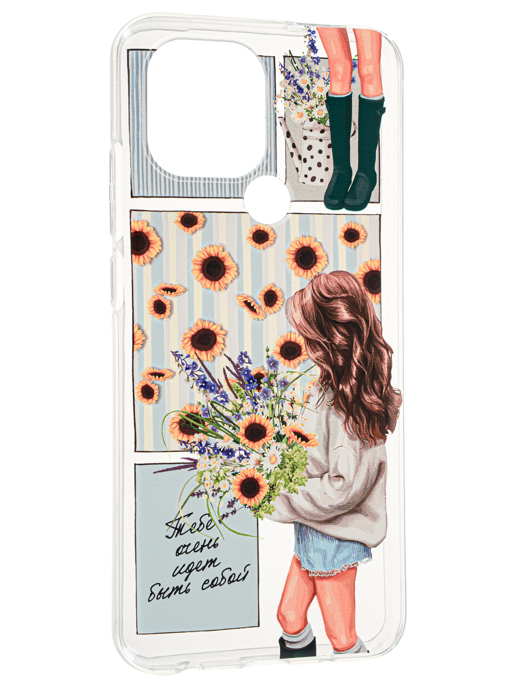 Силиконовый чехол Clear для Xiaomi Poco C51 / Redmi A1 Plus / Redmi A2 Plus с цветами