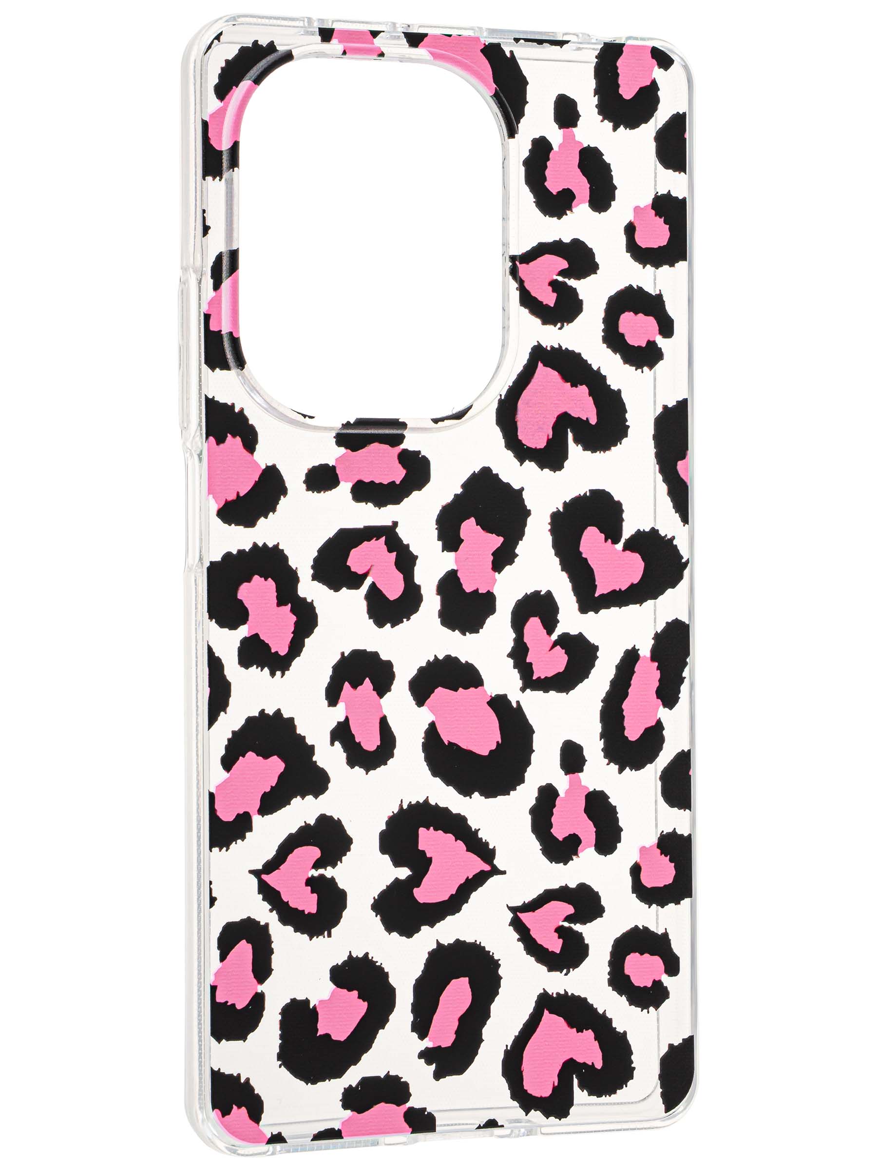Силиконовый чехол Clear для Xiaomi Poco M6 Pro 4G / Redmi Note 13 Pro 4G розовый леопард