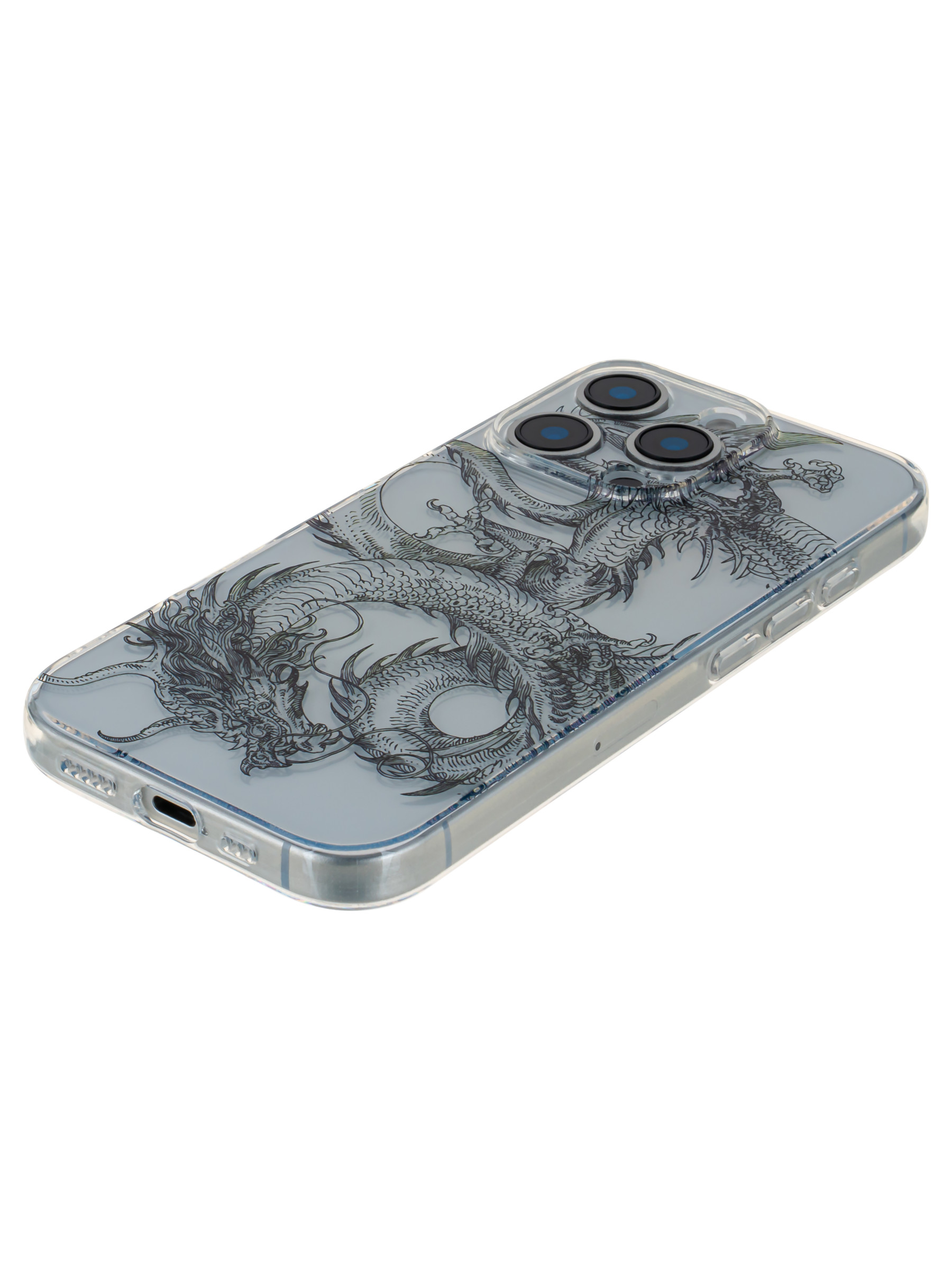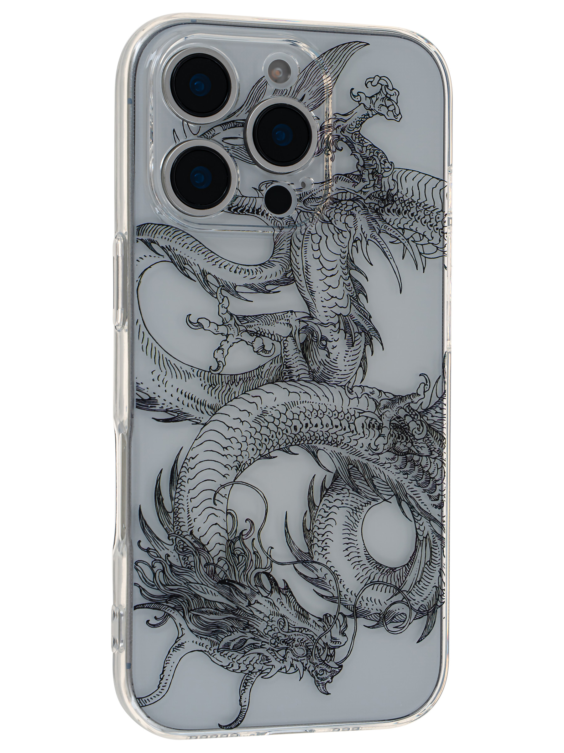 Силиконовый чехол Clear protection для iPhone 16 Pro эскиз дракона