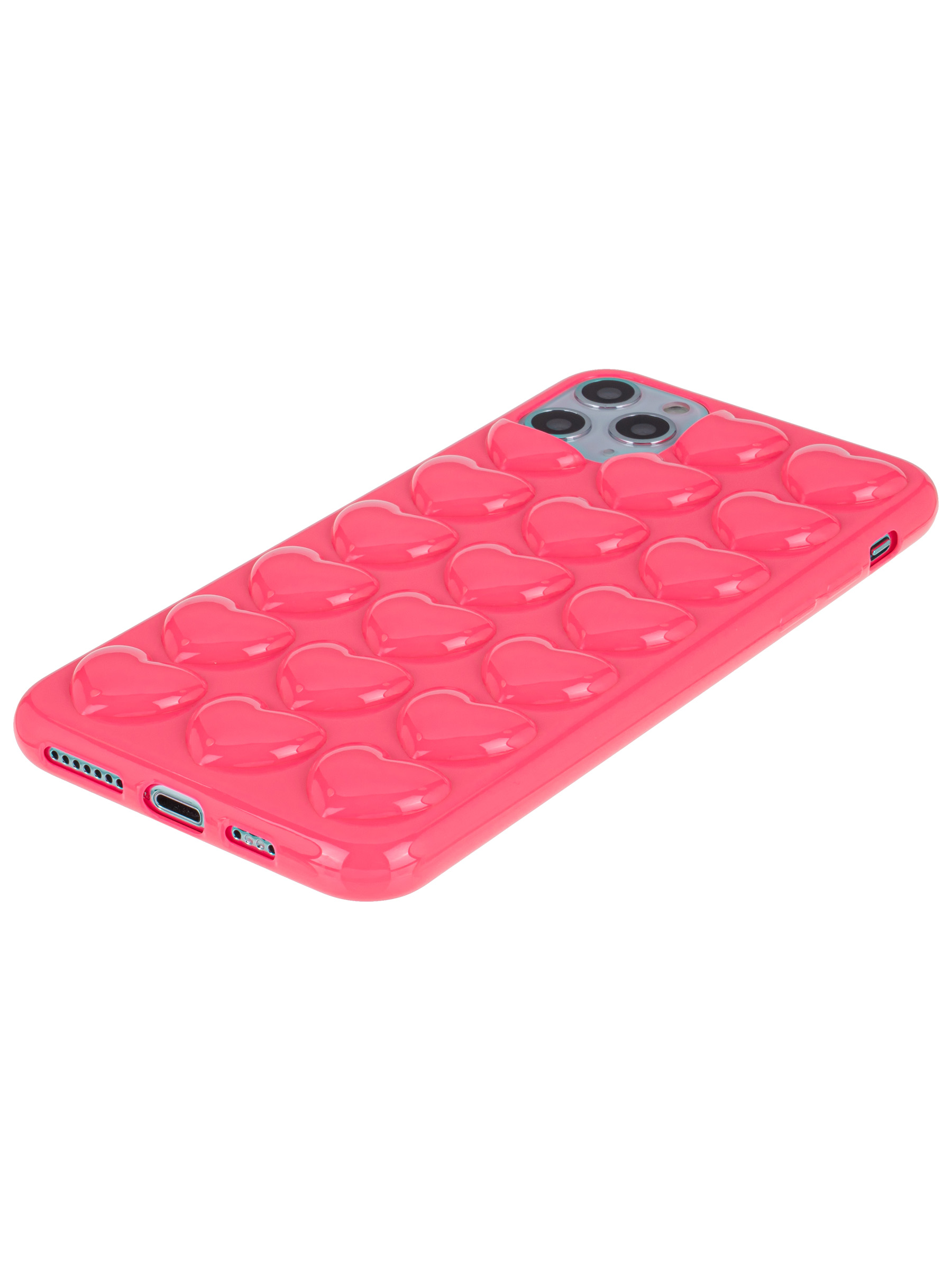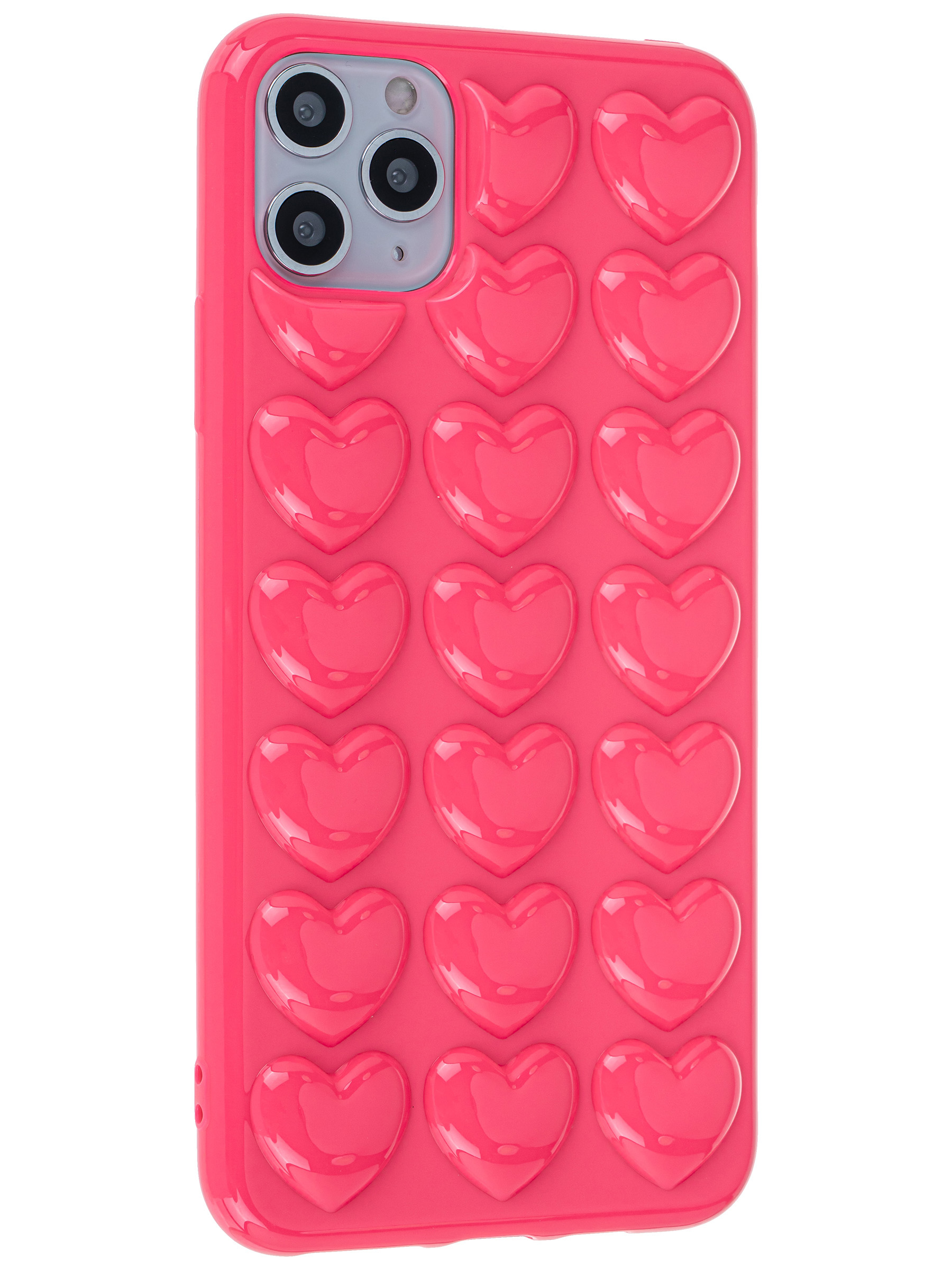 Силиконовый чехол Colored hearts для iPhone 11 Pro Max Фуксия